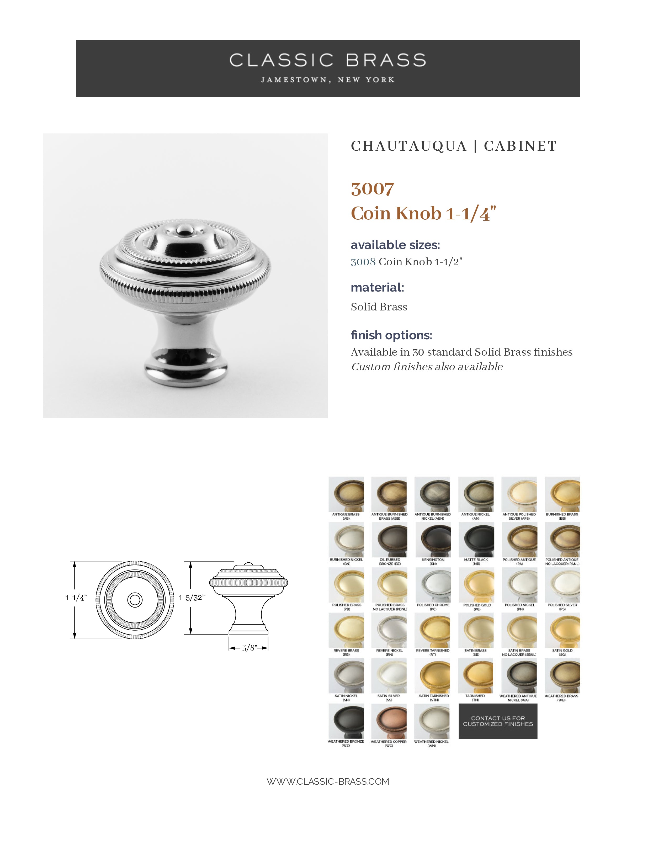 3007, Knob - 1-1/4" Double Coin, Classic Brass Chautauqua Collection