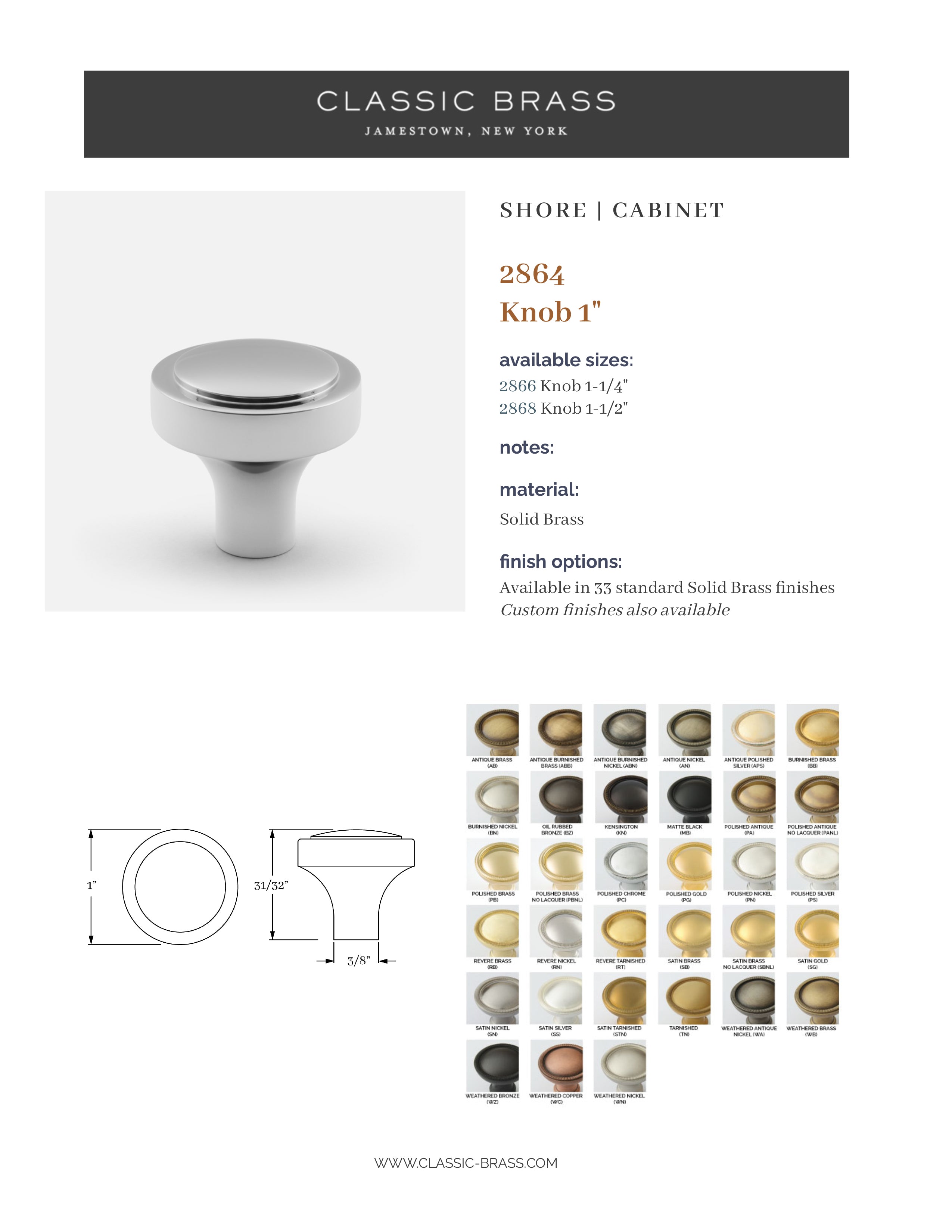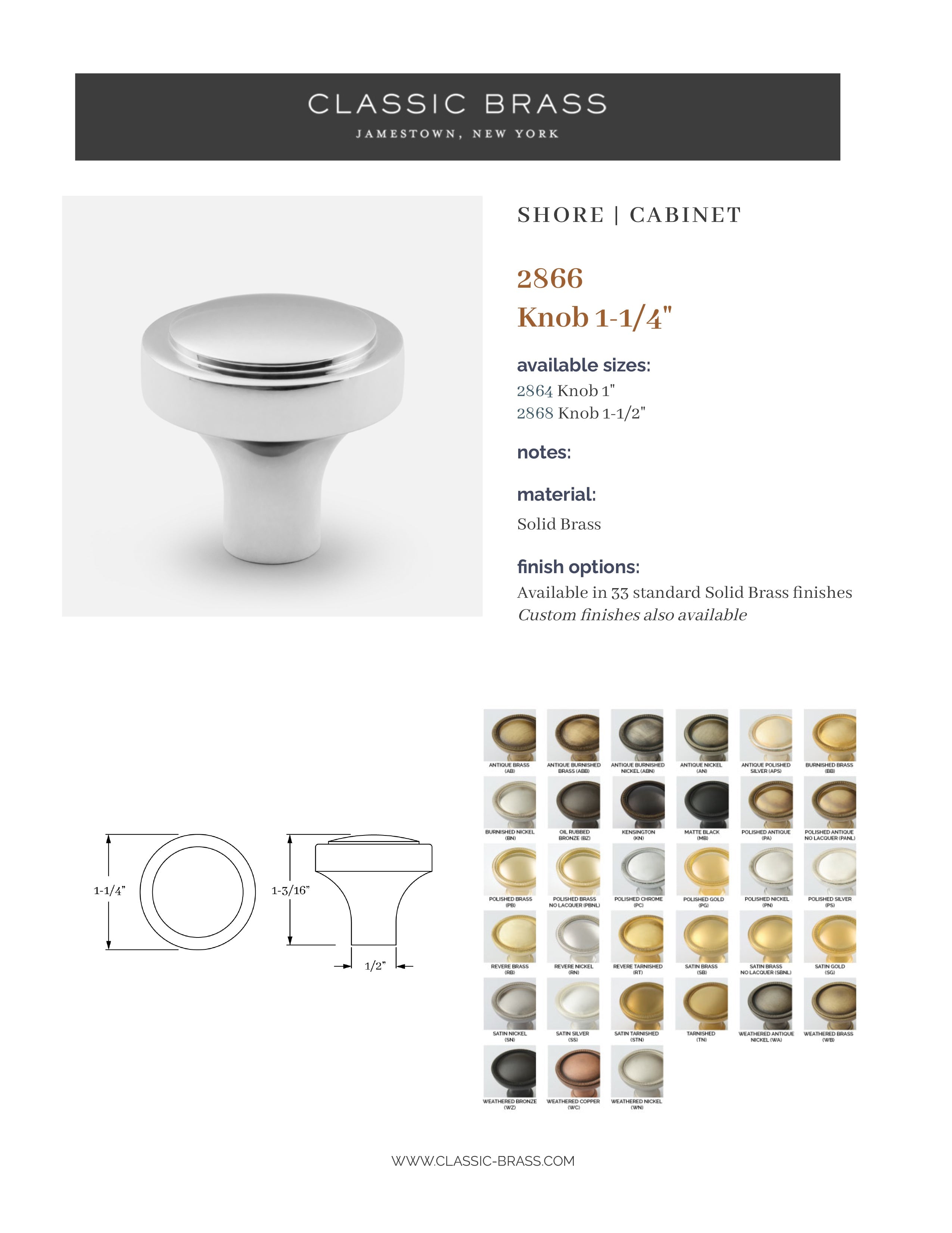 2866, Knob - 1-1/4", Classic Brass Shore Collection