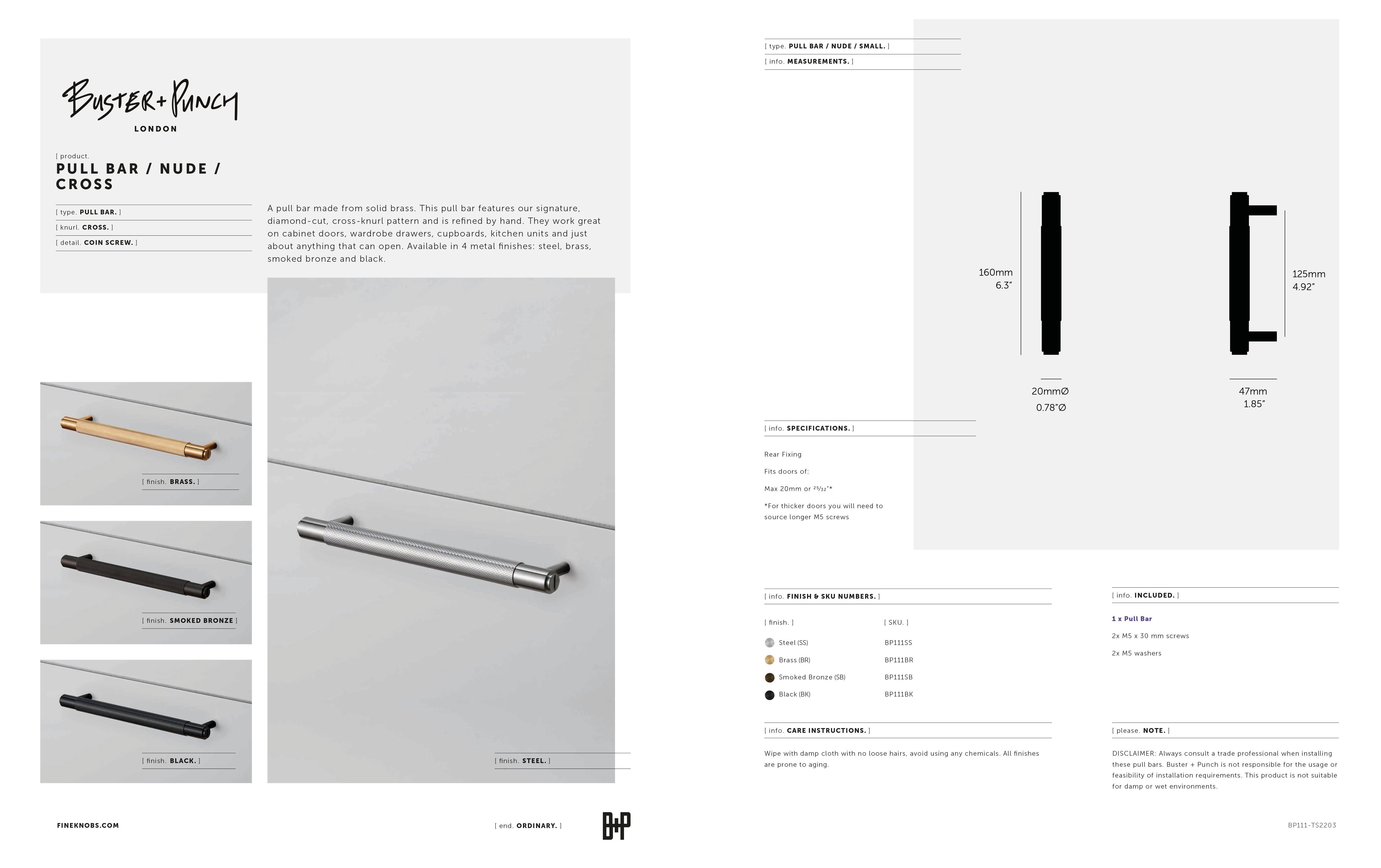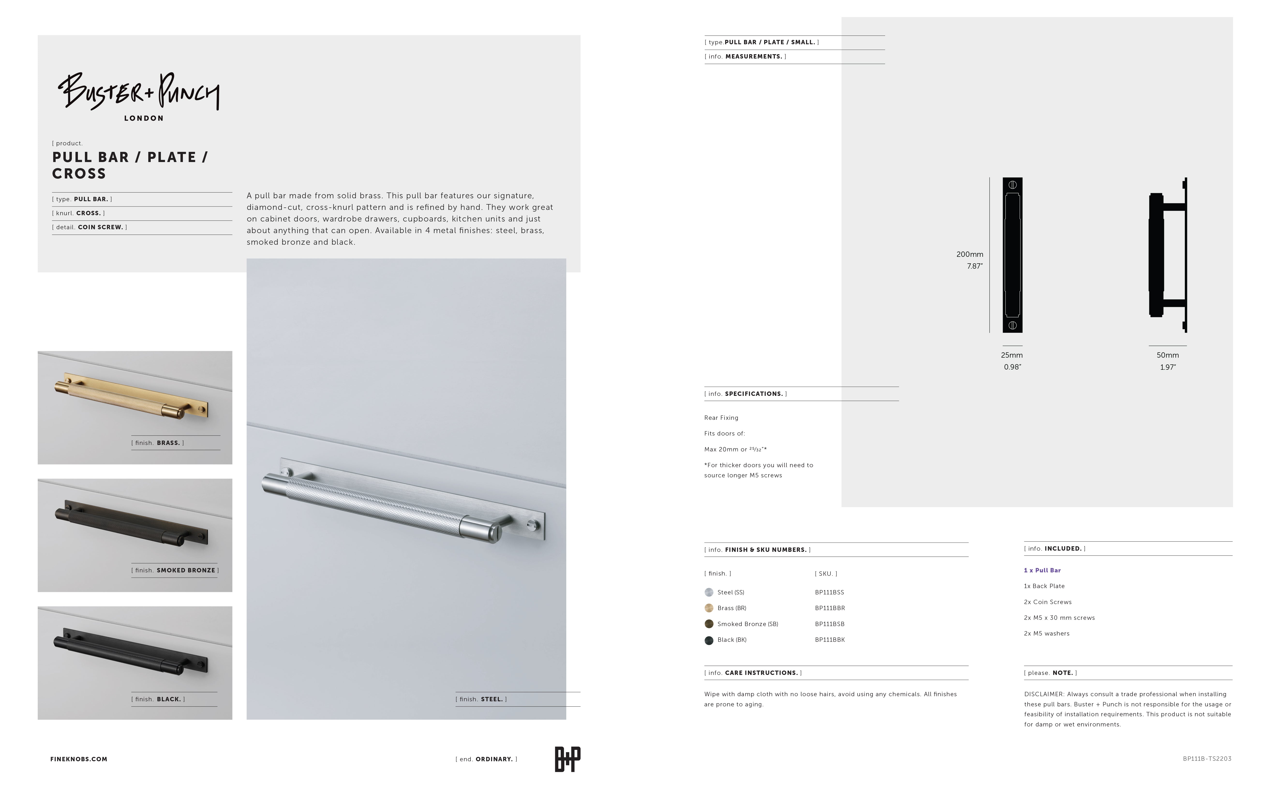 111B, Cross Pull Bar + Backplate - Small - 4.92" (125mm) c-c