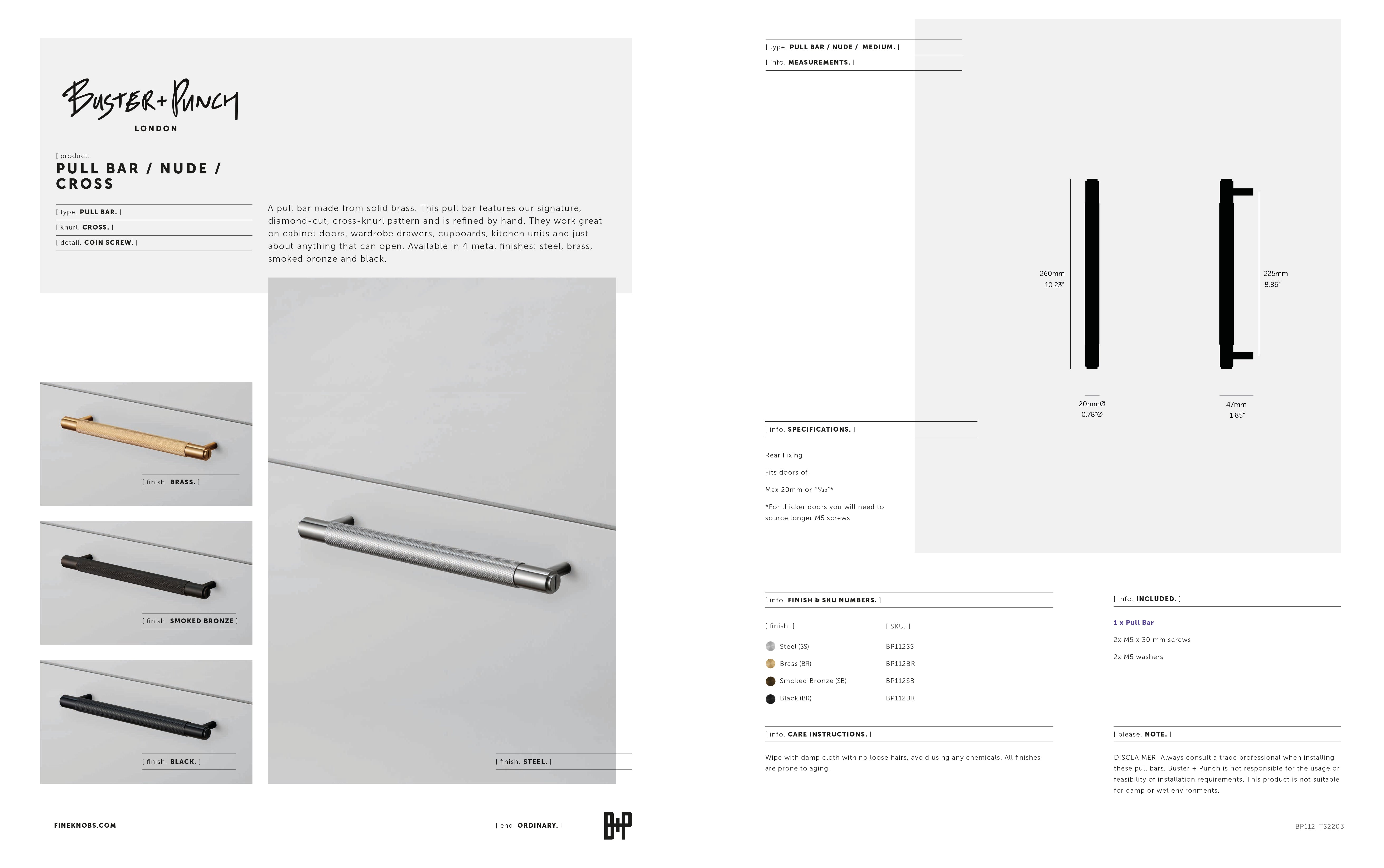 112, Cross Pull Bar - Medium - 8.86" (225mm) c-c