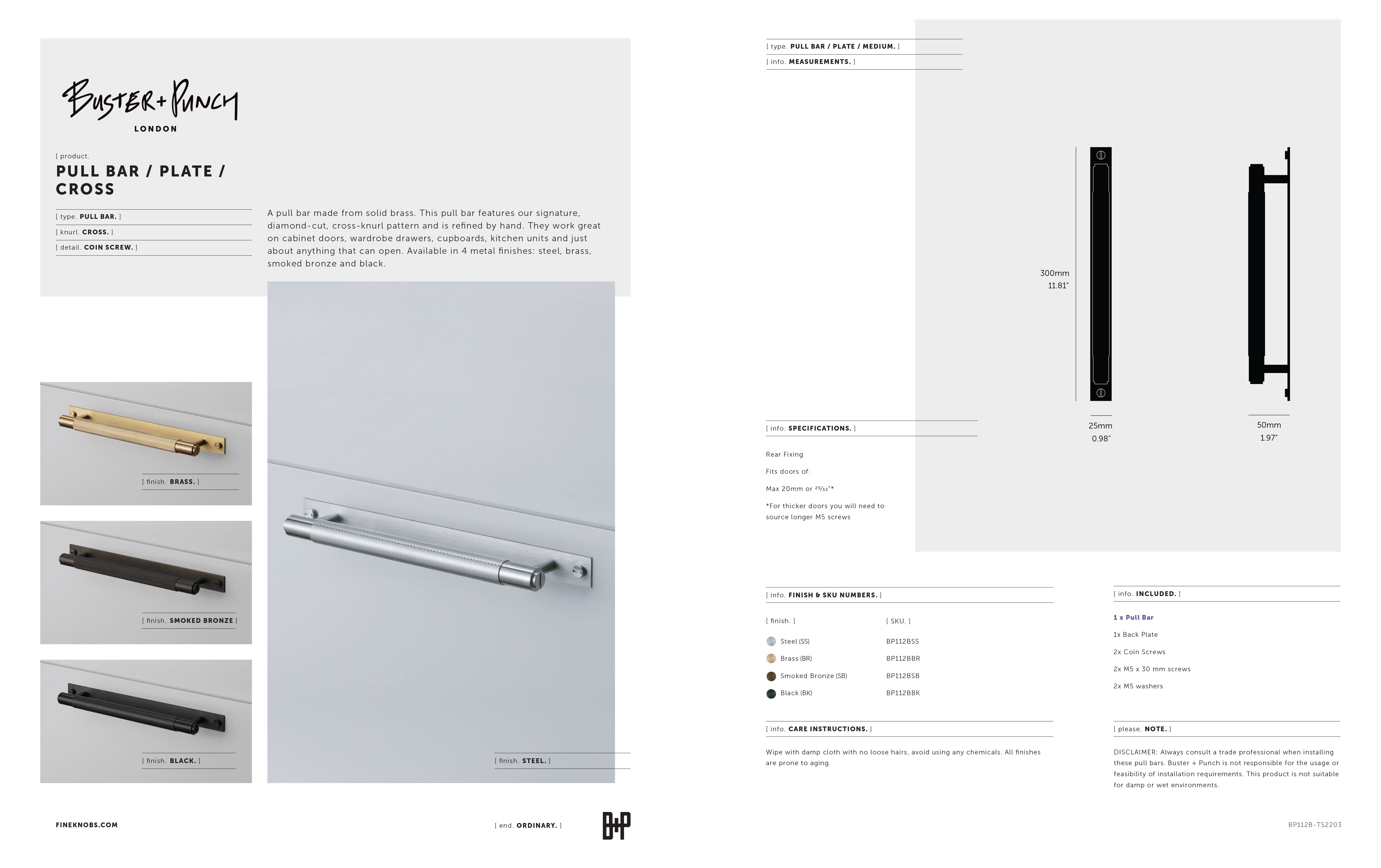112B, Cross Pull Bar + Backplate - Medium - 8.86" (225mm) c-c
