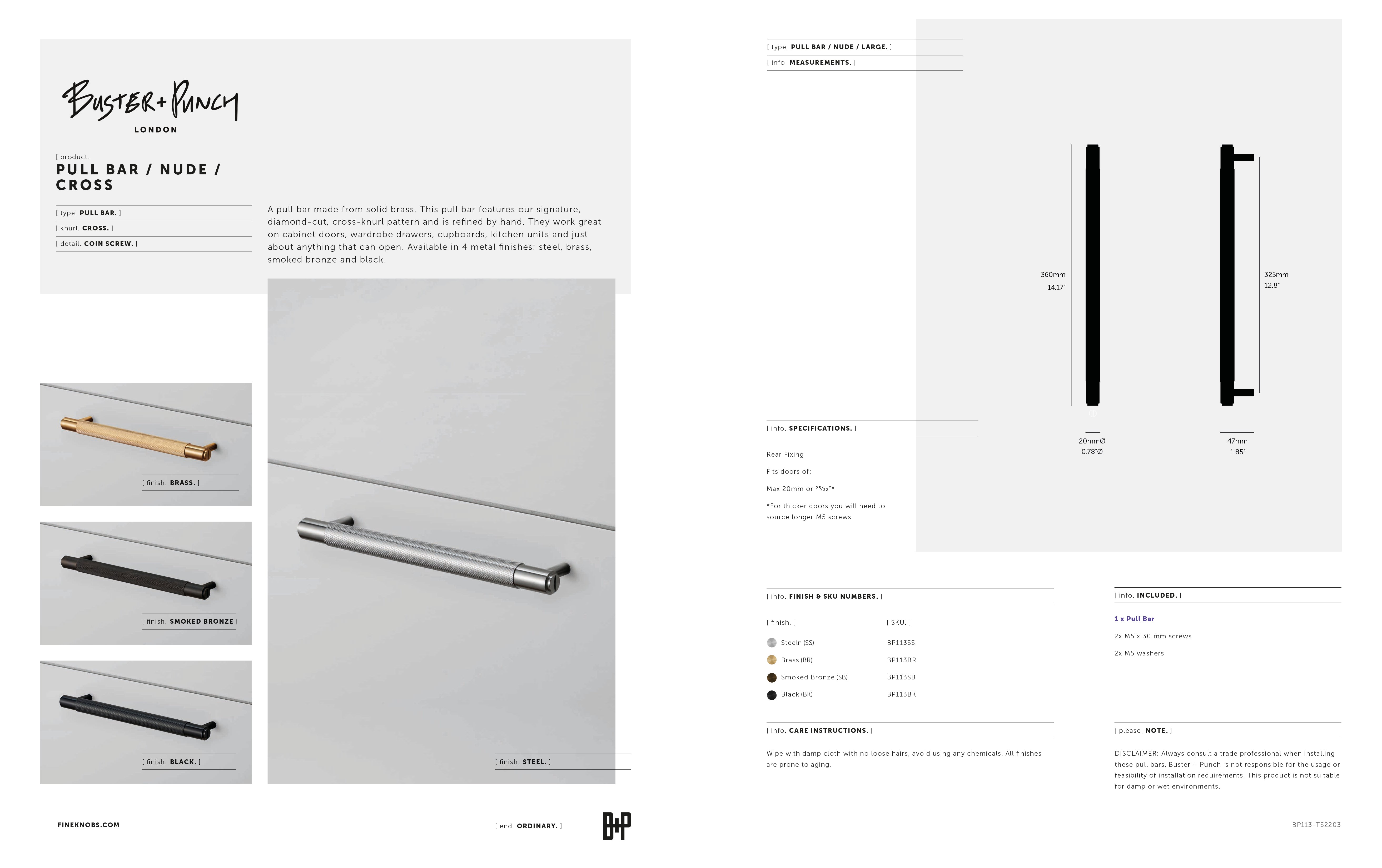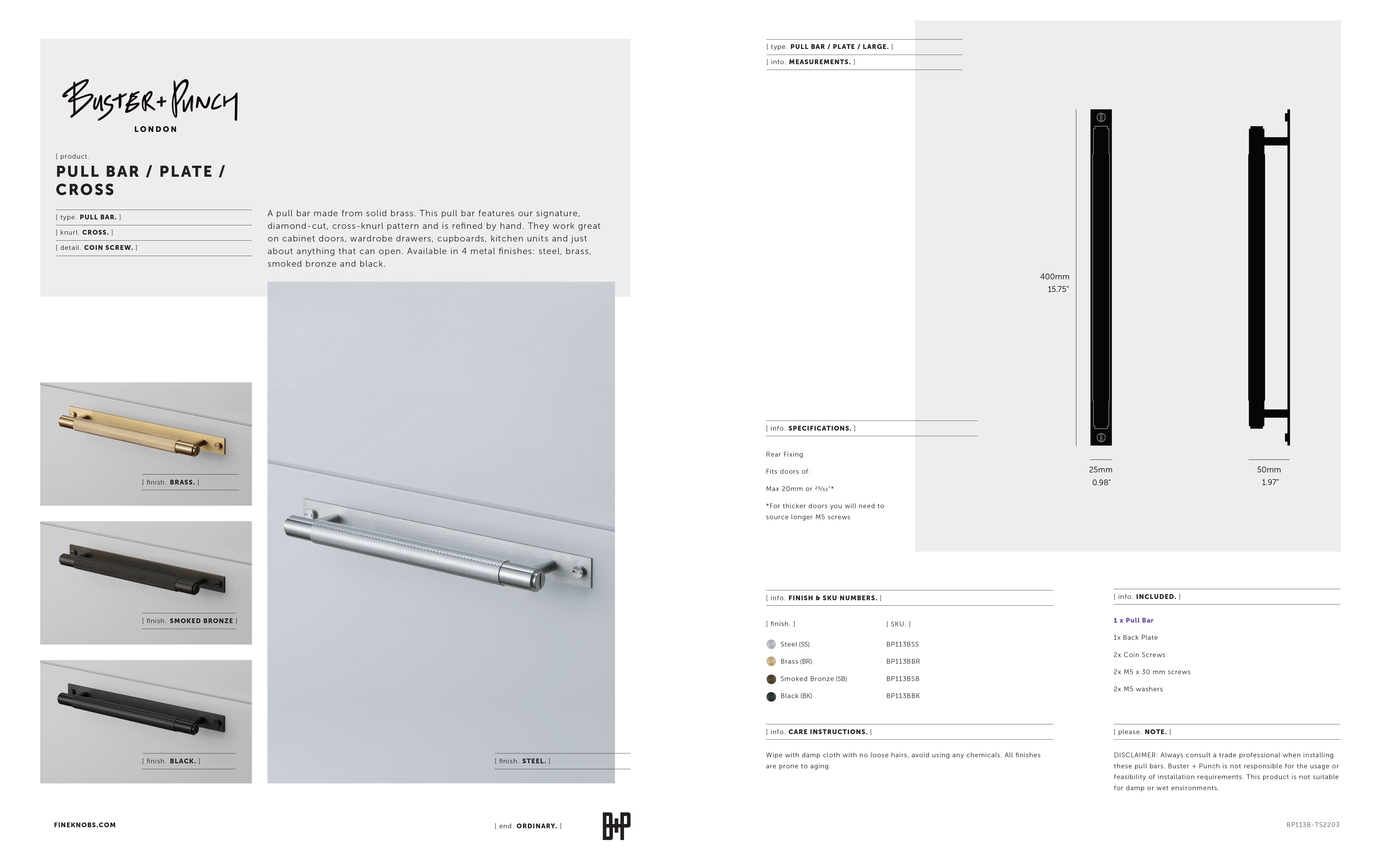 113B, Cross Pull Bar + Backplate - Large - 12.75" (325mm) c-c