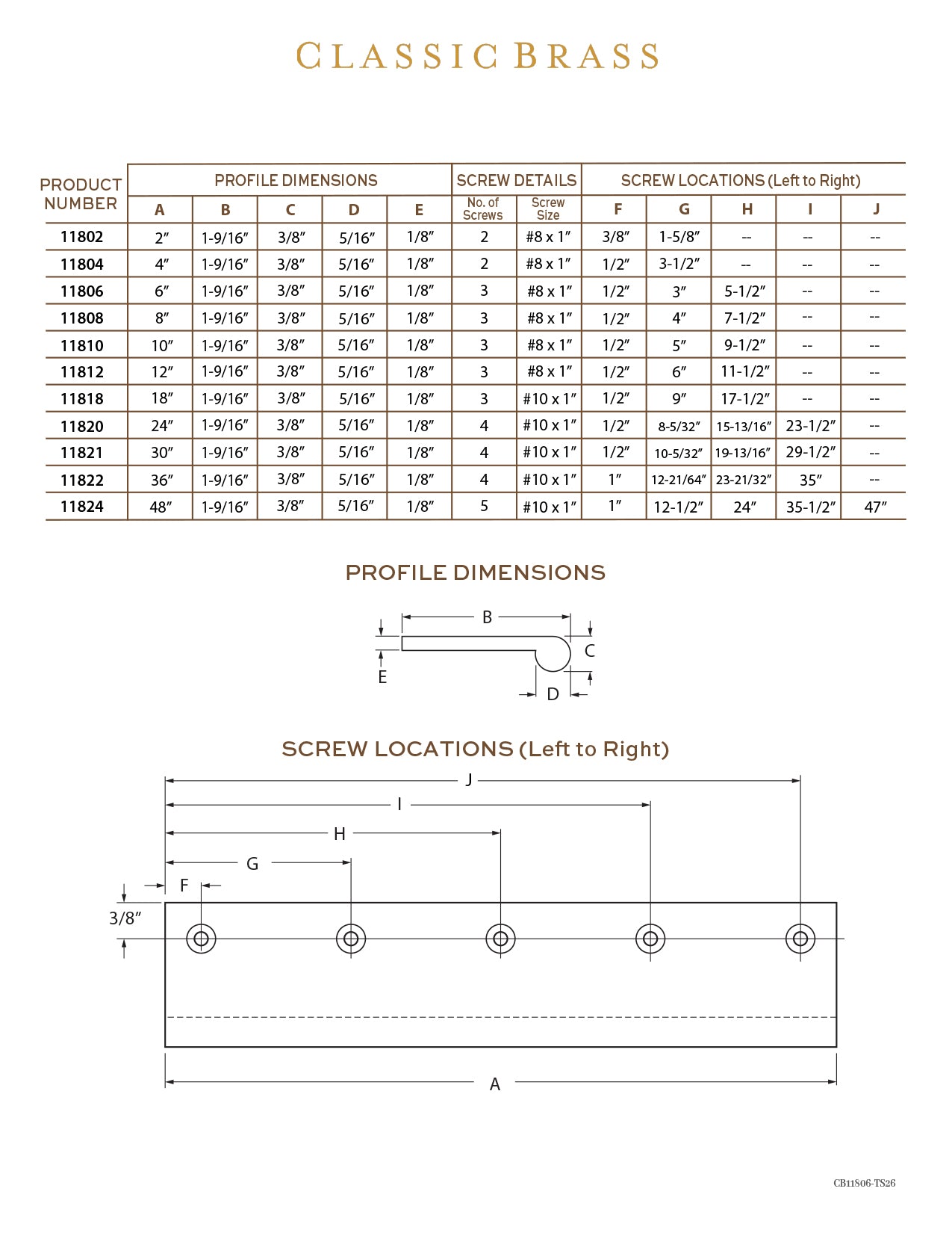 11724, Classic Brass Edge Pull - Bullnose - 48", Edge Pulls Collection