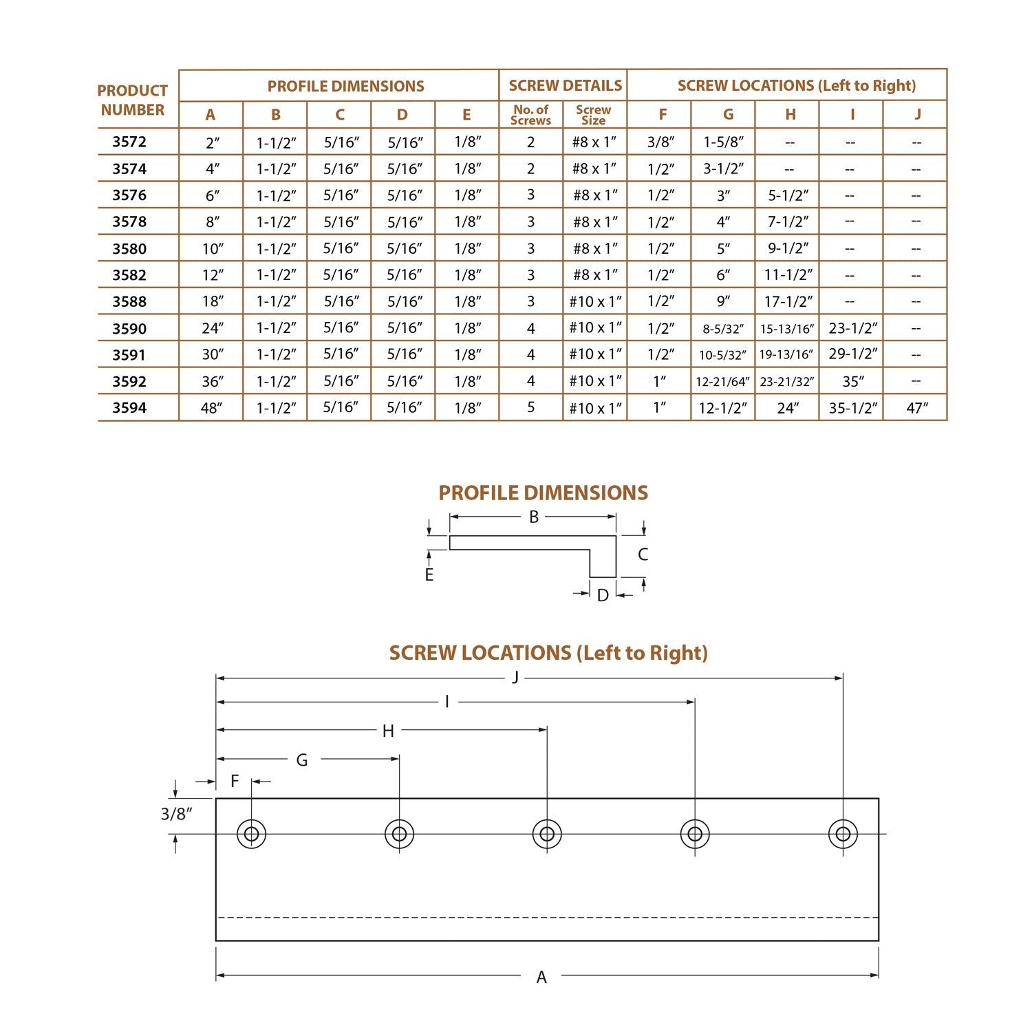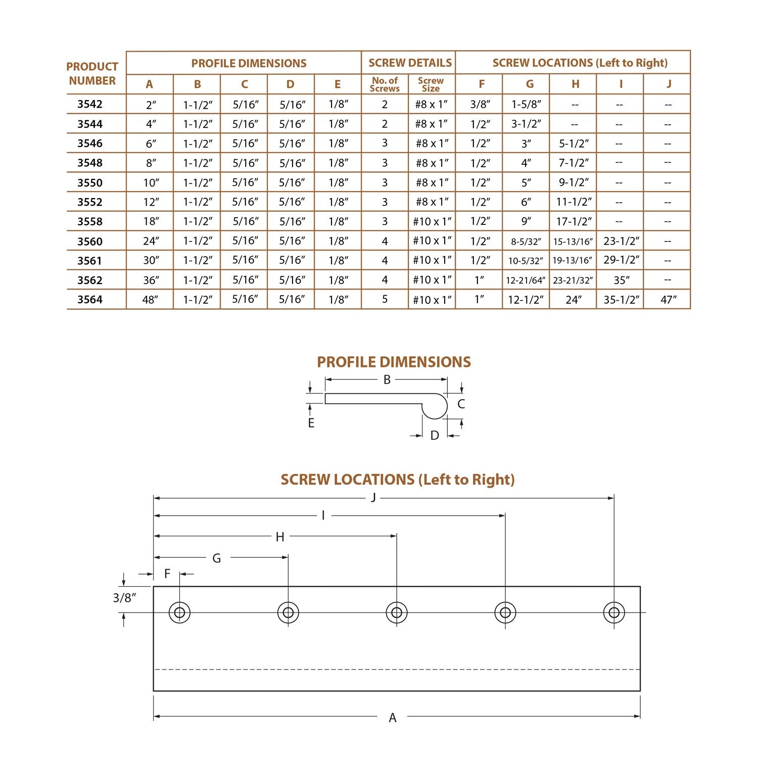 3562, Classic Brass Edge Pull - 36" Round, Edge Pulls Collection