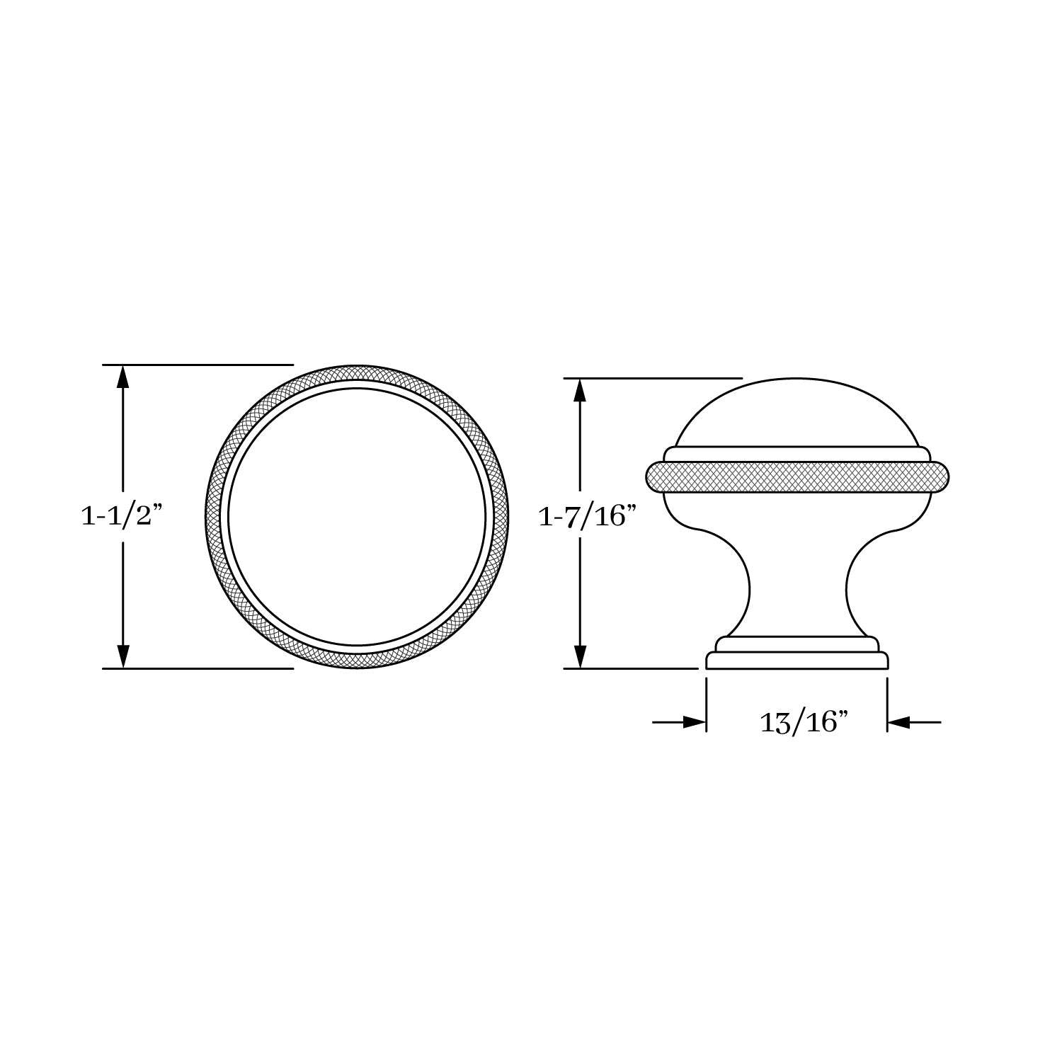 1845, Knob - 1-1/2" Cross Hatch, Classic Brass Hutter Collection