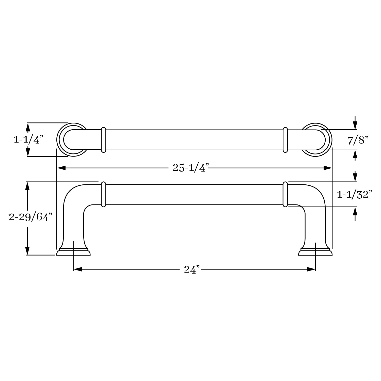 3124, Appliance Pull - 24", Classic Brass Portside Collection
