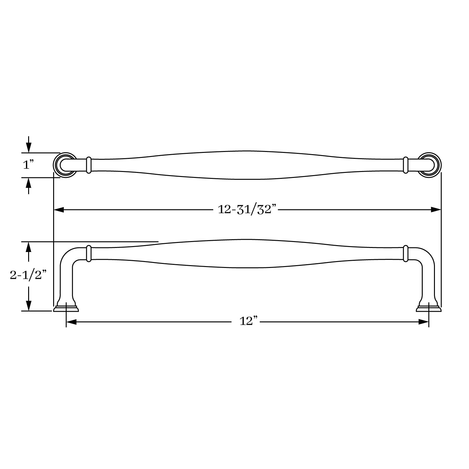 3312, Appliance Pull - 12" c-c, Classic Brass Chautauqua Collection
