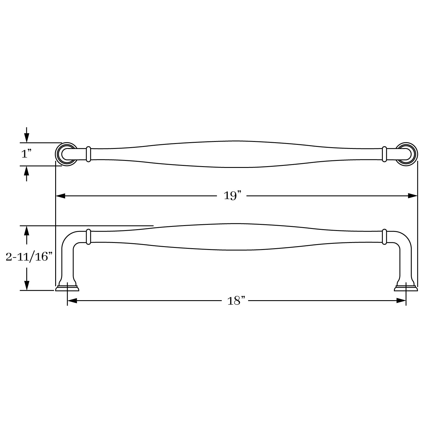 3318, Appliance Pull - 18" c-c, Classic Brass Chautauqua Collection