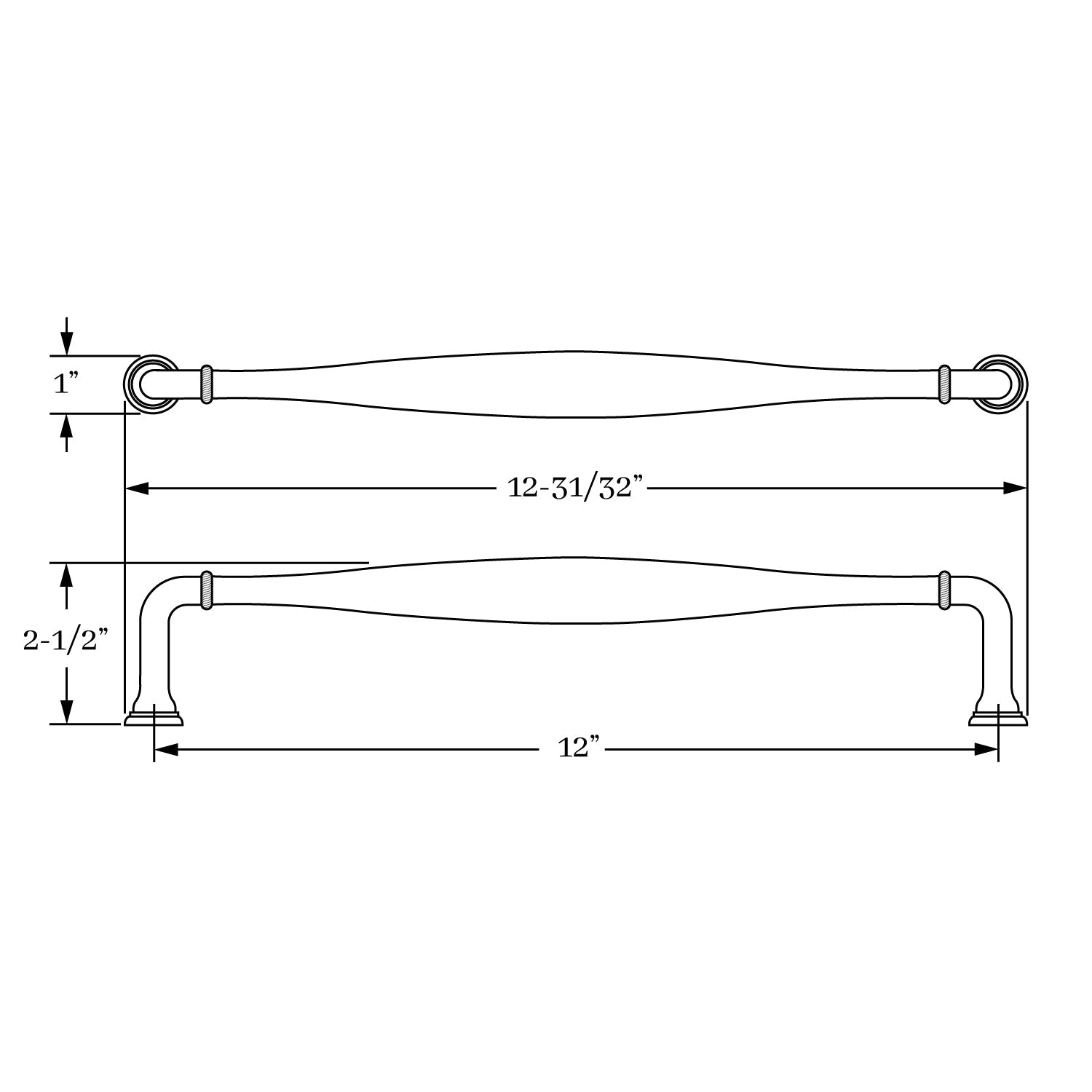 2732, Appliance Pull - 12" c-c, Classic Brass Ridge Collection