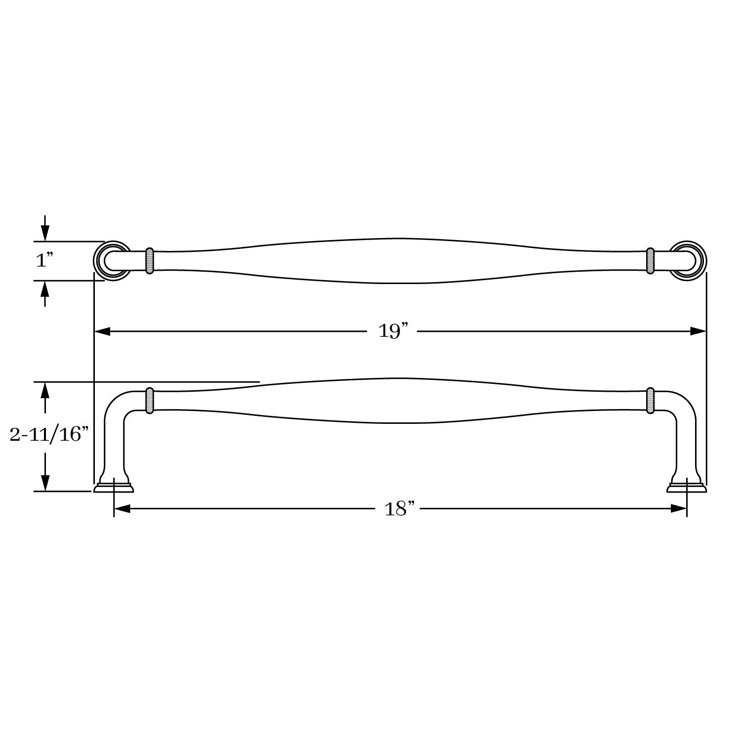 2756, Appliance Pull - 36" c-c, Classic Brass Ridge Collection