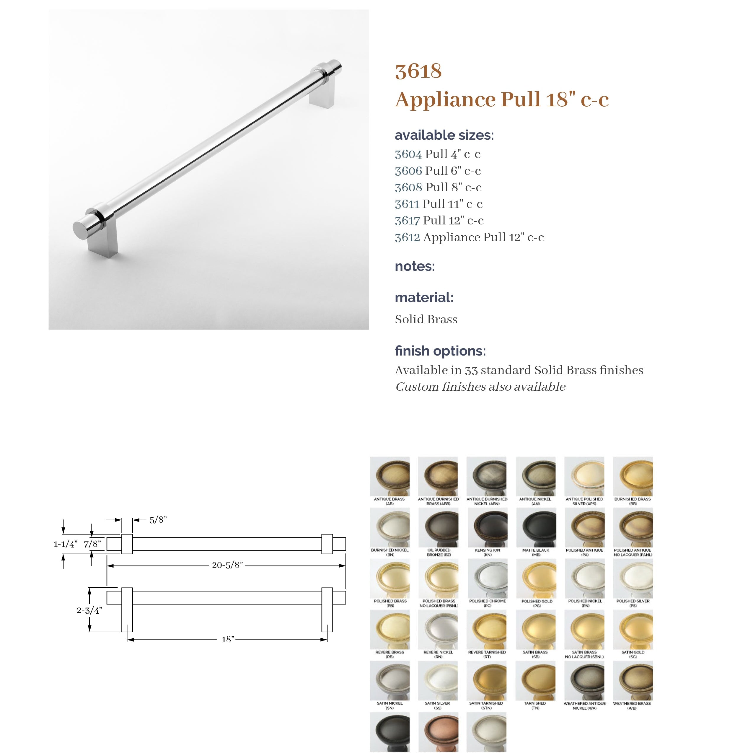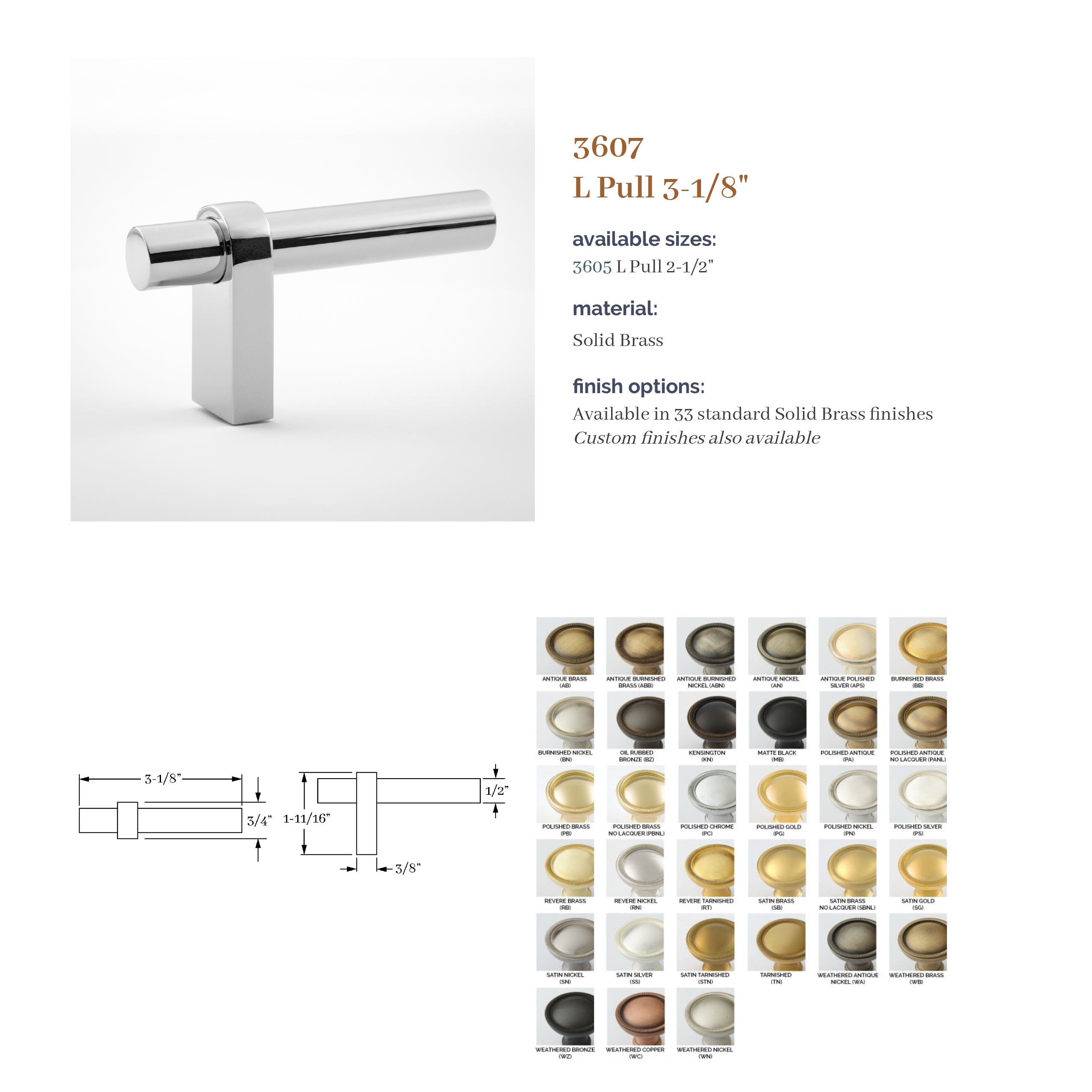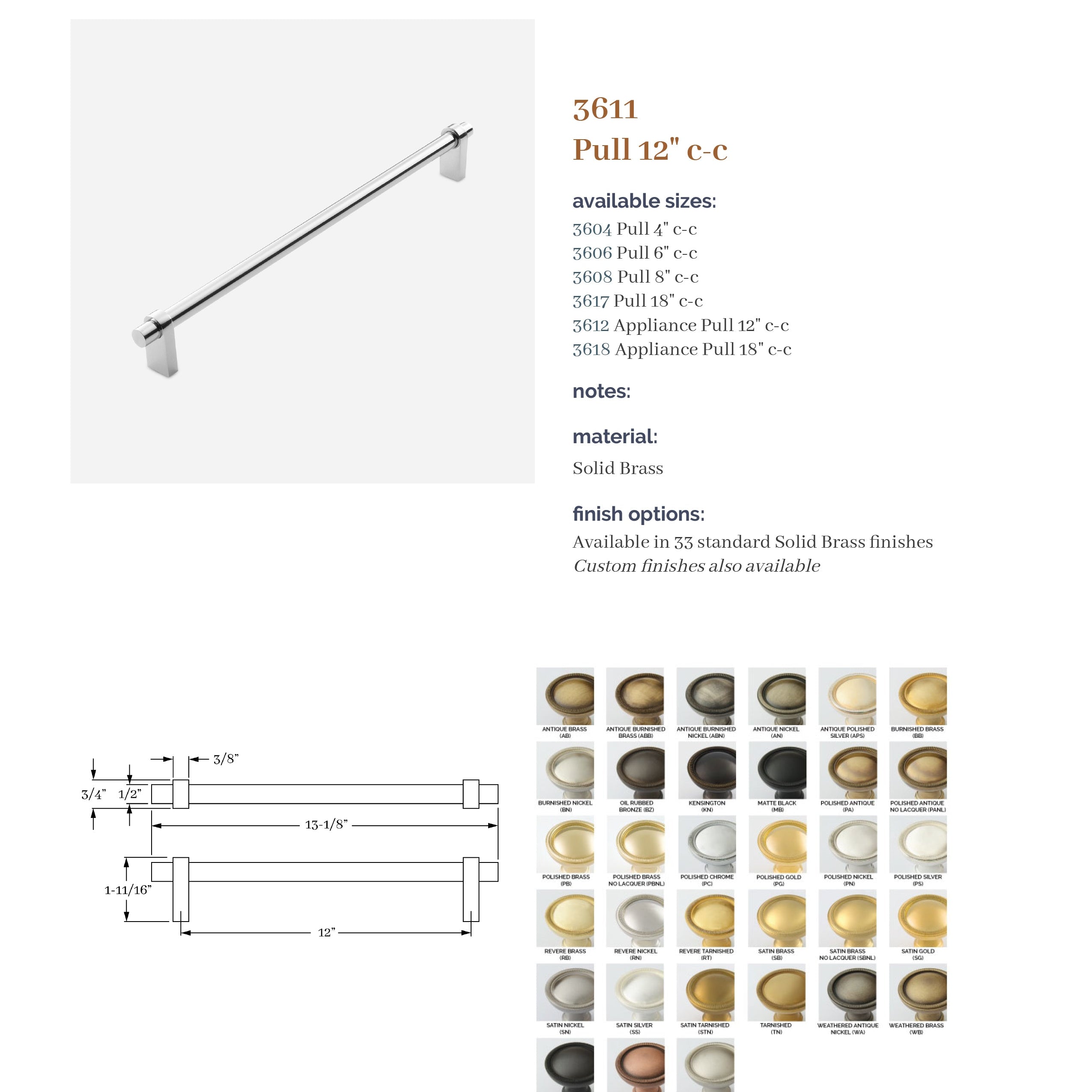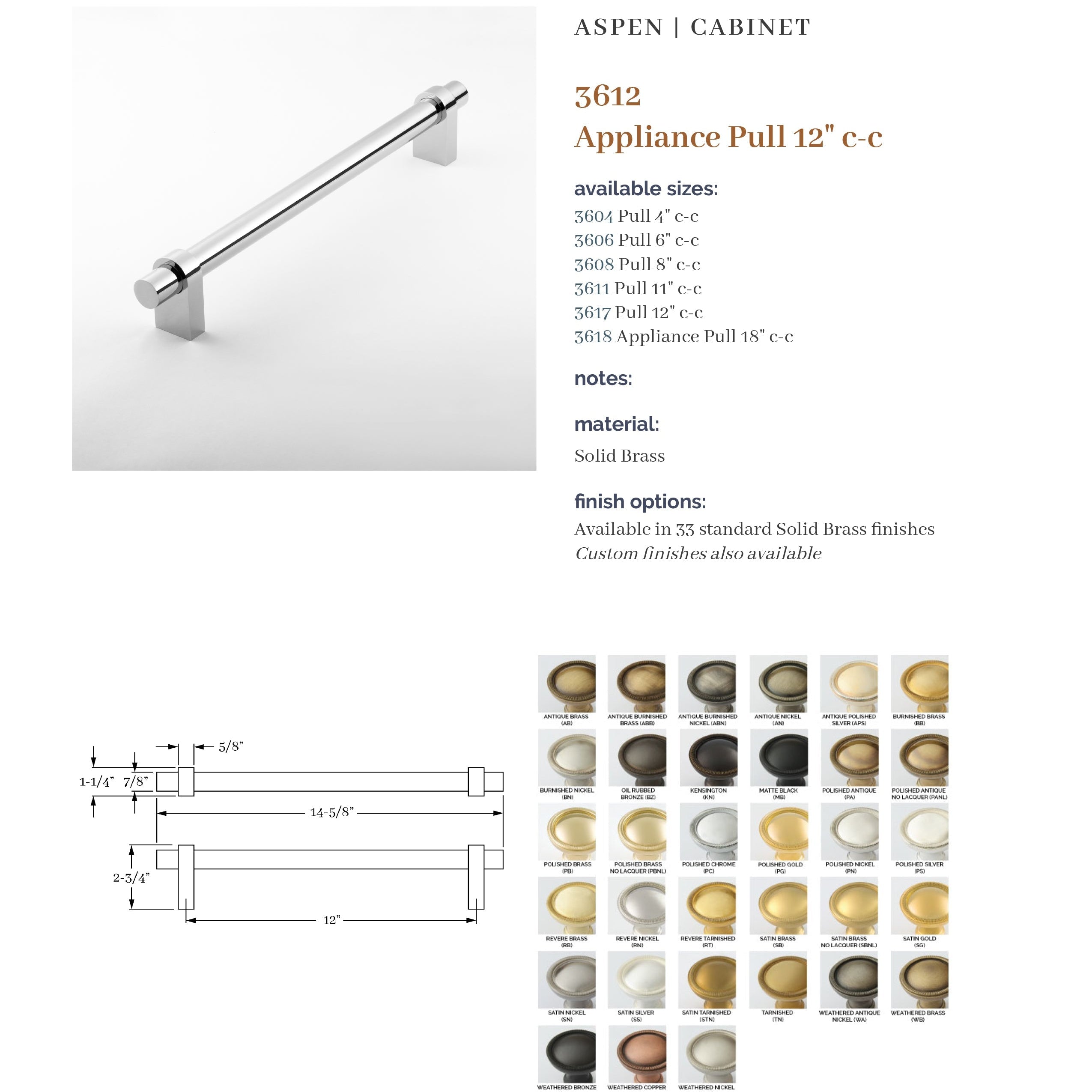 The Aspen Collection is based on a combination of products that provide a modern flavor. It is a top-selling Classic Brass collection. A unique feature is the ability to specify different finishes on the grip and arms with 37 finishes to choose from. In addition, custom center-to-center pulls are available.