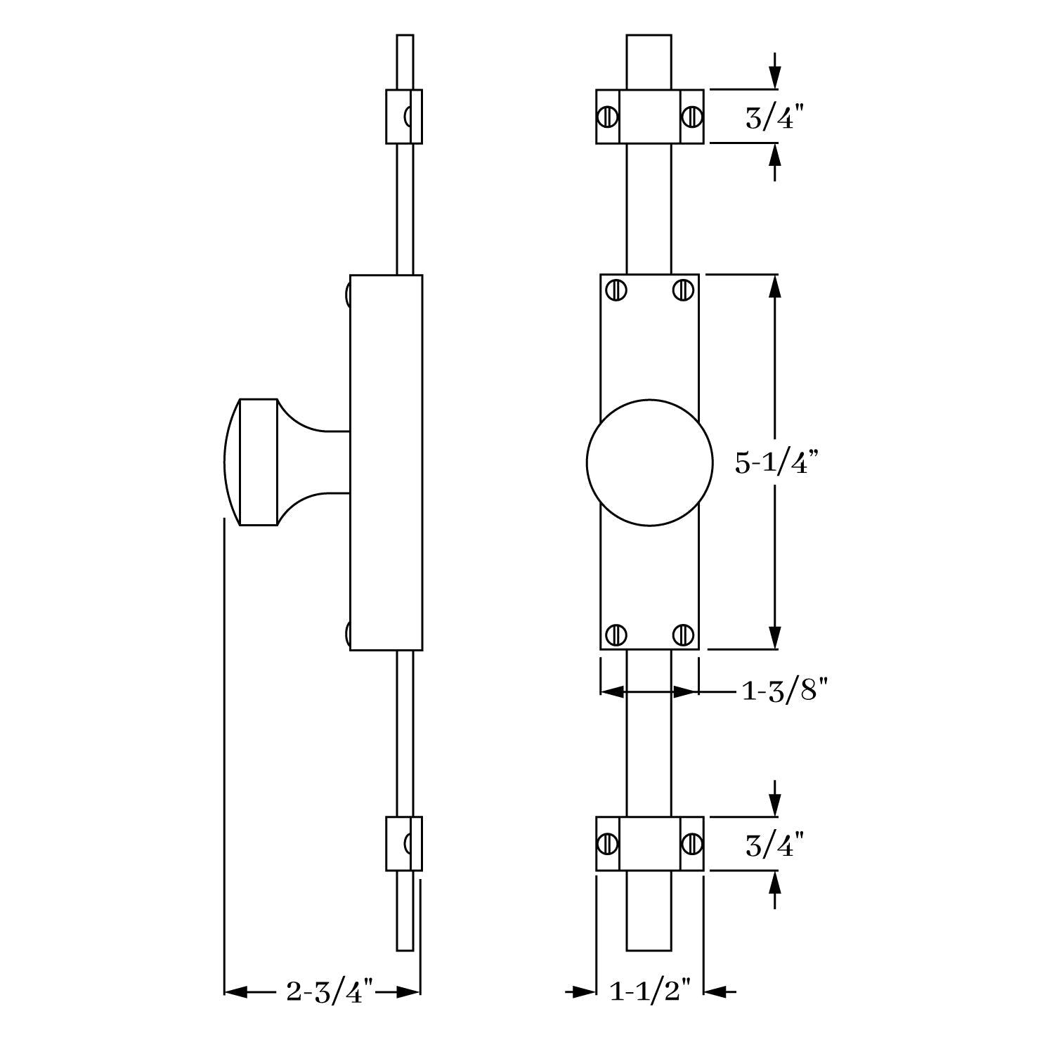 3281, Cabinet Cremone w/ Oval Knob - Half Dummy - 1-3/8" x 5-3/4" Square, Cabinet Cremones