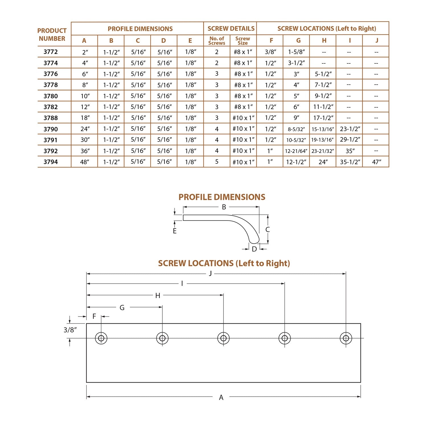 3794, Classic Brass Edge Pull - 48" Curve, Edge Pulls Collection