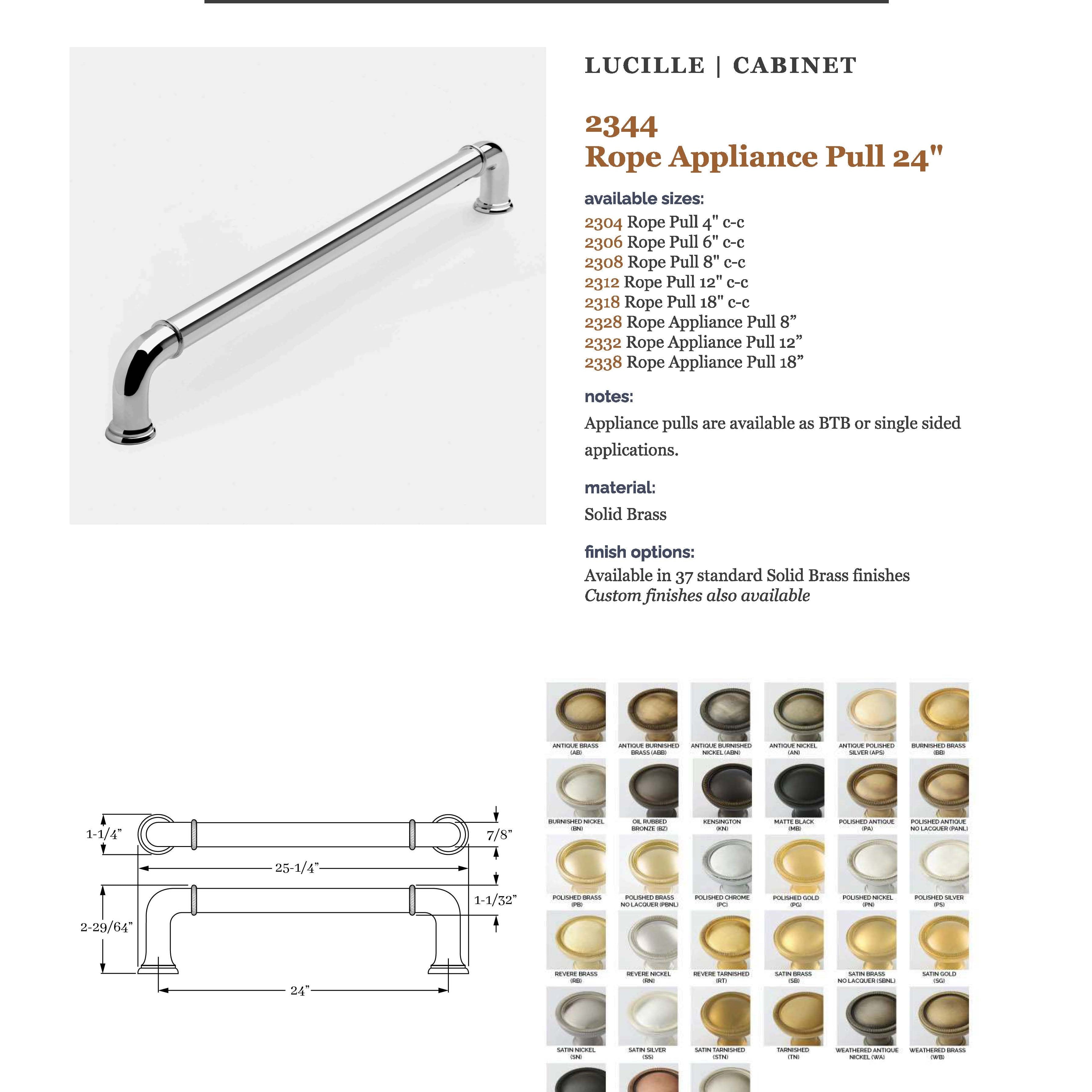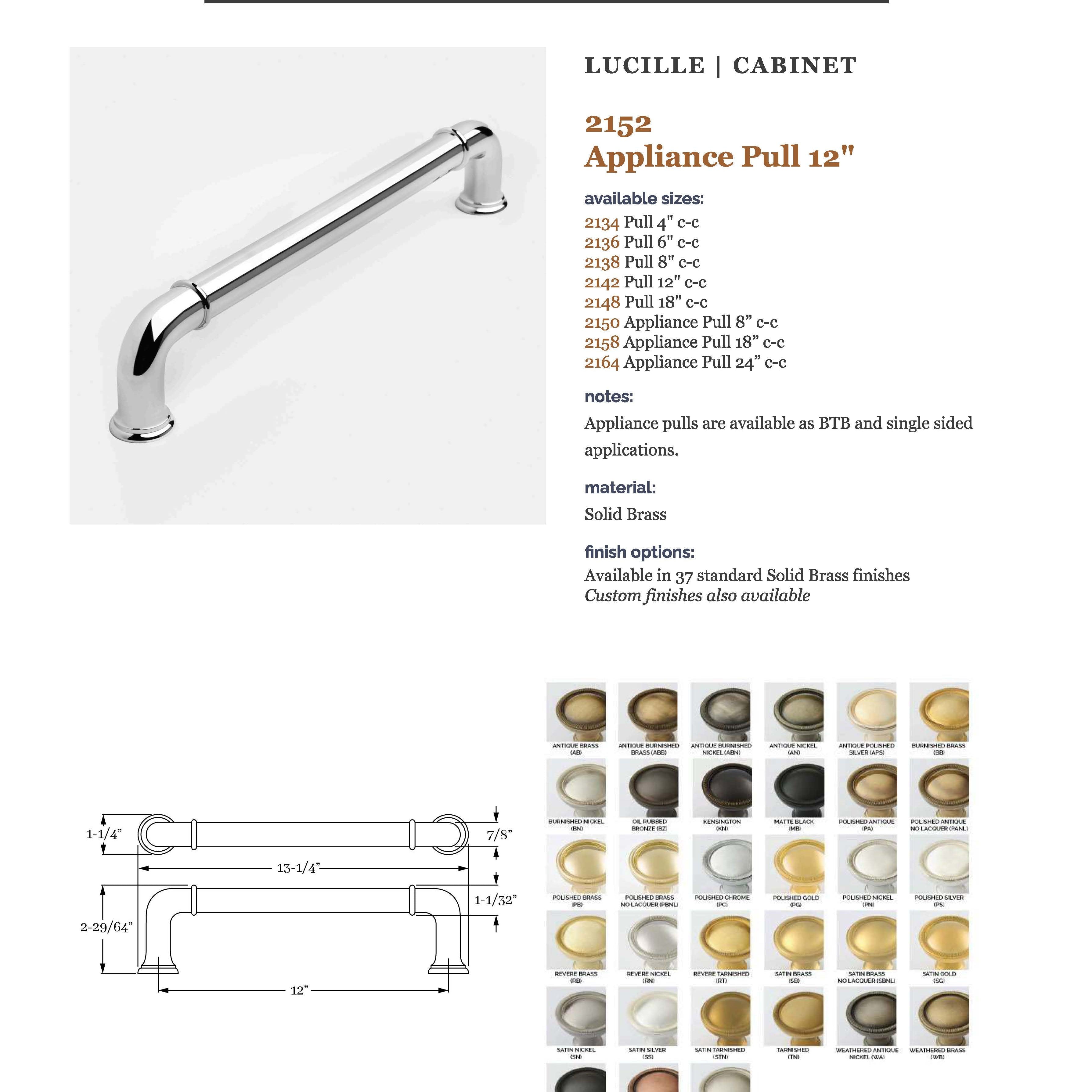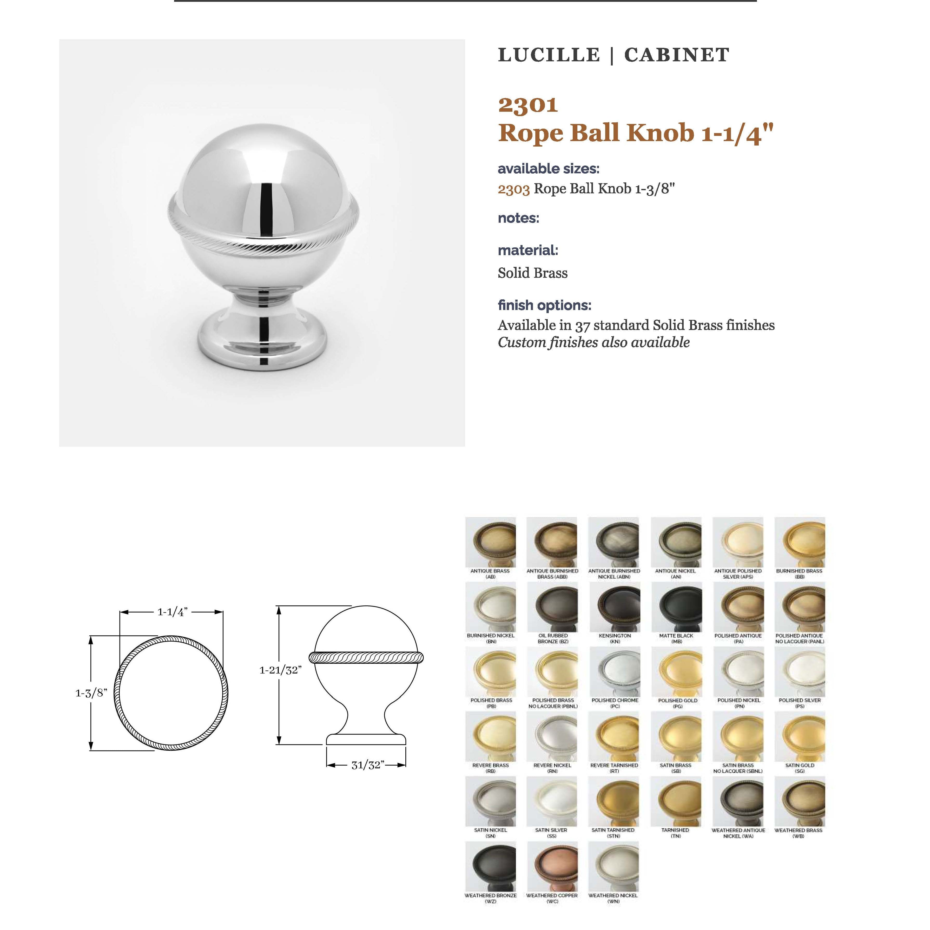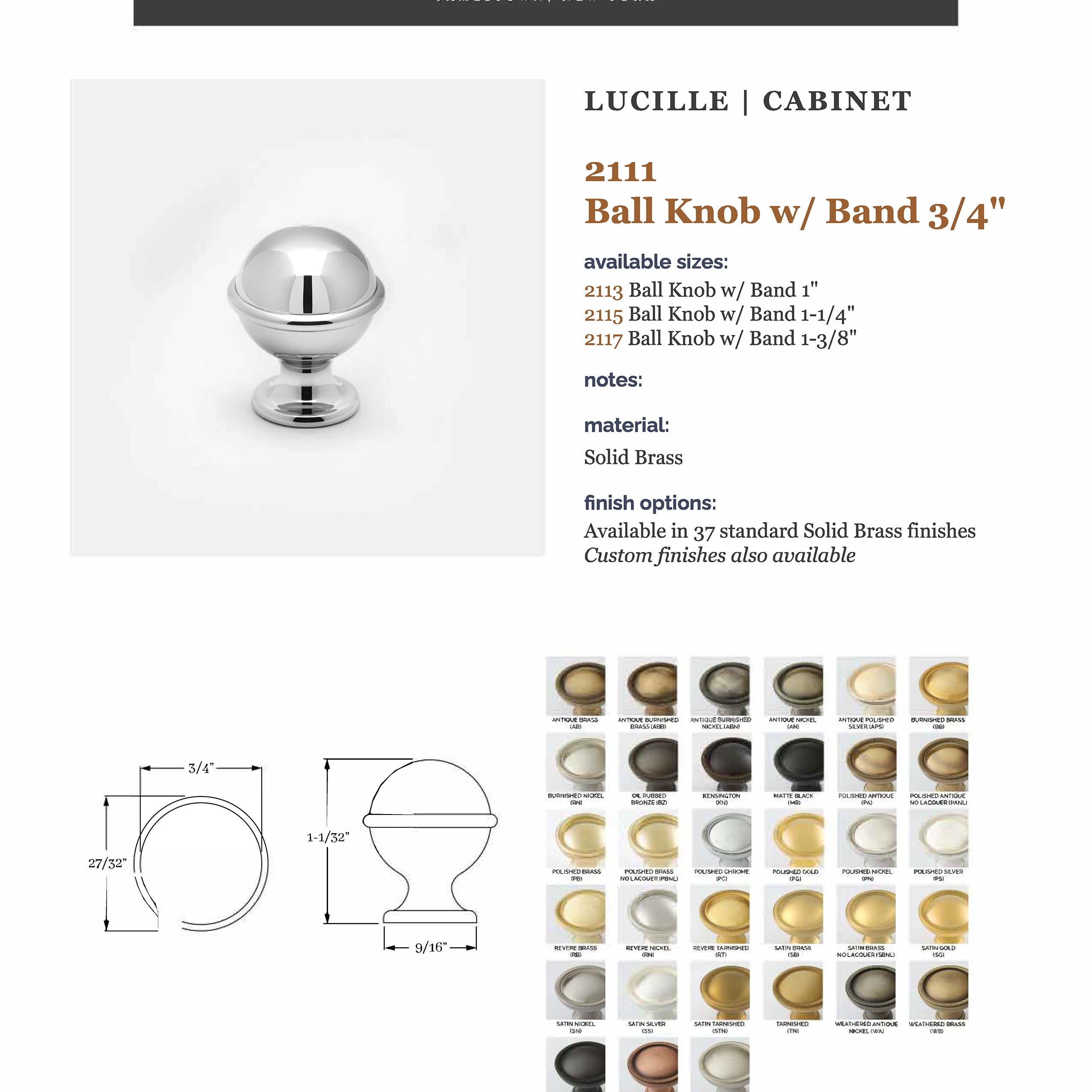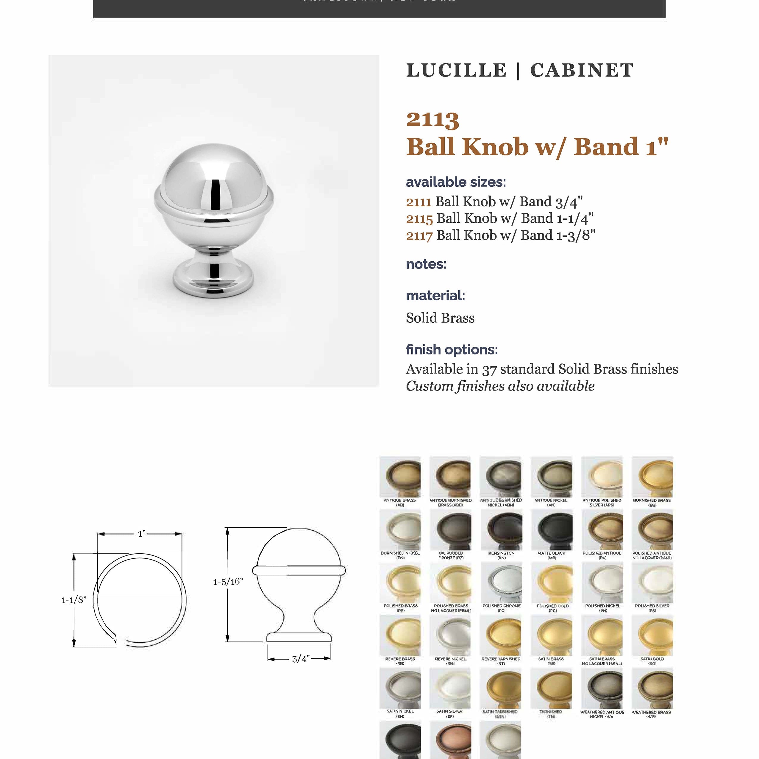 Introduced in 2024, Lucille Collection is one of the largest collections ever introduced by Classic Brass. The Lucille Collection is named for Lucille Ball, a famous Jamestown NY native. Fine band details are available in Plain, Rope and Coin bands to maximize options when selecting hardware to adorn your cabinets. Ball knobs are available in 4 styles and a range of sizes. Cabinet pulls are all the same scale and projection and available in 5 sizes (4” - 18”). Appliance pulls are offered in 4 sizes (8” – 24”) and in the same scale and projection. The entire collection is available in 33 finishes.