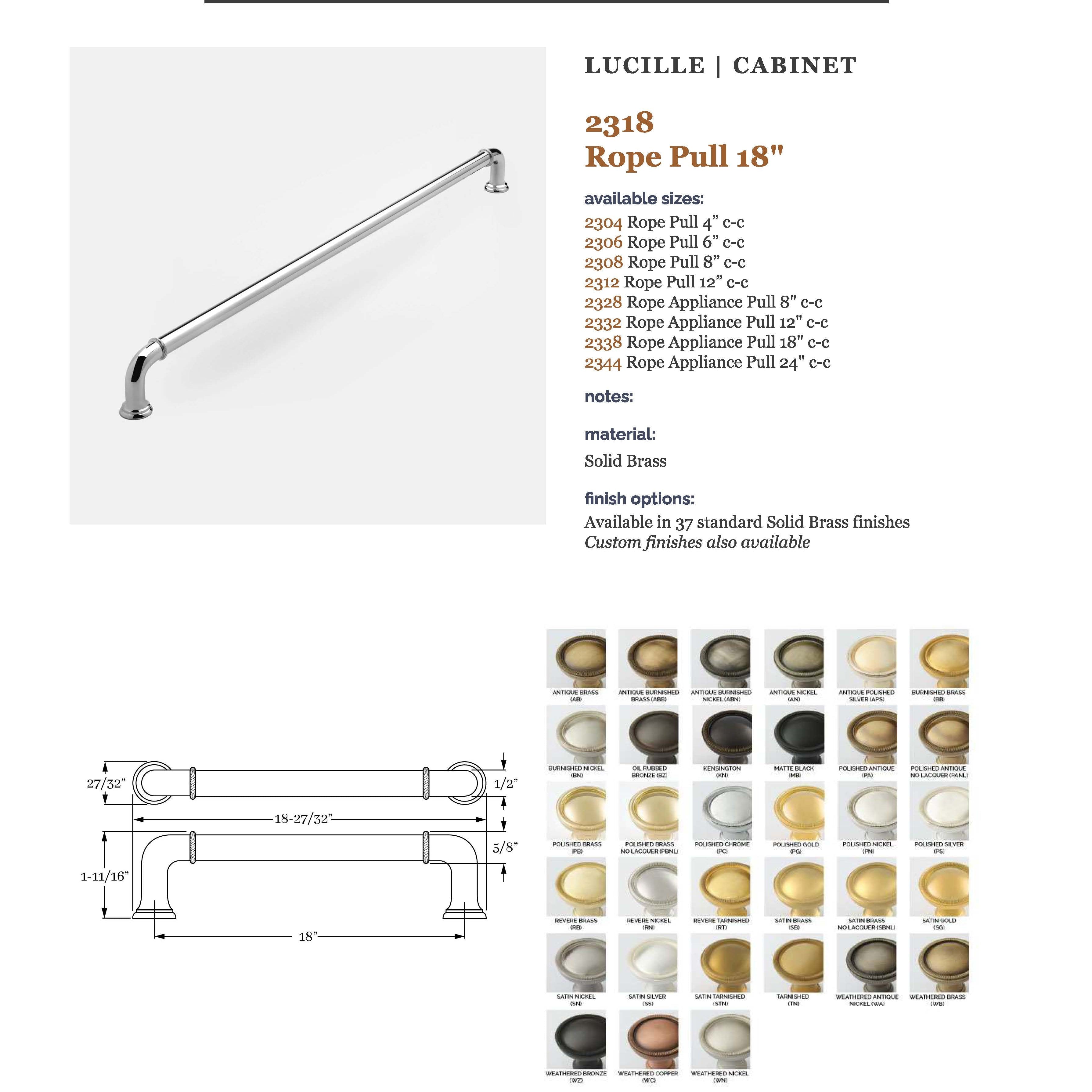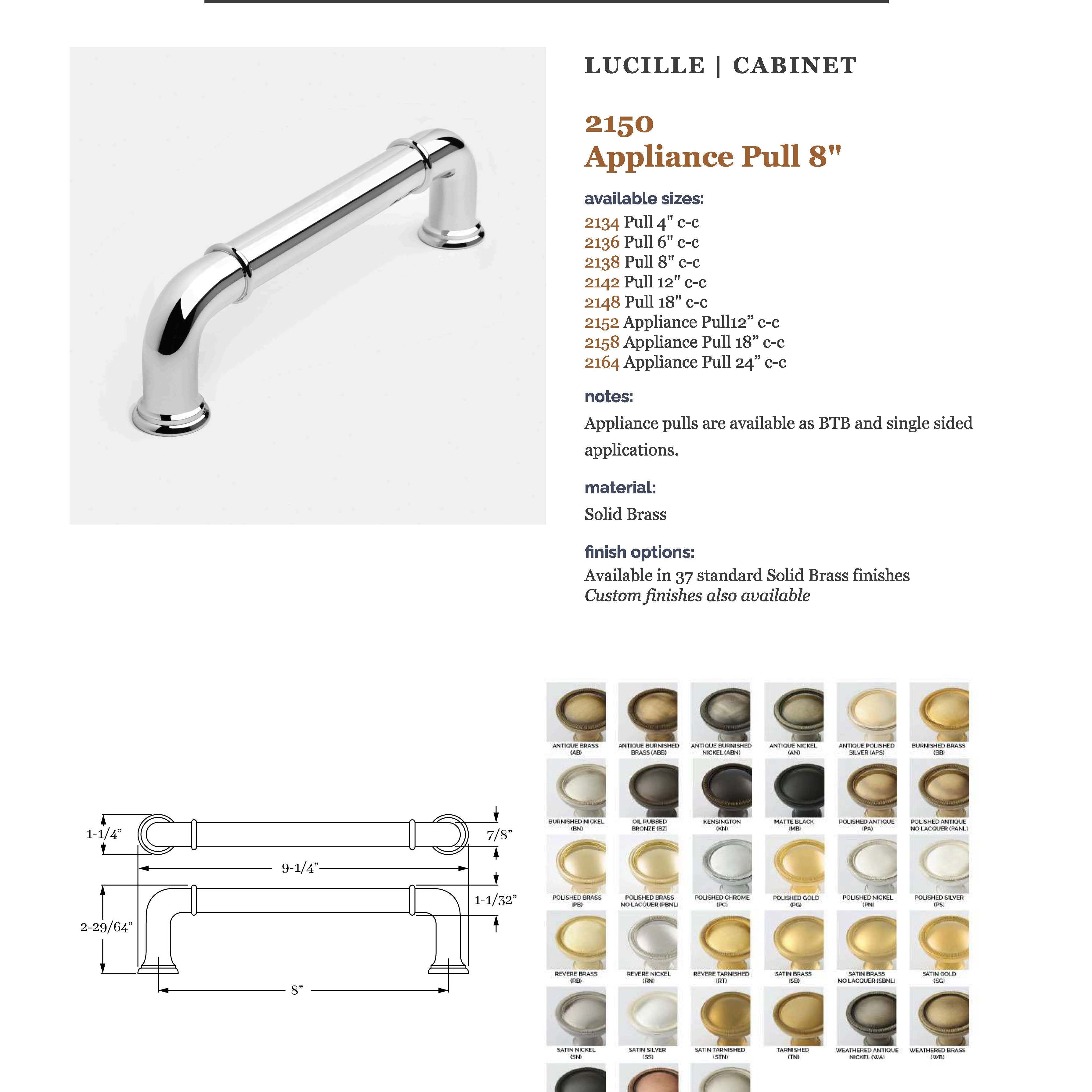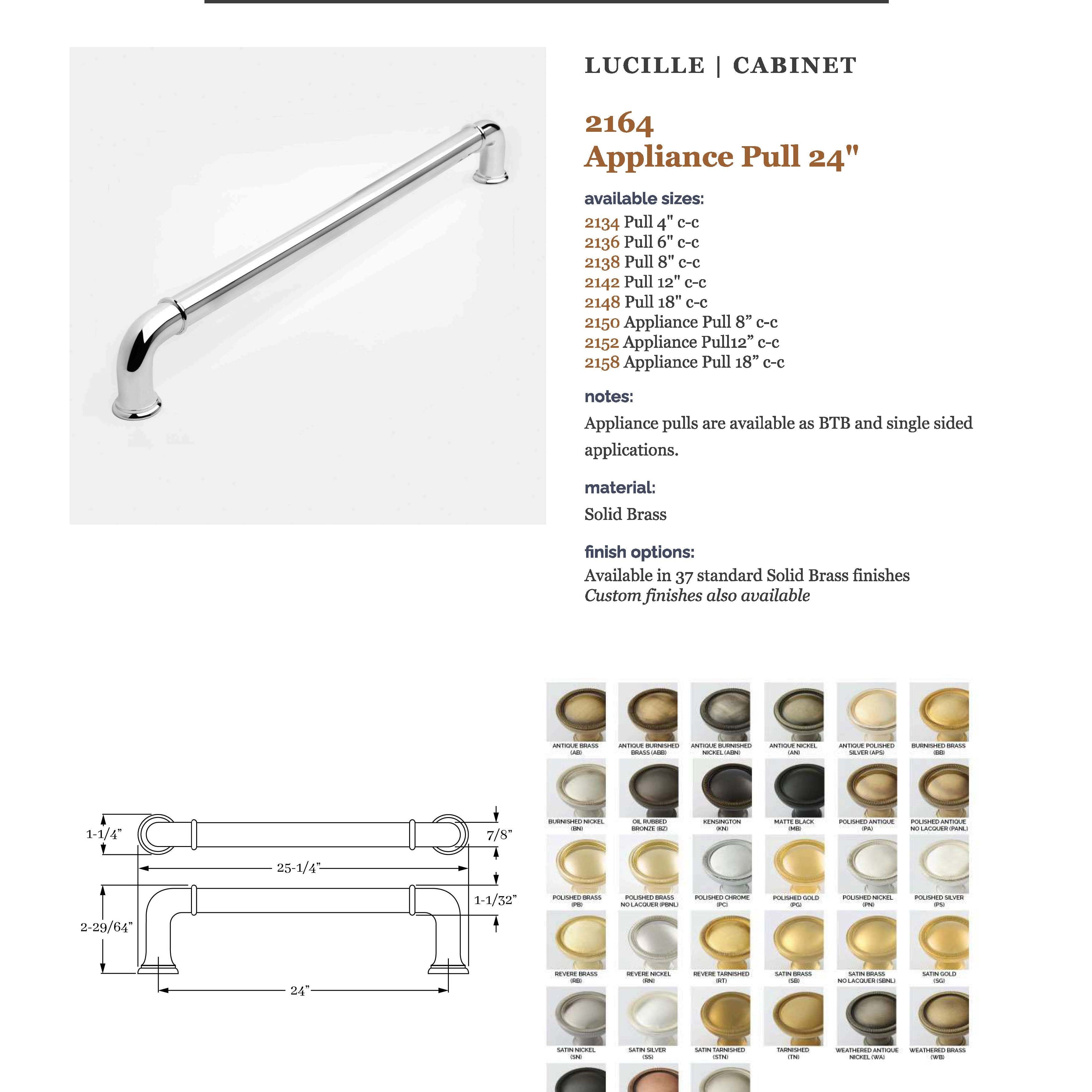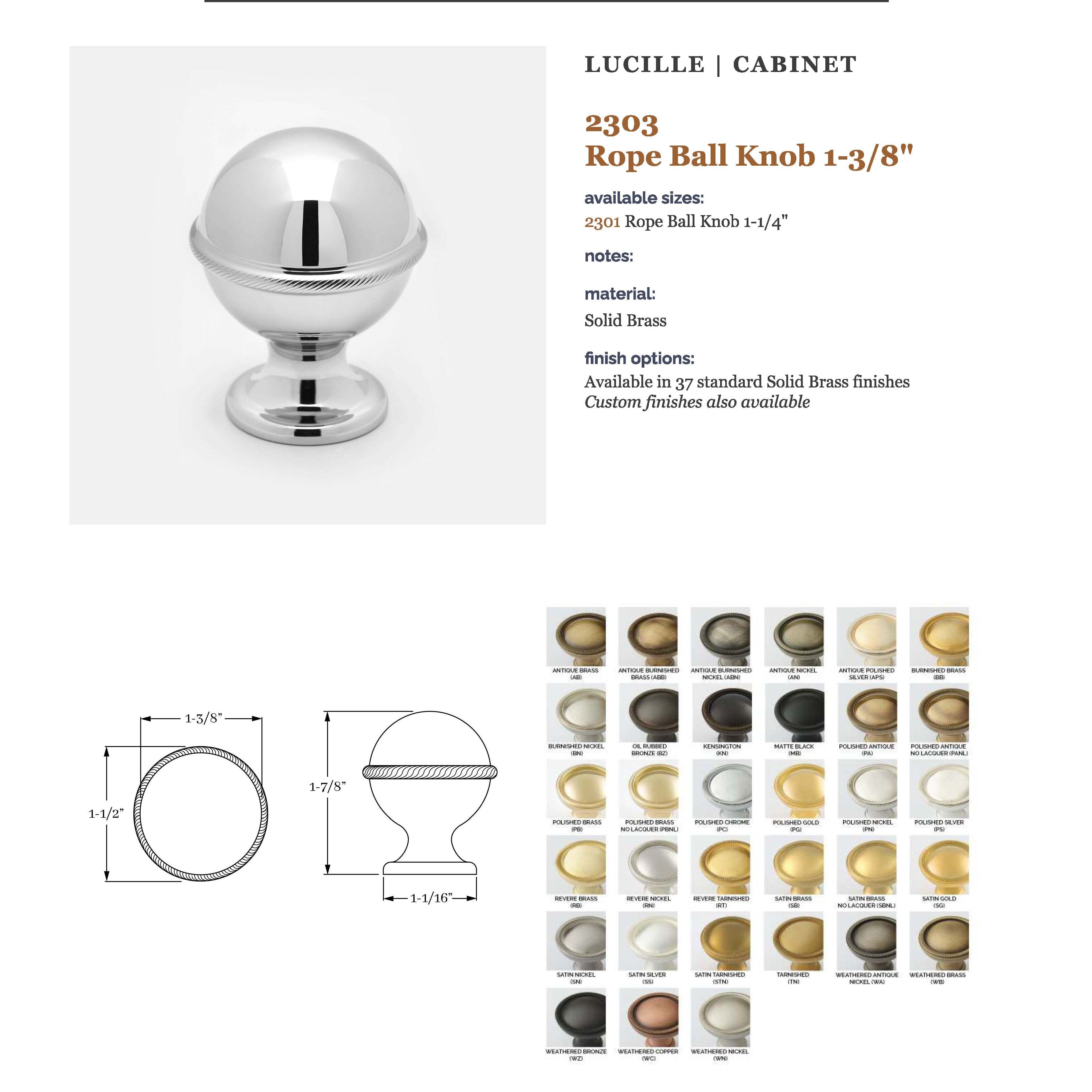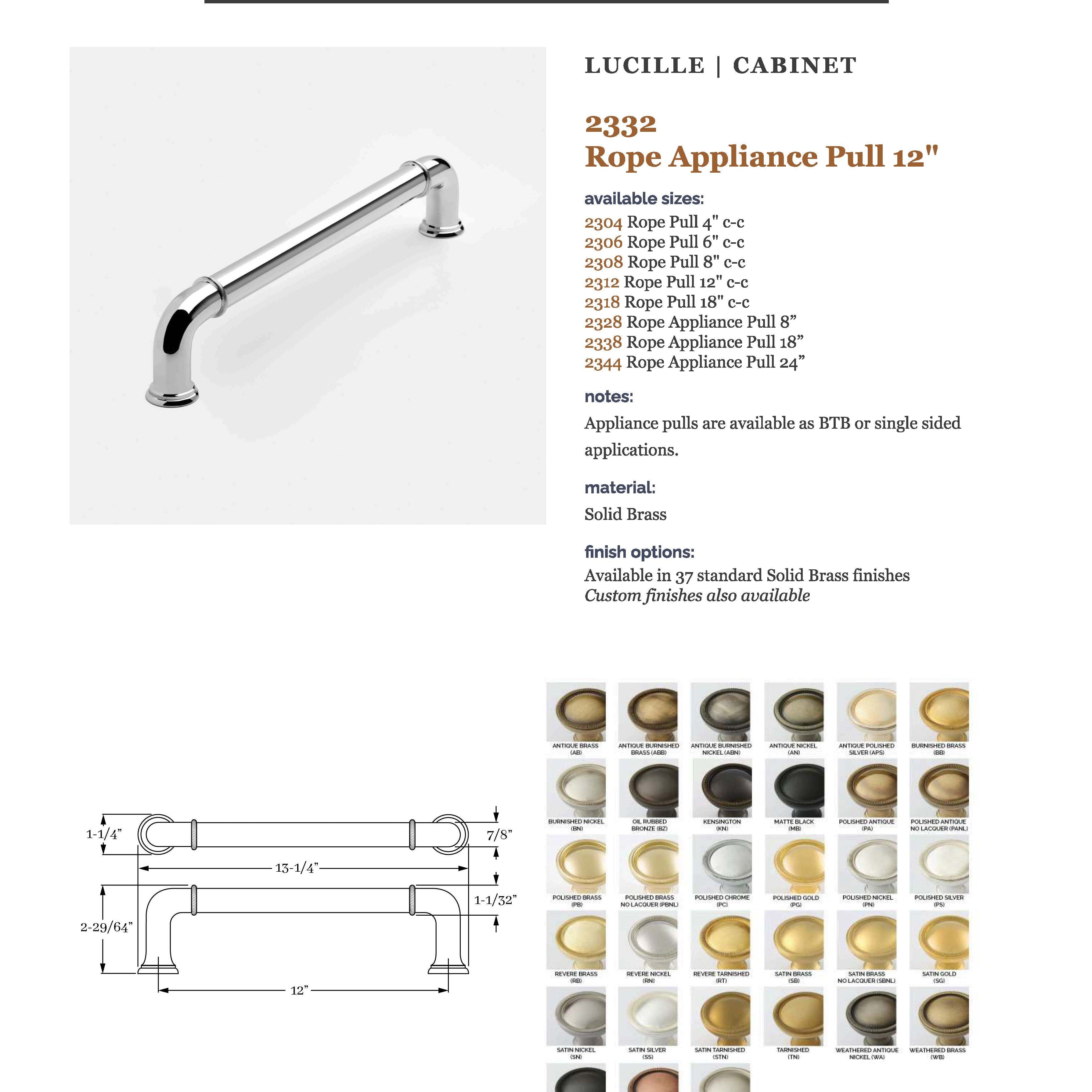 Introduced in 2024, Lucille Collection is one of the largest collections ever introduced by Classic Brass. The Lucille Collection is named for Lucille Ball, a famous Jamestown NY native. Fine band details are available in Plain, Rope and Coin bands to maximize options when selecting hardware to adorn your cabinets. Ball knobs are available in 4 styles and a range of sizes. Cabinet pulls are all the same scale and projection and available in 5 sizes (4” - 18”). Appliance pulls are offered in 4 sizes (8” – 24”) and in the same scale and projection. The entire collection is available in 33 finishes.