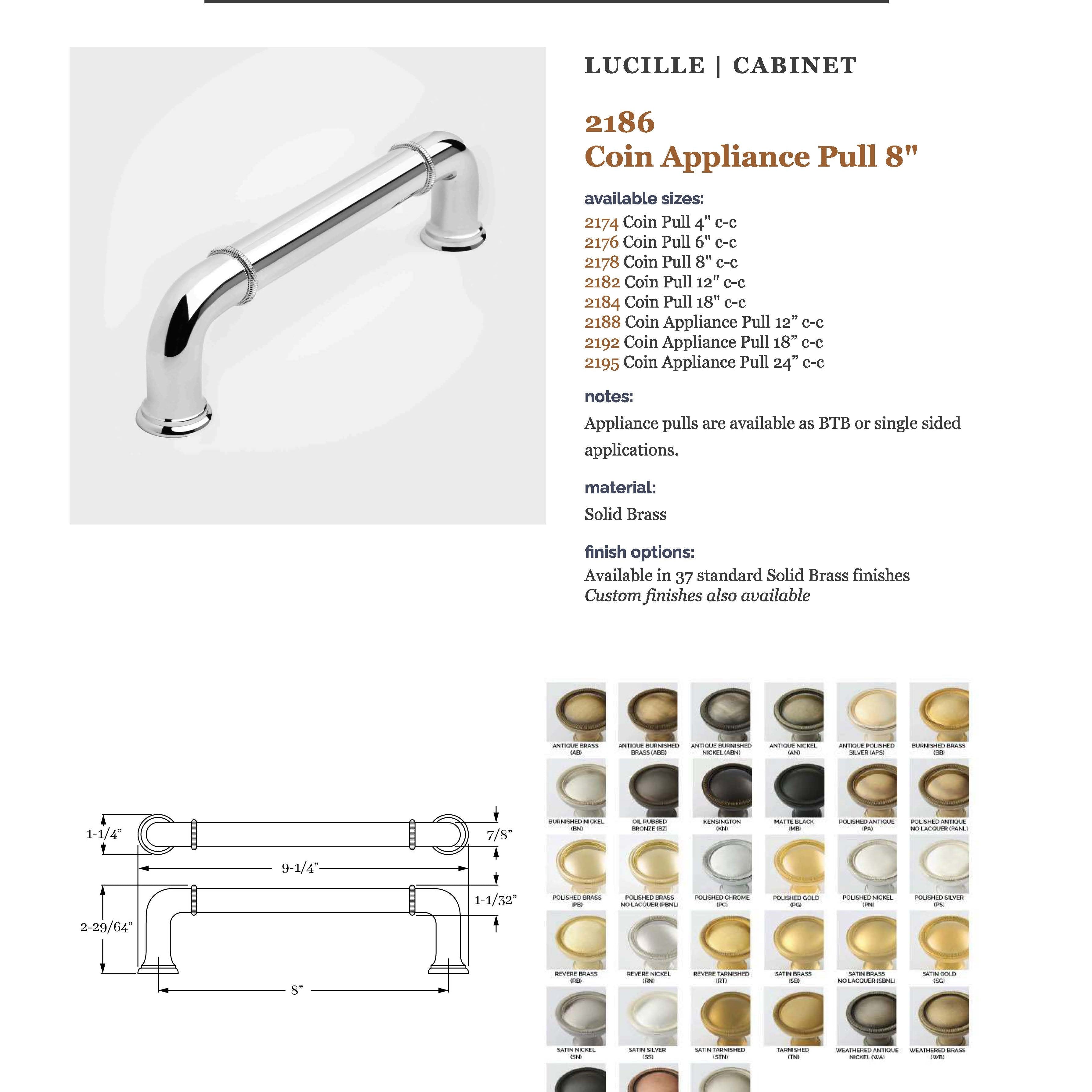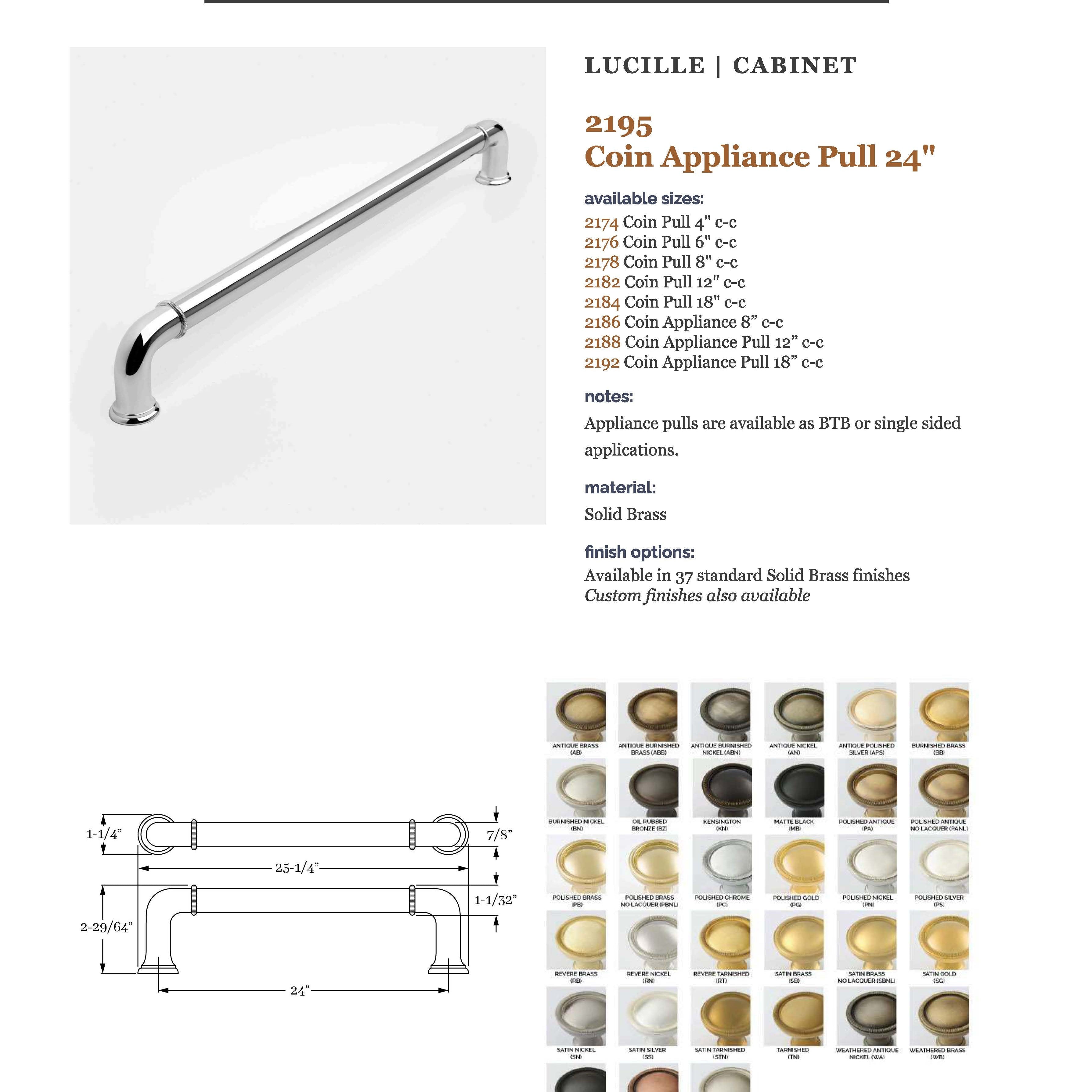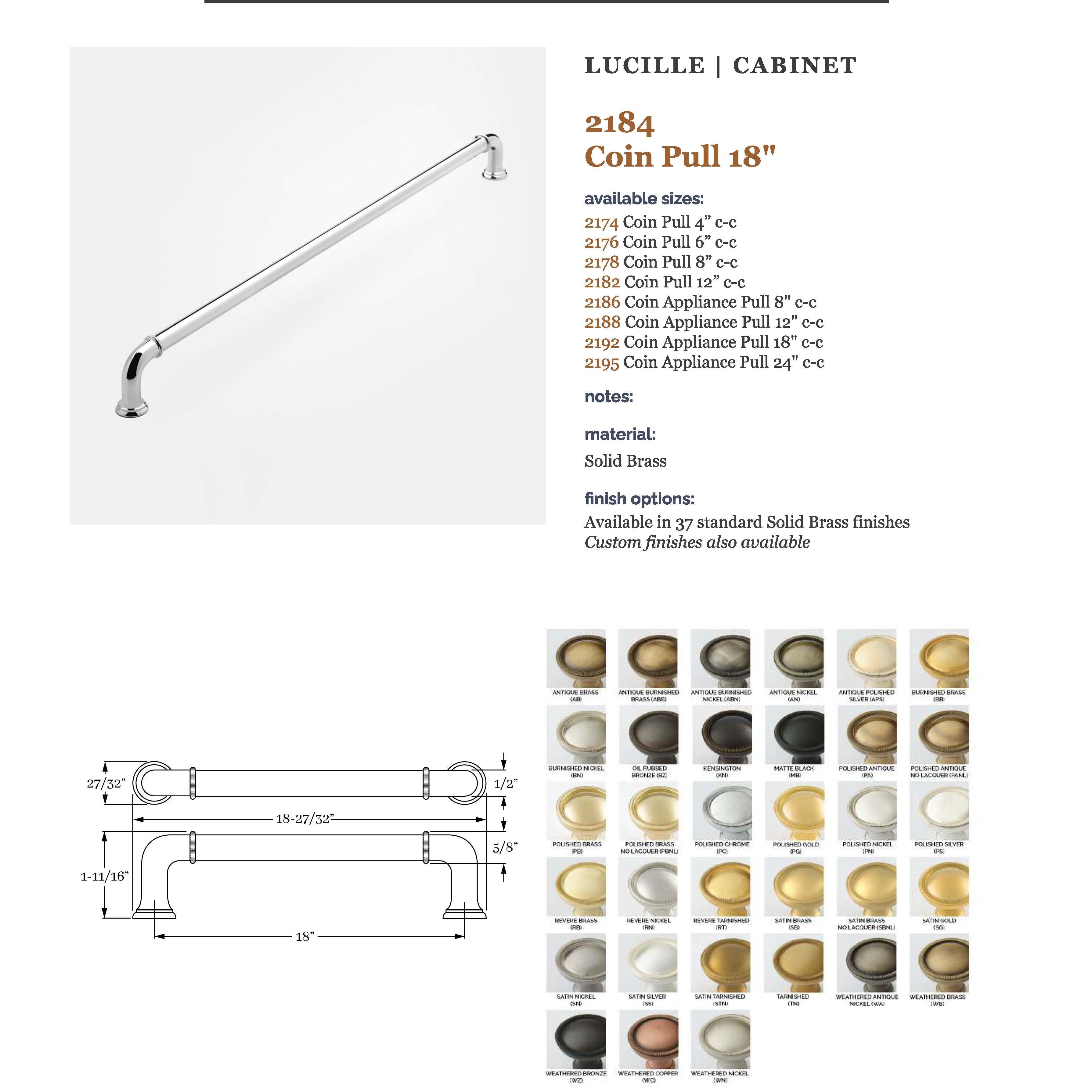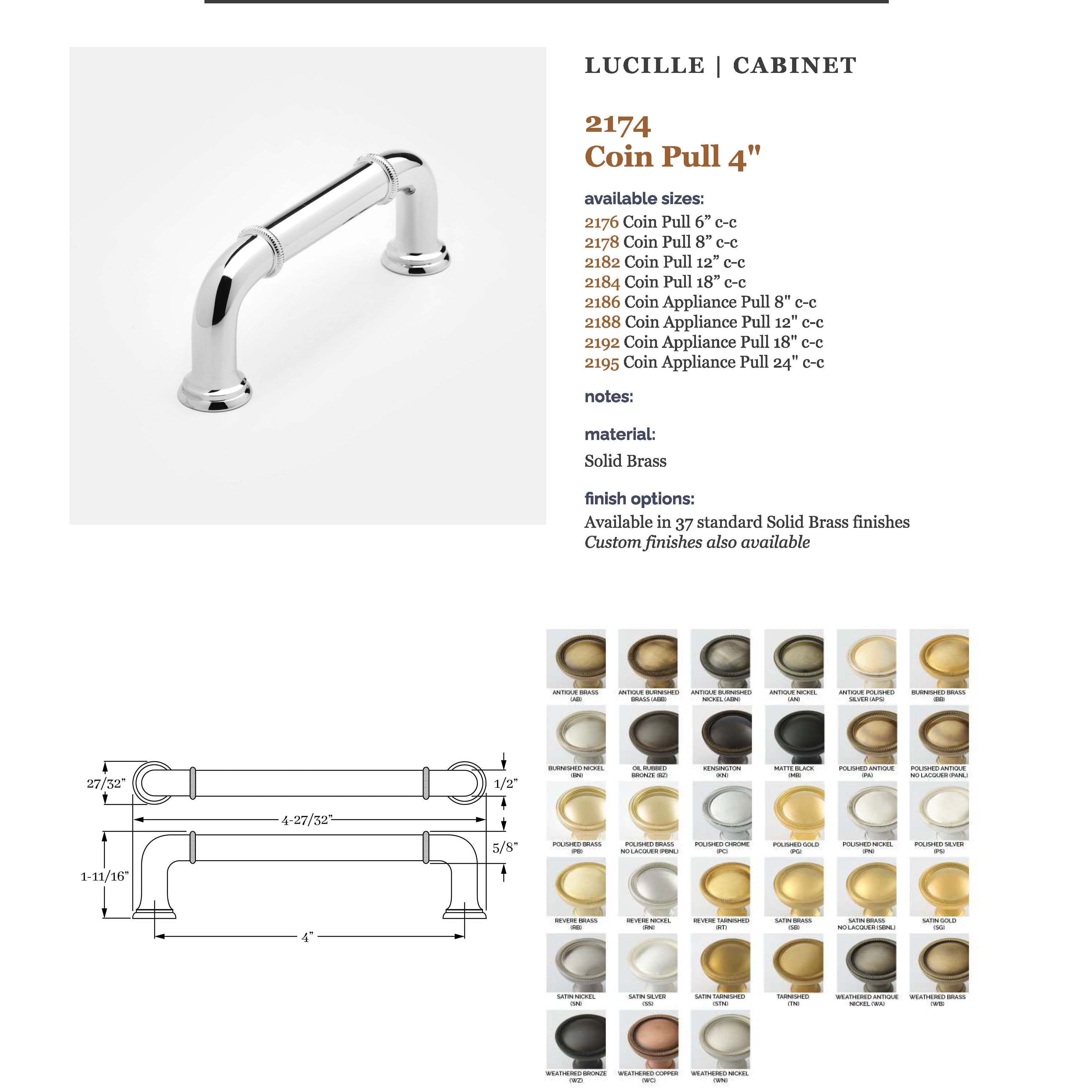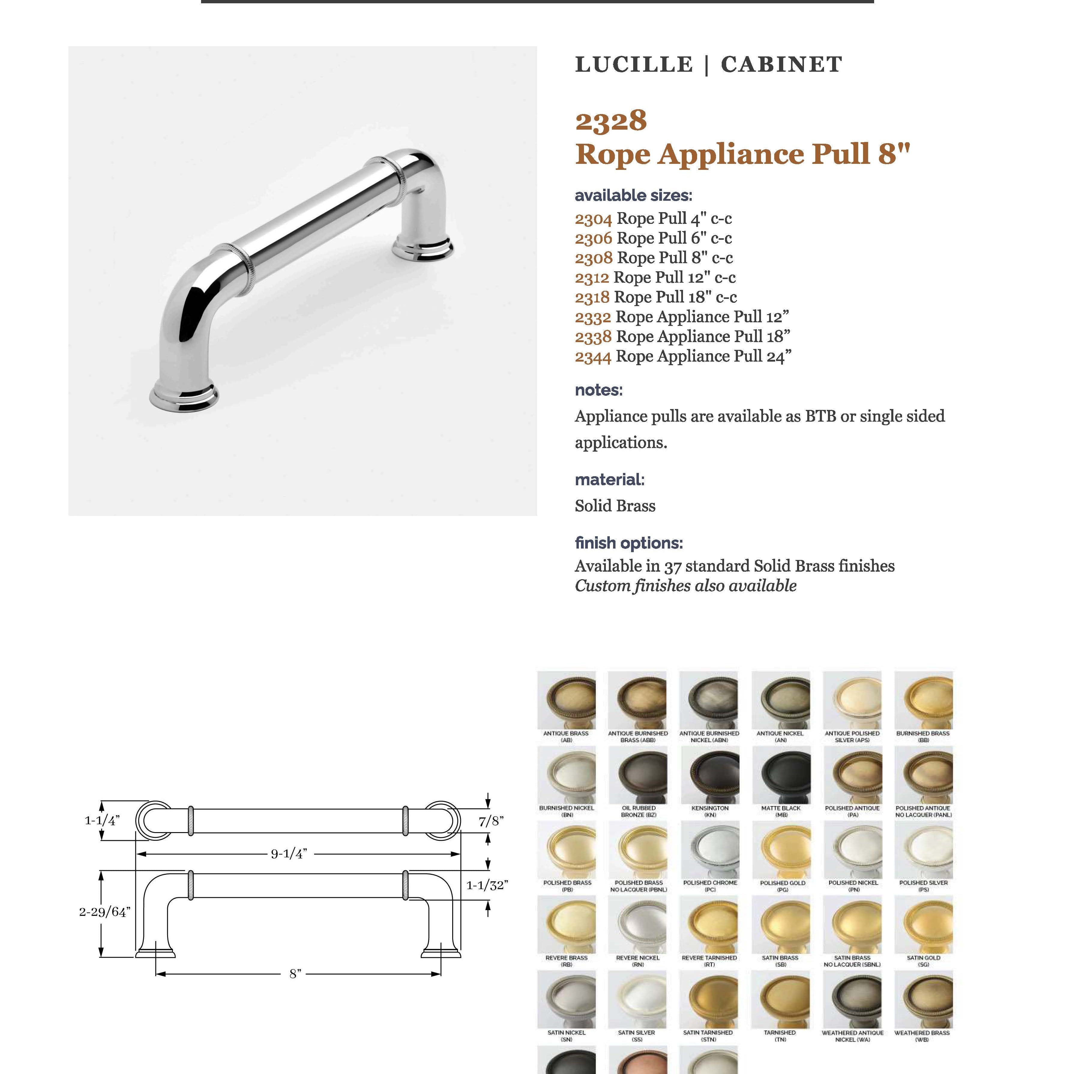 Introduced in 2024, Lucille Collection is one of the largest collections ever introduced by Classic Brass. The Lucille Collection is named for Lucille Ball, a famous Jamestown NY native. Fine band details are available in Plain, Rope and Coin bands to maximize options when selecting hardware to adorn your cabinets. Ball knobs are available in 4 styles and a range of sizes. Cabinet pulls are all the same scale and projection and available in 5 sizes (4” - 18”). Appliance pulls are offered in 4 sizes (8” – 24”) and in the same scale and projection. The entire collection is available in 33 finishes.