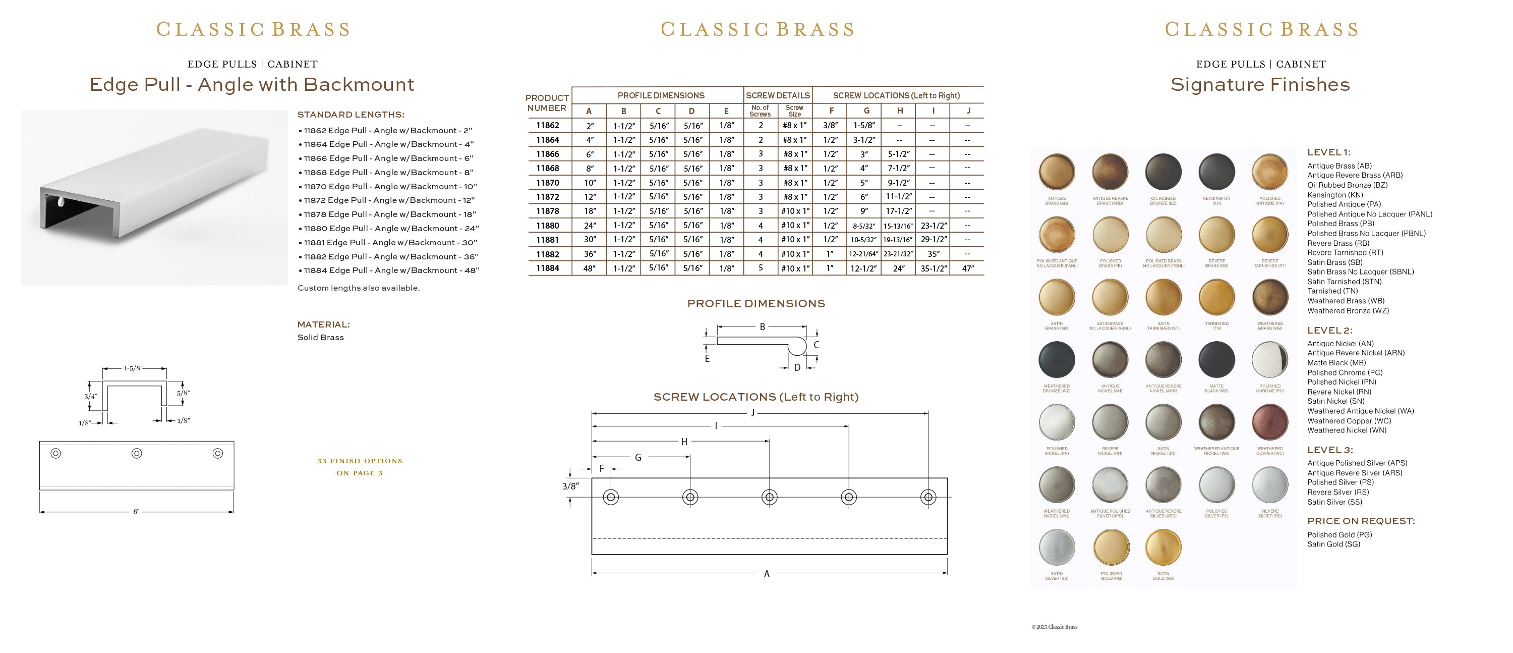 11884, Classic Brass Edge Pull - Angle w/Backmount - 48", Edge Pulls Collection