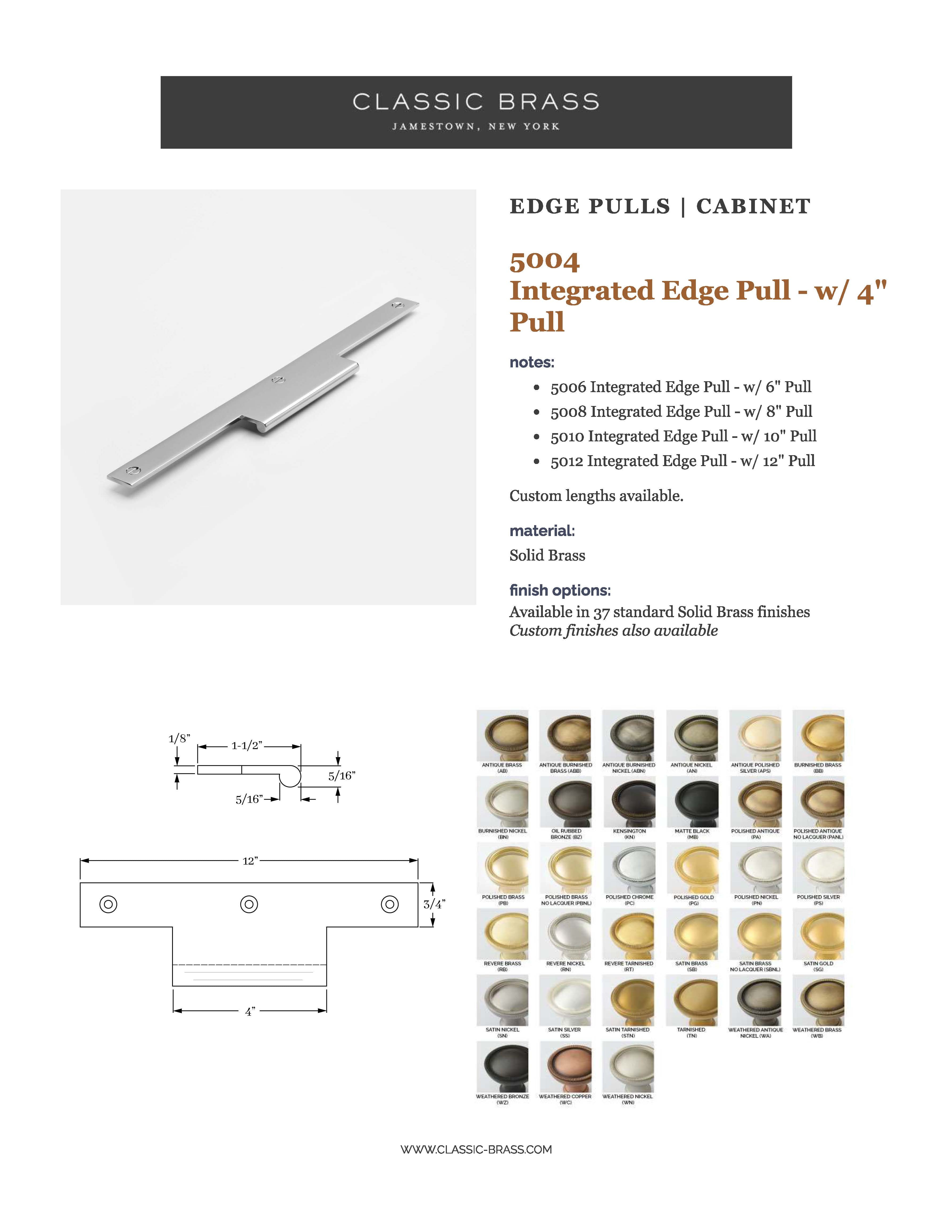 5004, Integrated Edge Pull - w/ 4" Pull - 12", Edge Pulls Collection