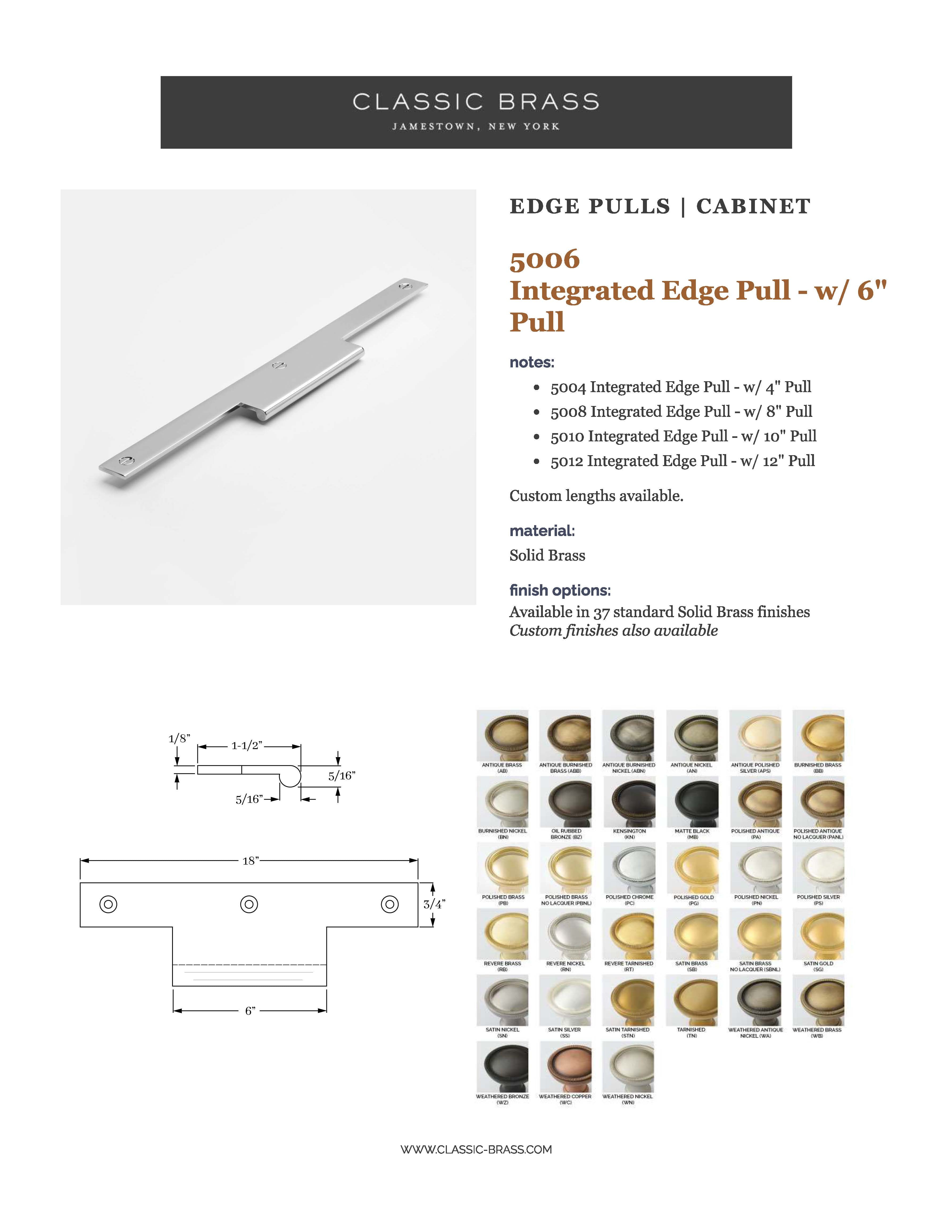 5006, Integrated Edge Pull - w/ 6" Pull - 18", Edge Pulls Collection