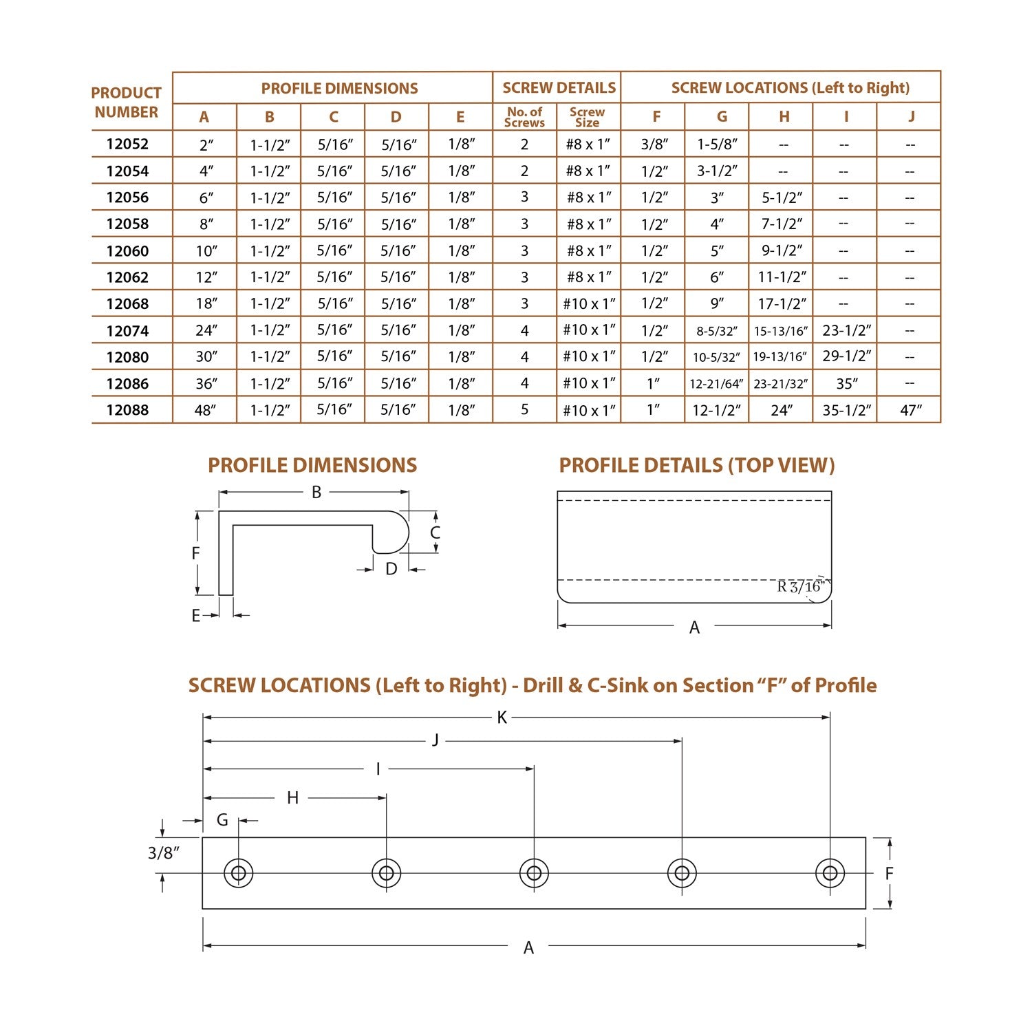 12068, Classic Brass Edge Pull - BULLNOSE w/Radius - w/Backmount - 18", Edge Pulls Collection