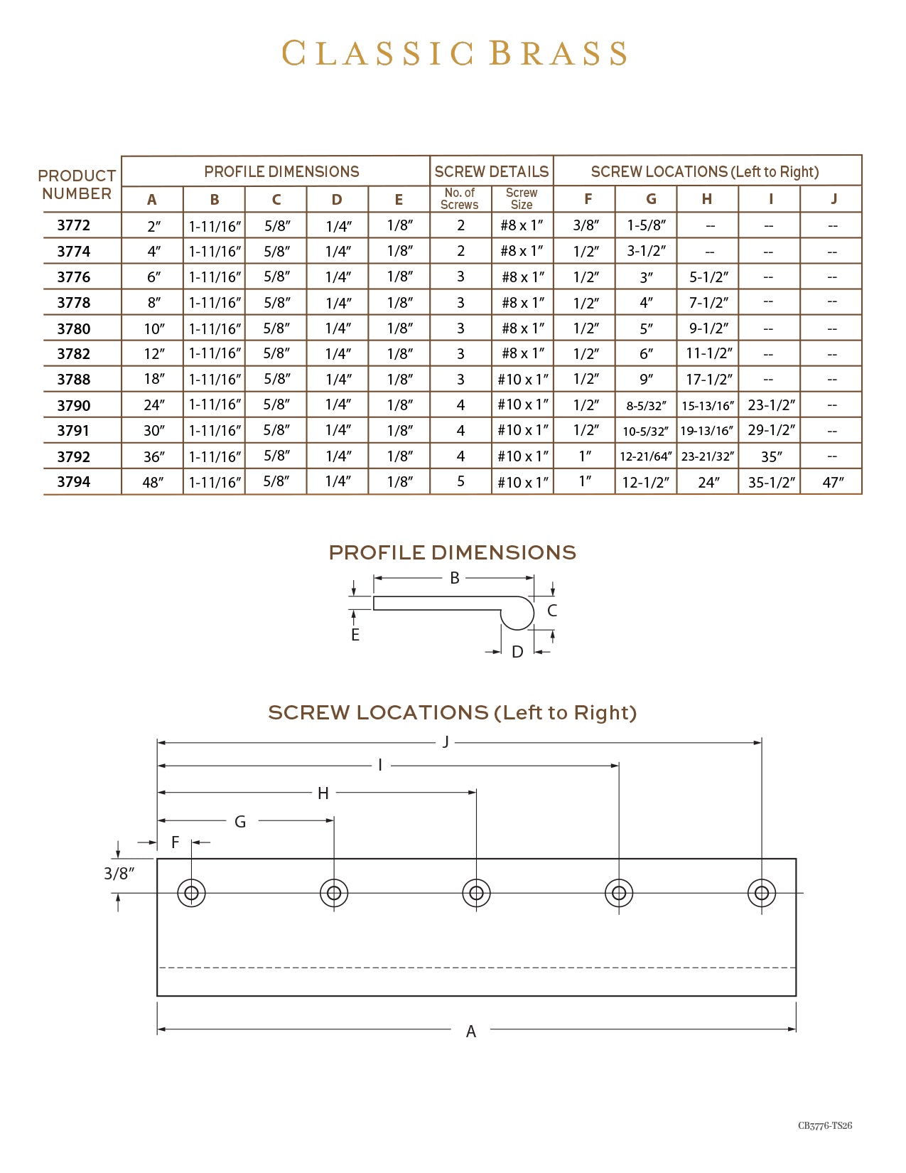 3794, Classic Brass Edge Pull - 48" Curve, Edge Pulls Collection