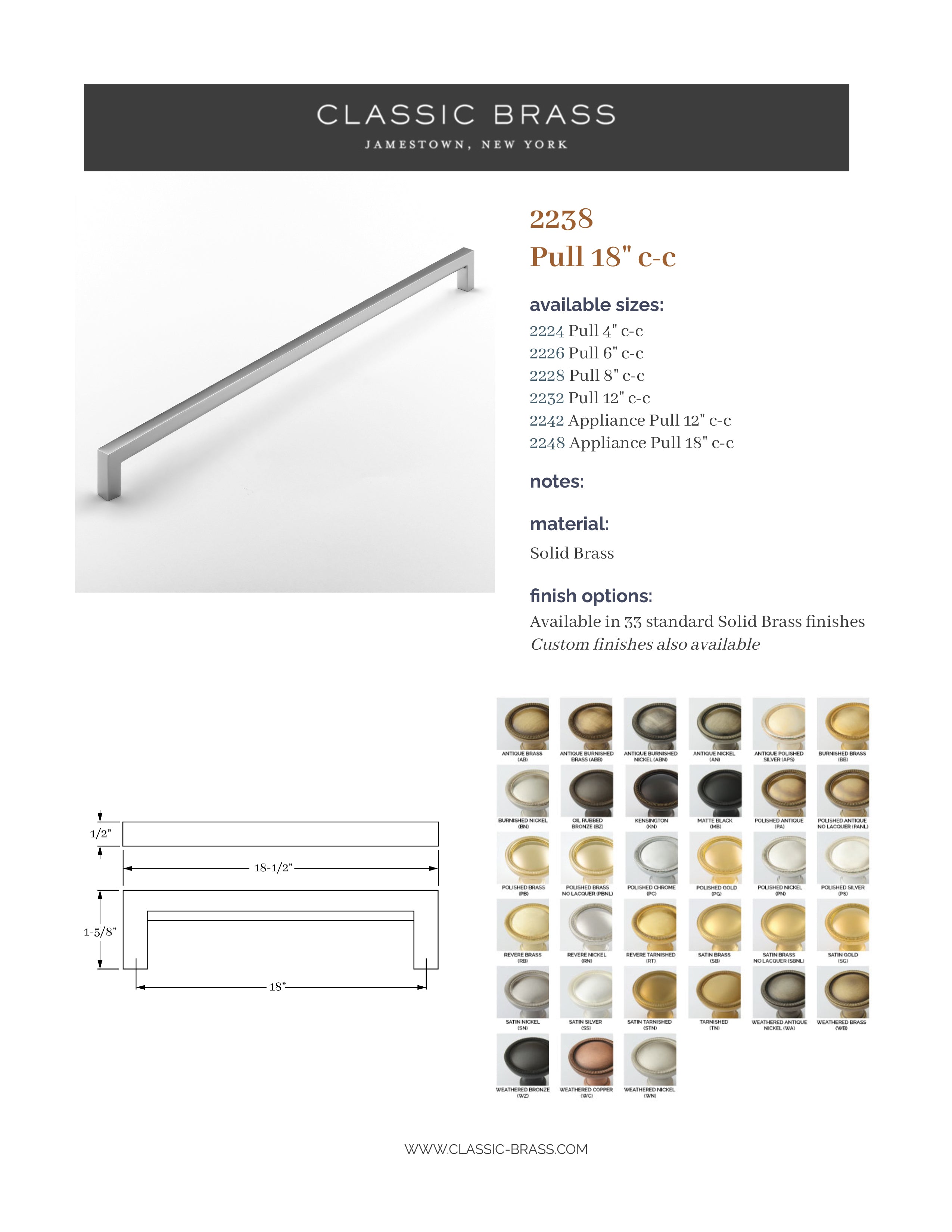 2238, Pull - 18" c-c, Classic Brass Palmer Collection