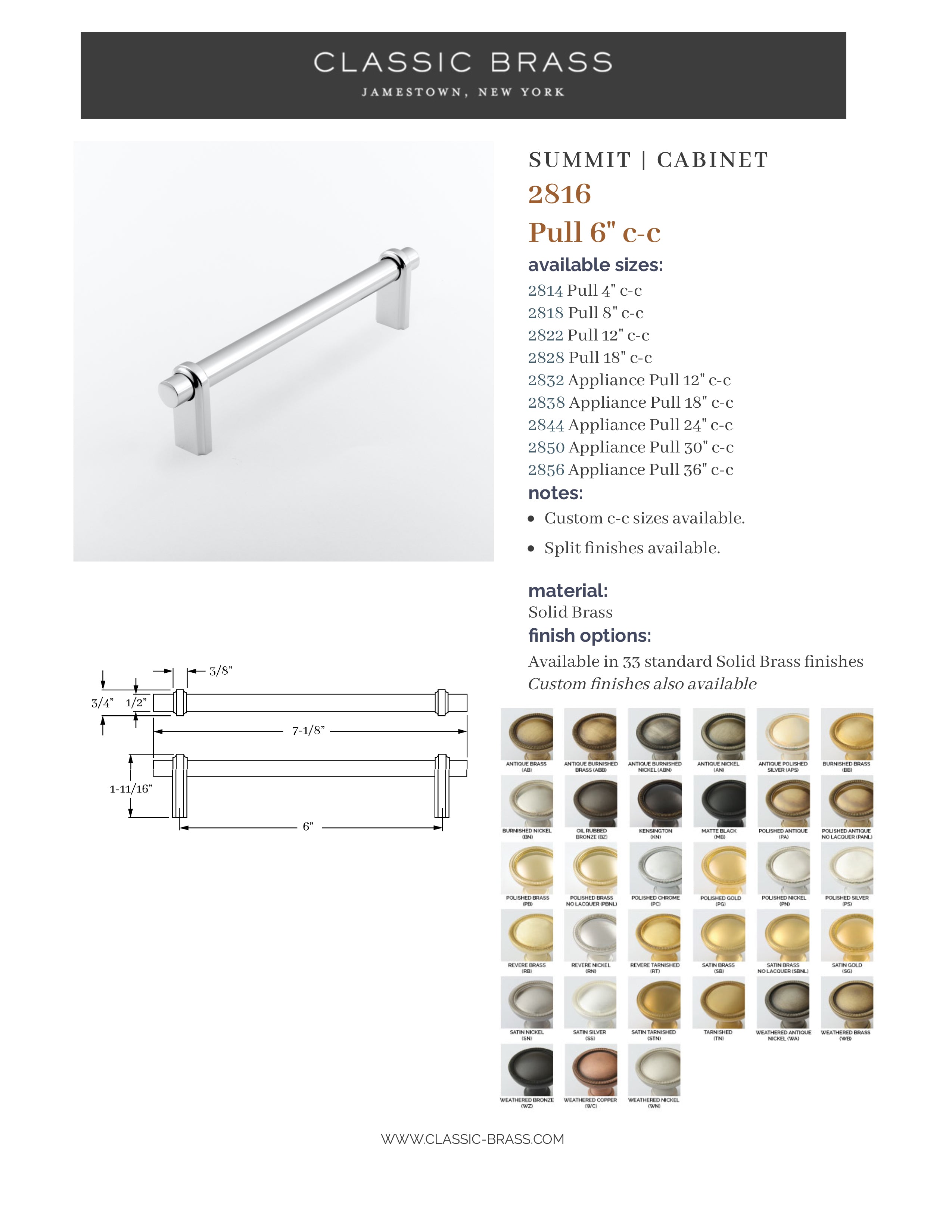 2816, Pull - 6" c-c, Classic Brass Summit Collection