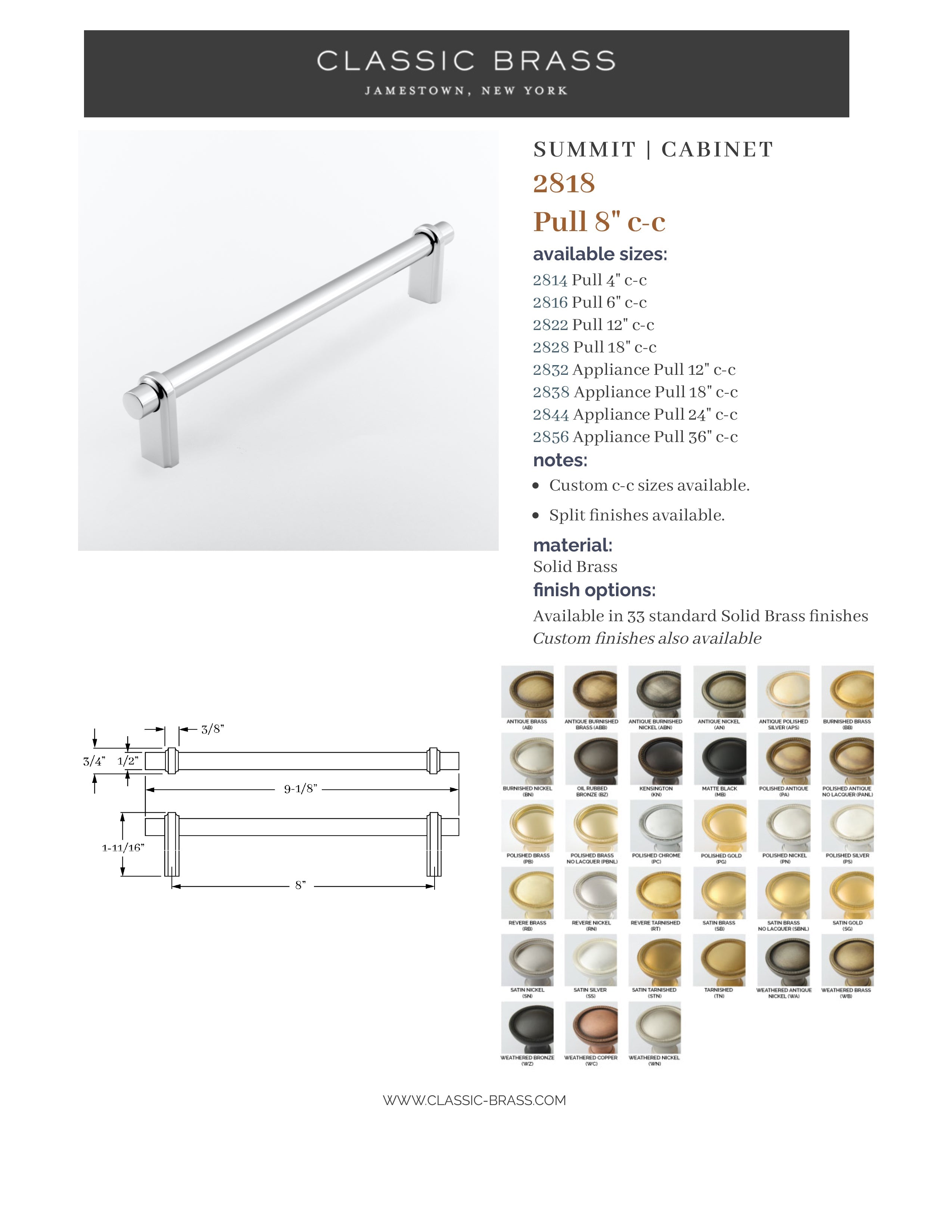 2818, Pull - 8" c-c, Classic Brass Summit Collection