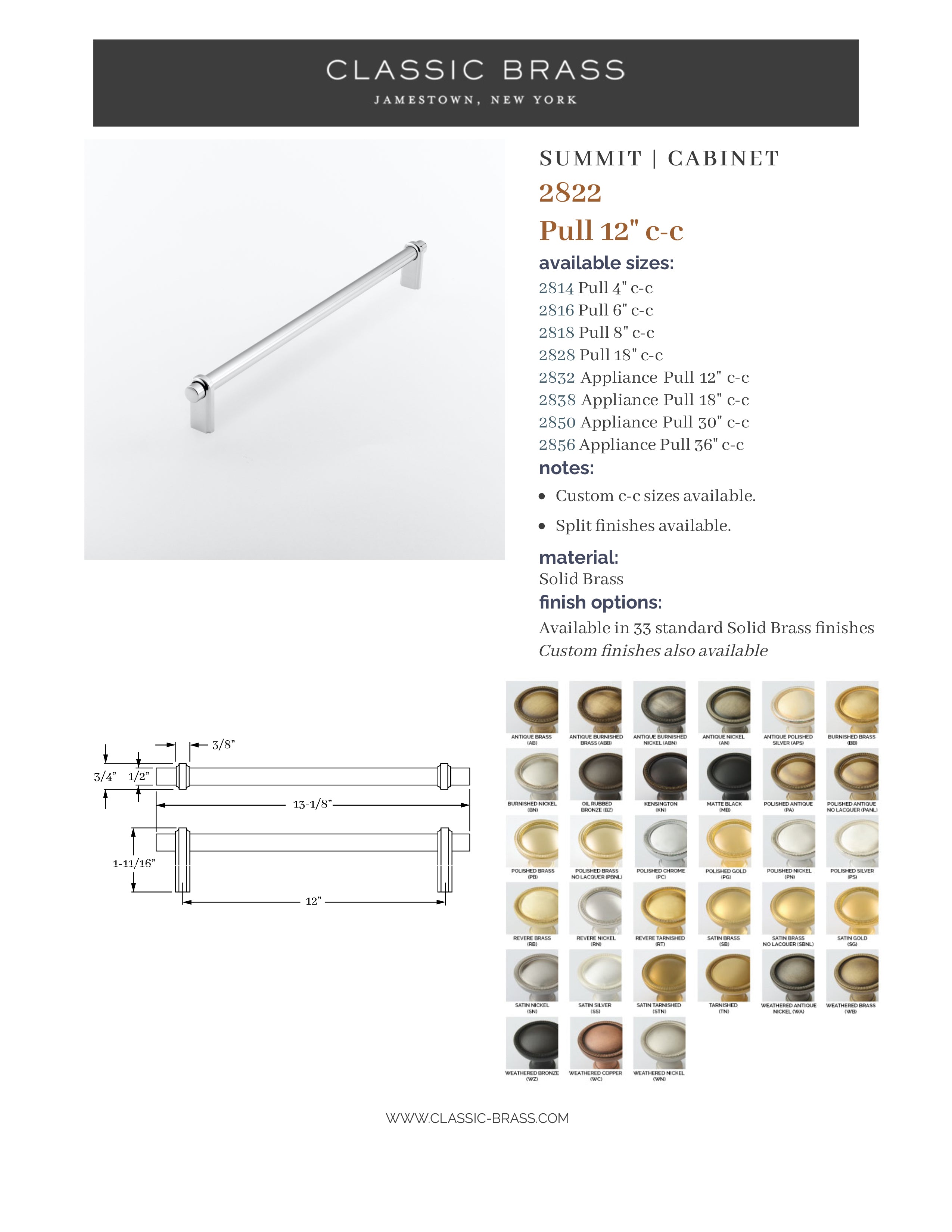 2822, Pull - 12" c-c, Classic Brass Summit Collection