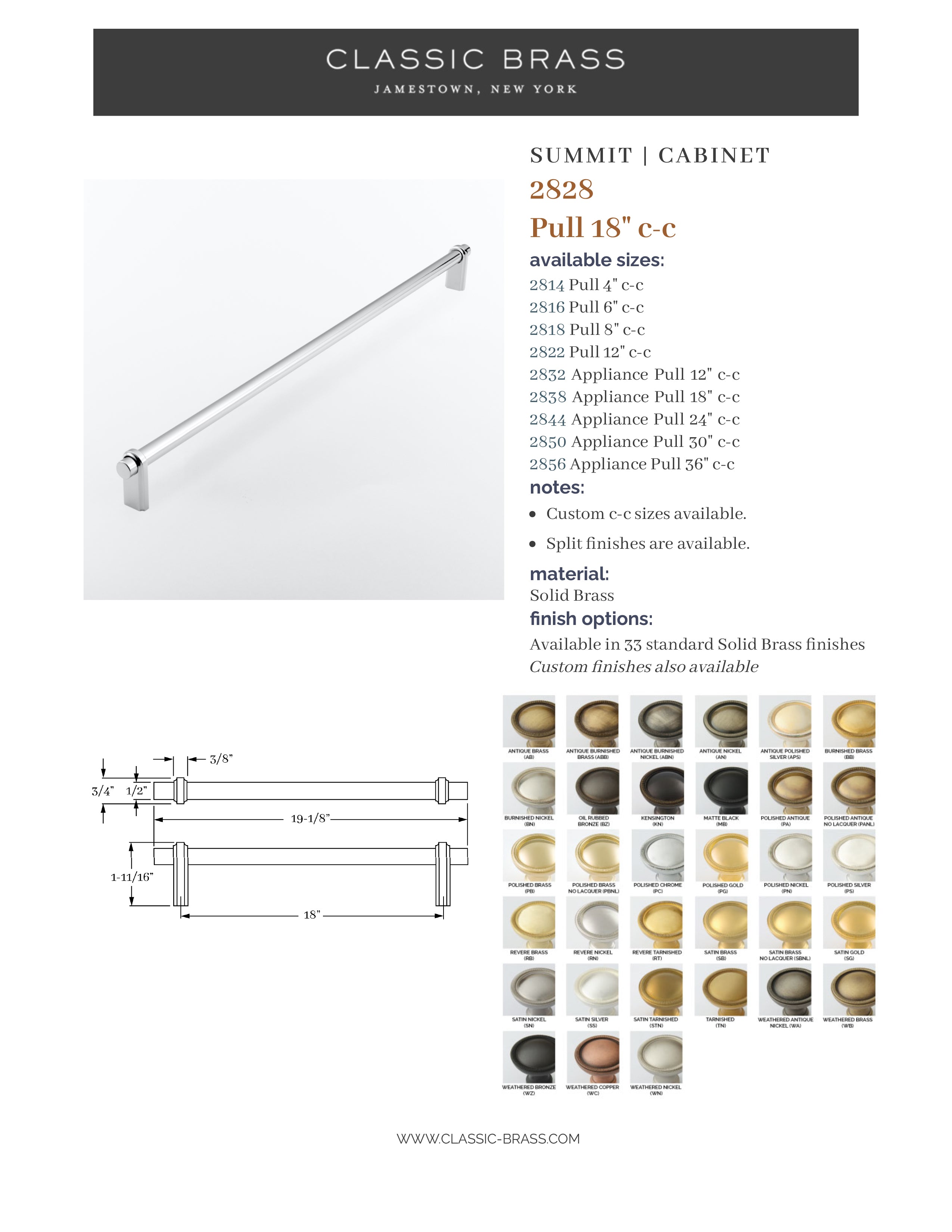 2828, Pull - 18" c-c, Classic Brass Summit Collection
