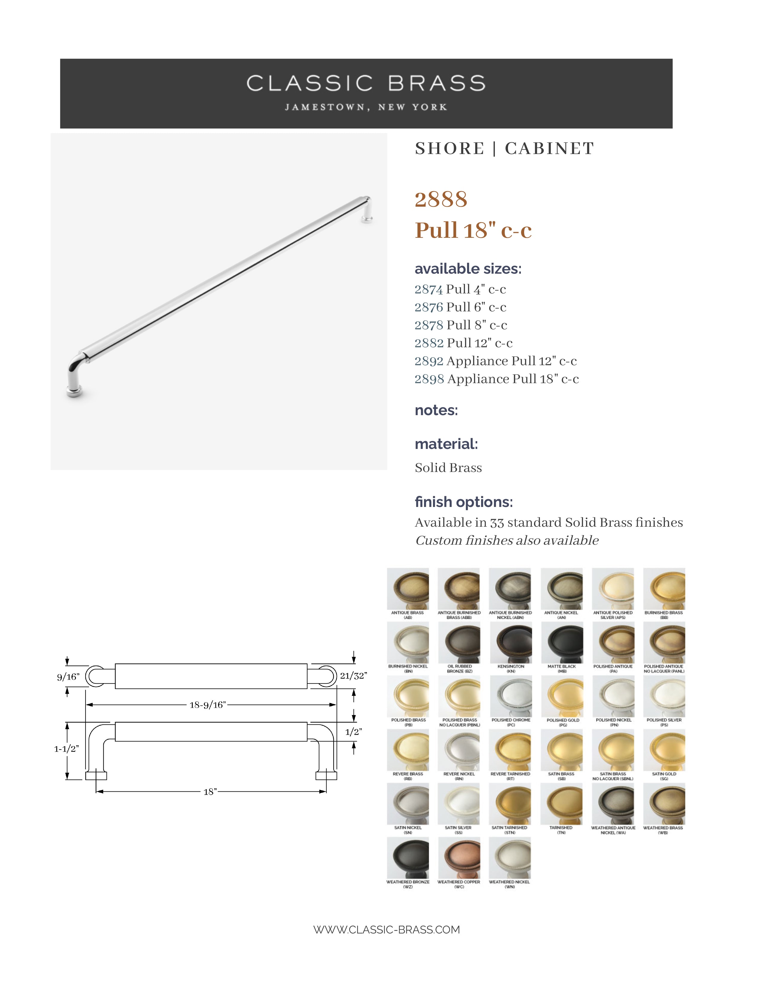 2888, Oval Pull - 18" c-c, Classic Brass Shore Collection