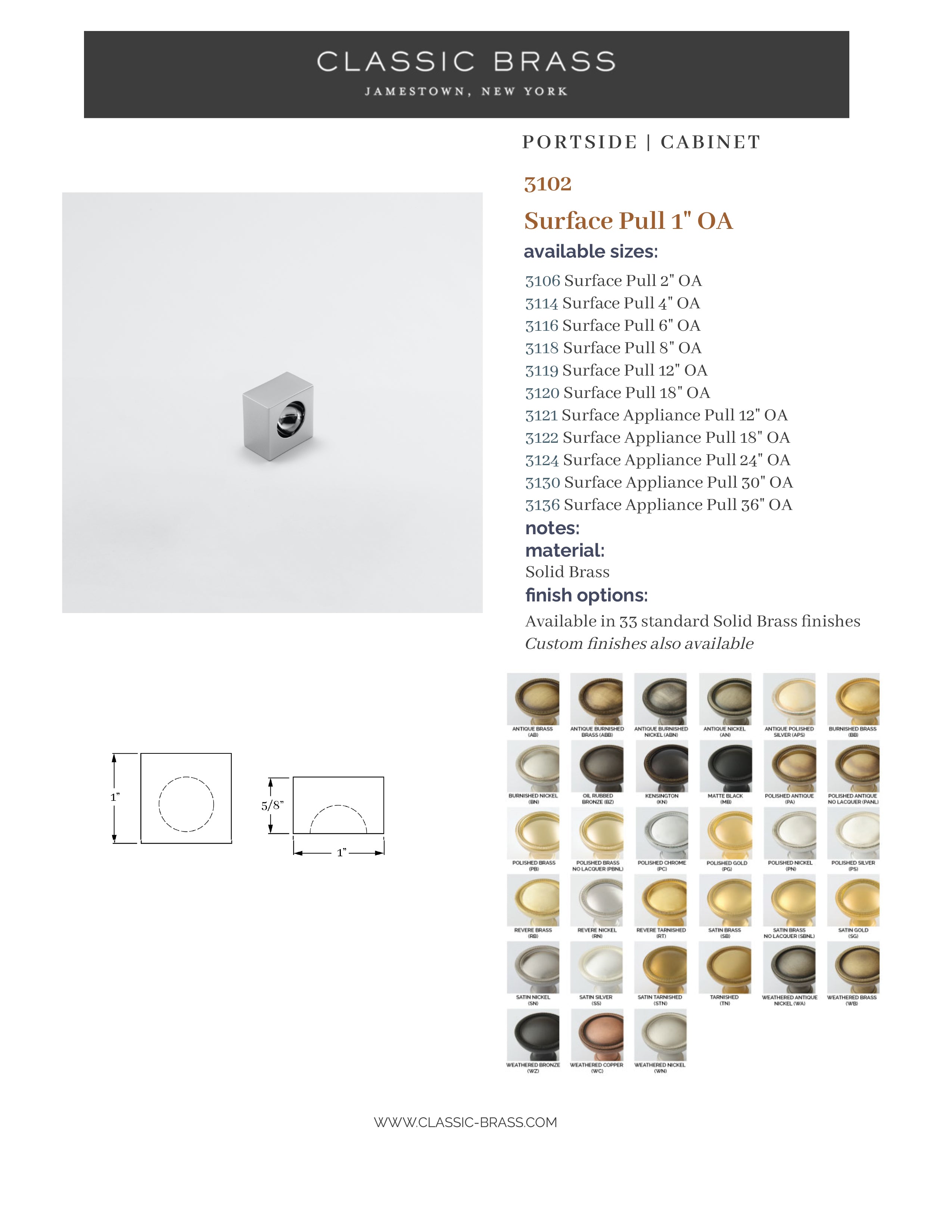 3102, Pull - 1", Classic Brass Portside Collection