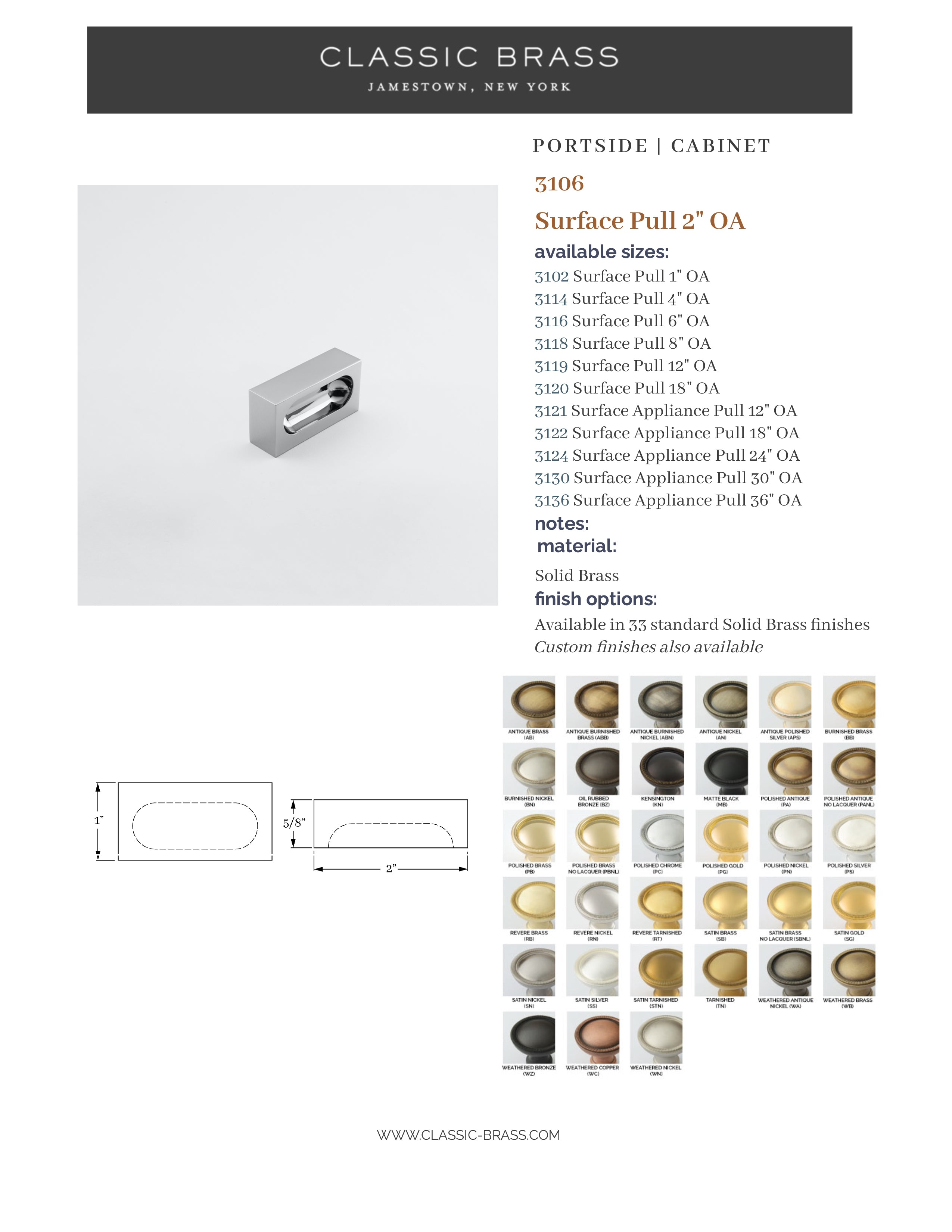 3106, Pull - 2", Classic Brass Portside Collection
