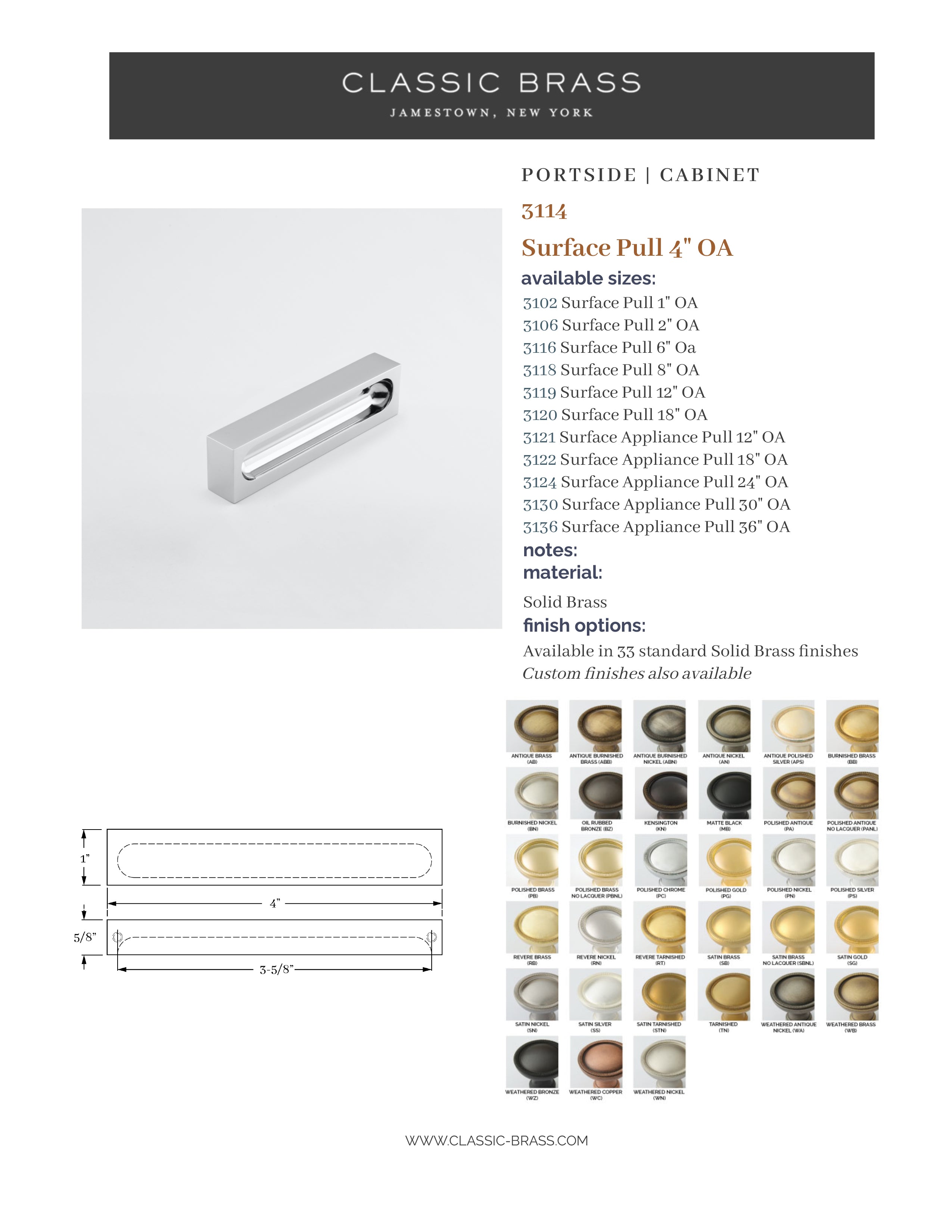 3114, Pull - 4", Classic Brass Portside Collection