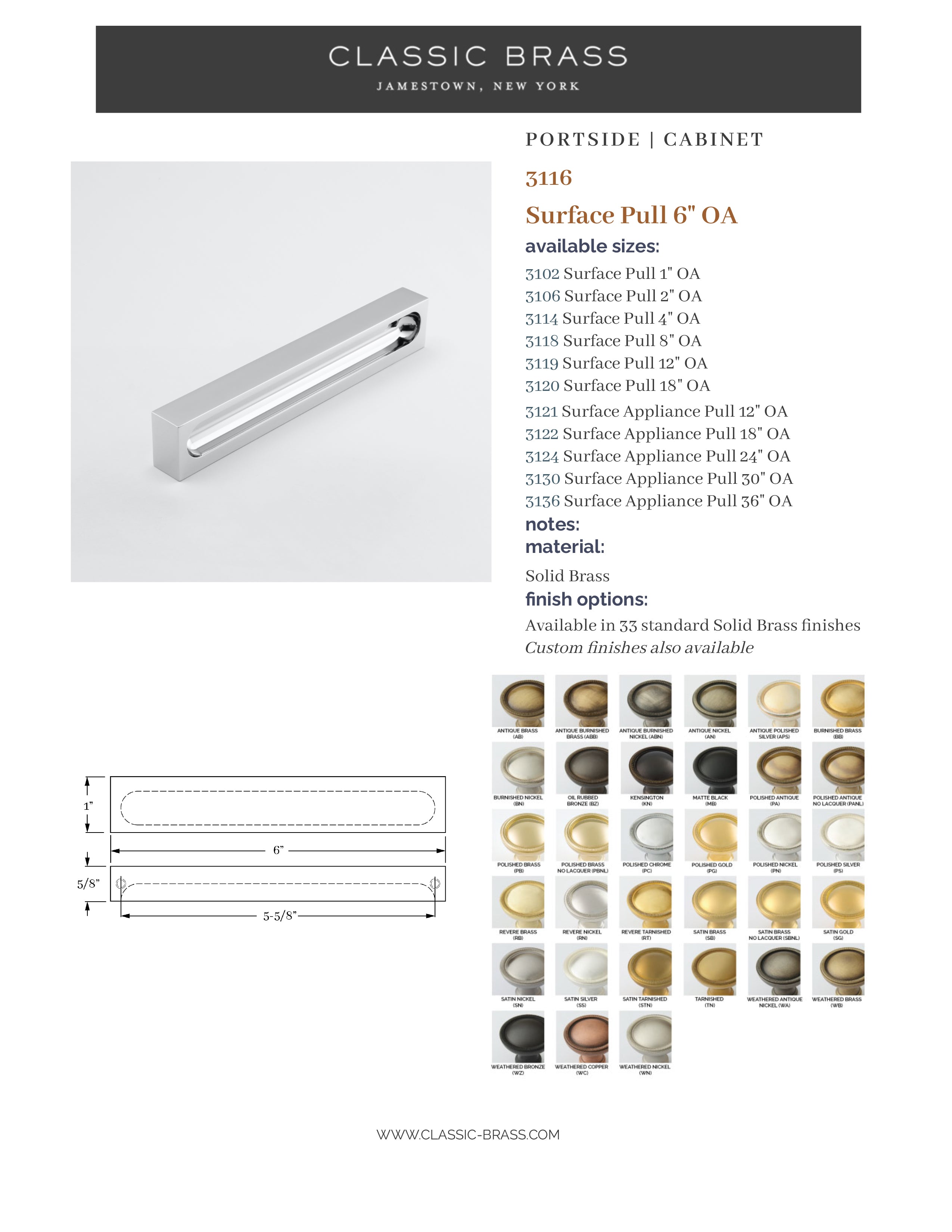 3116, Pull - 6", Classic Brass Portside Collection