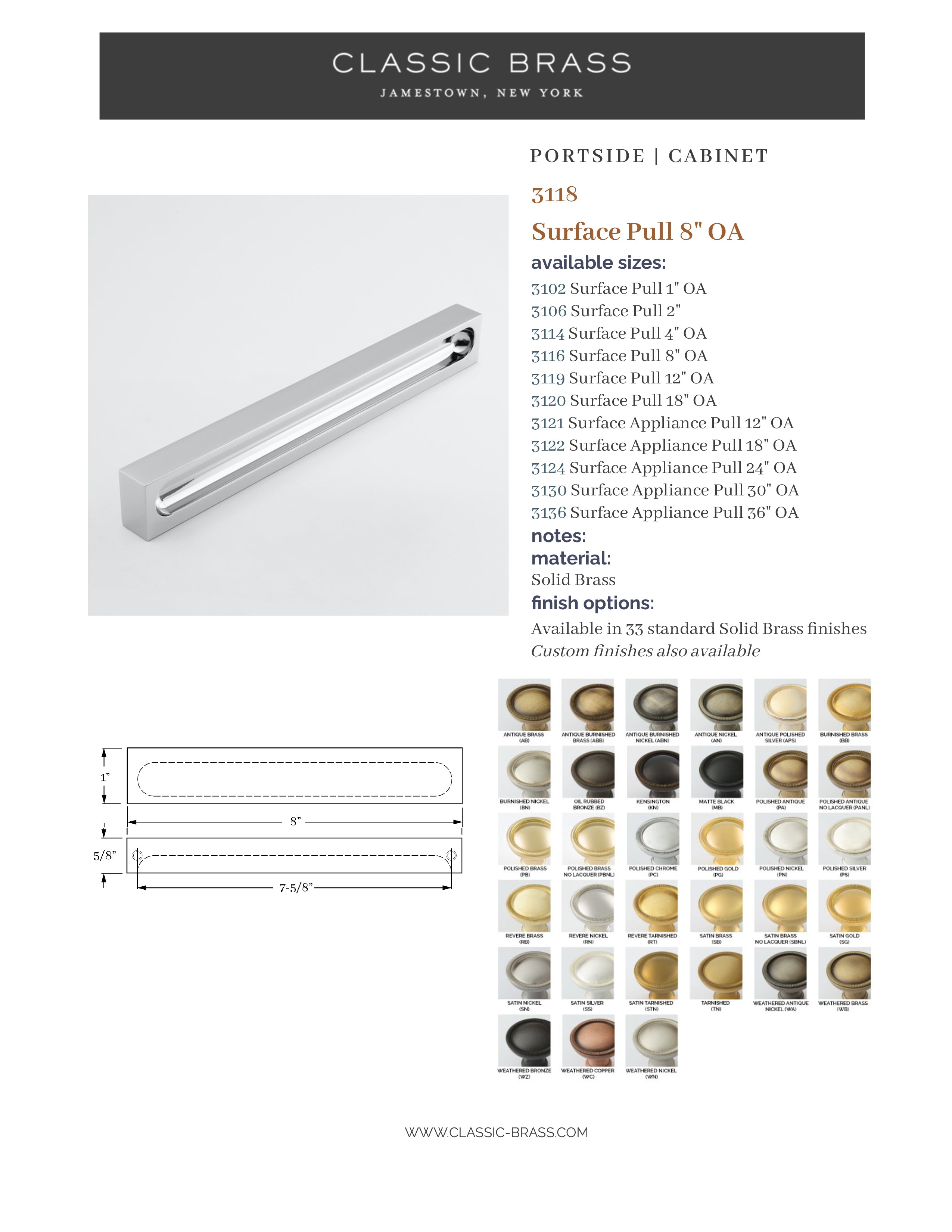 3118, Pull - 8", Classic Brass Portside Collection