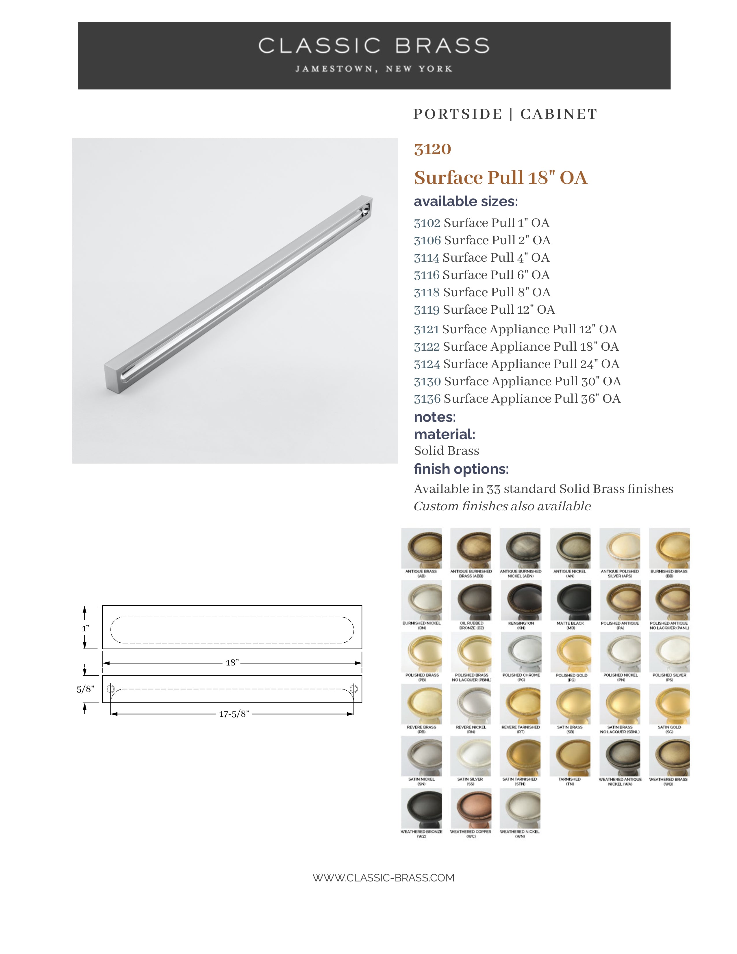 3120, Pull - 18", Classic Brass Portside Collection