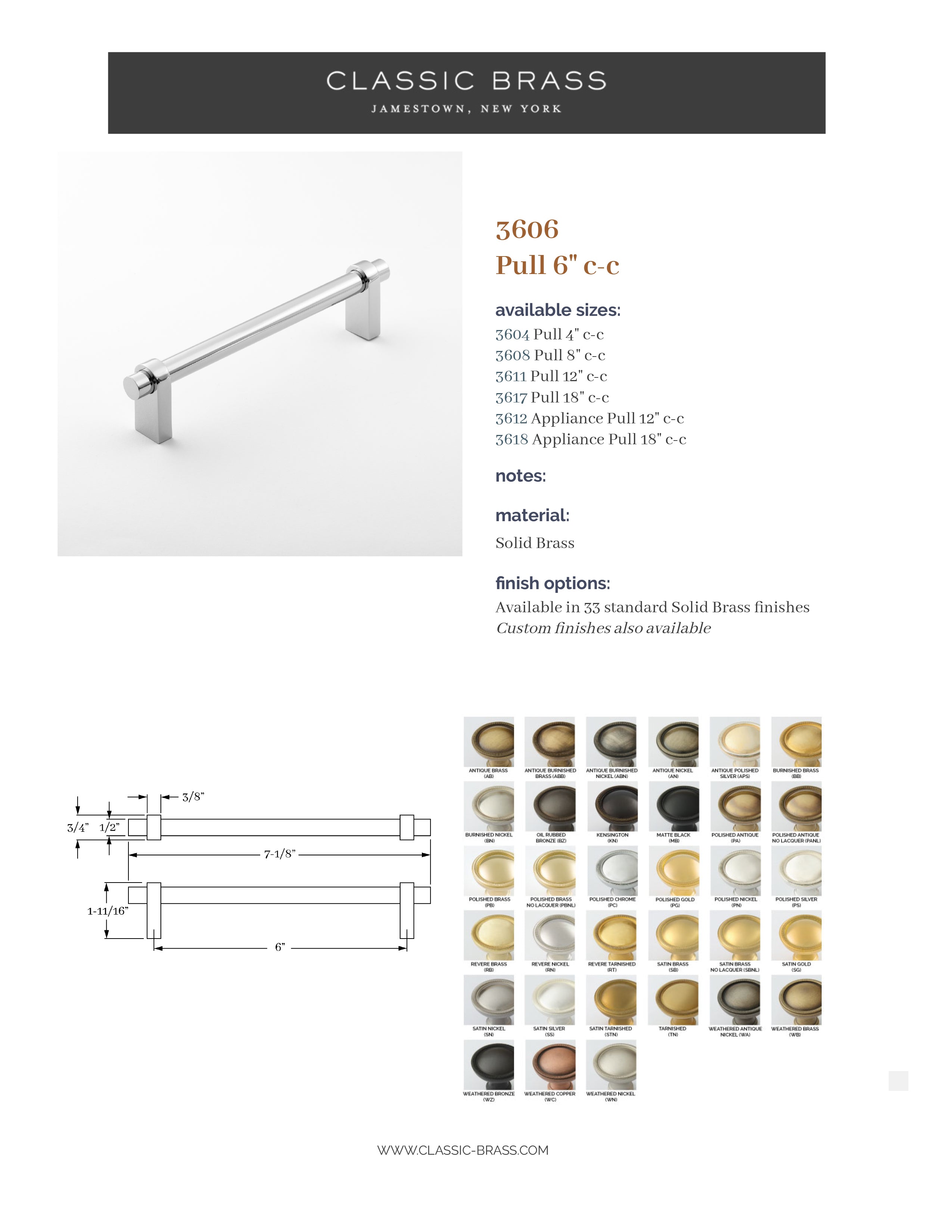 2226, Pull - 6" c-c, Classic Brass Palmer Collection