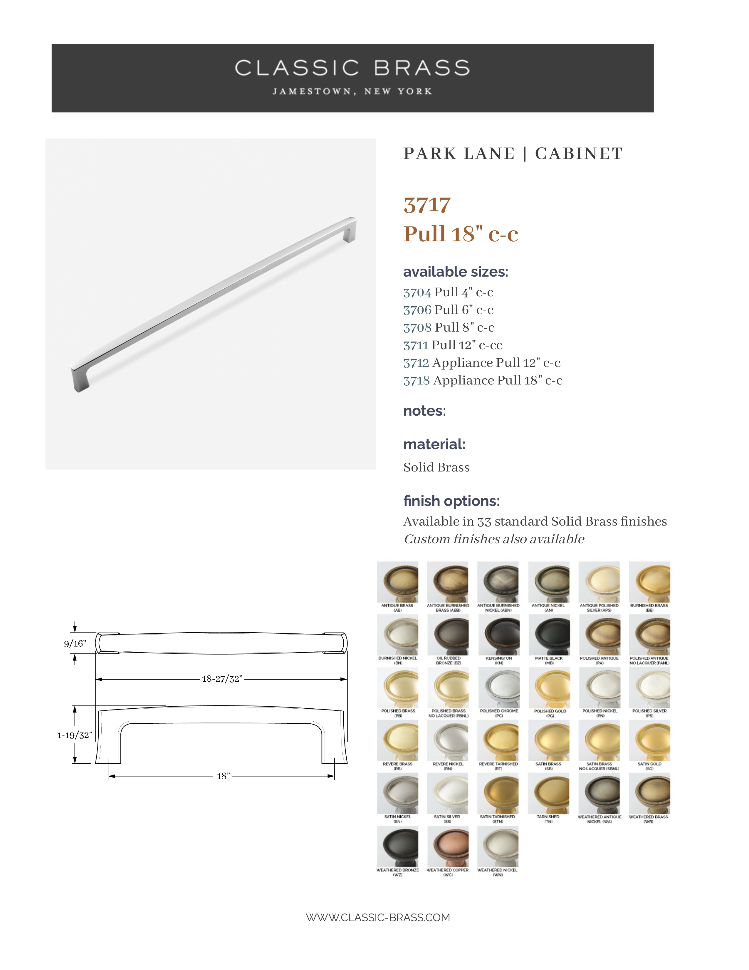 3717, Pull - 18" c-c, Classic Brass Park Lane Collection