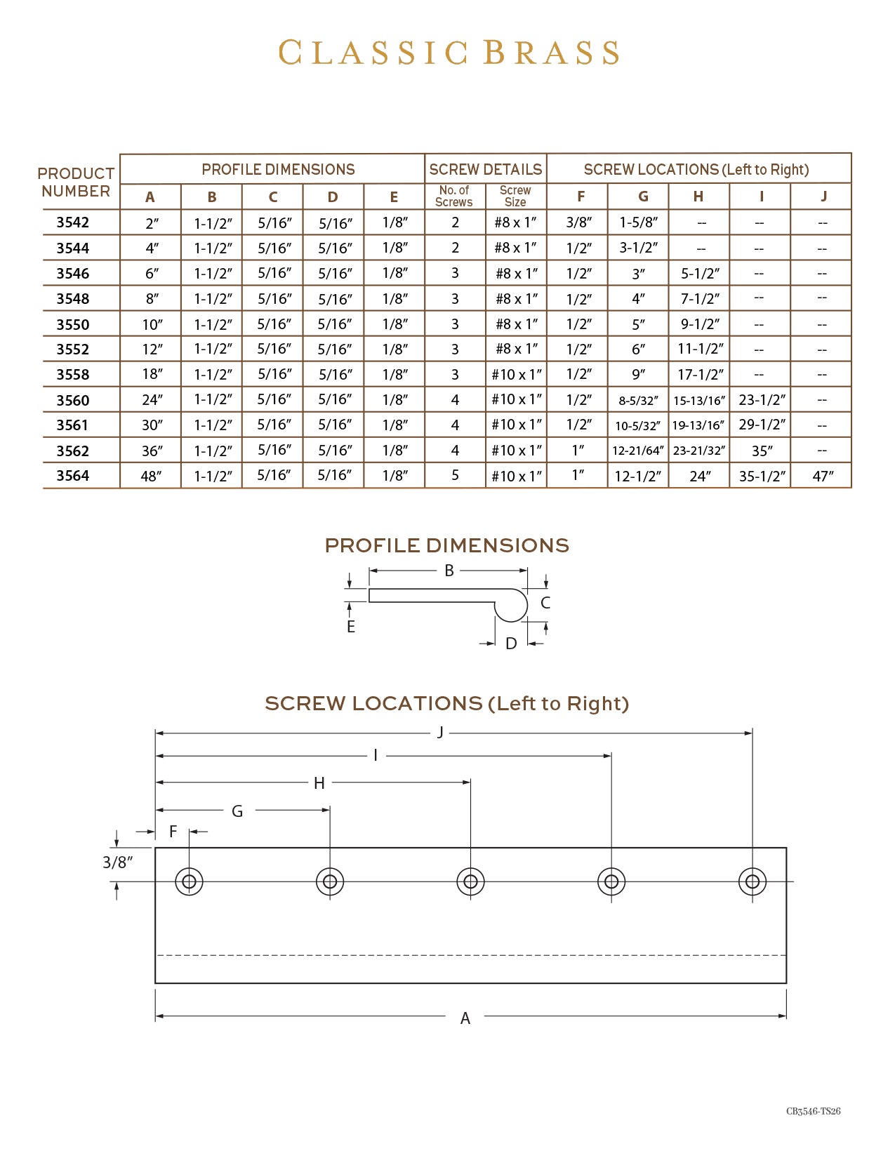 3594, Classic Brass Edge Pull - 48" Square, Edge Pulls Collection