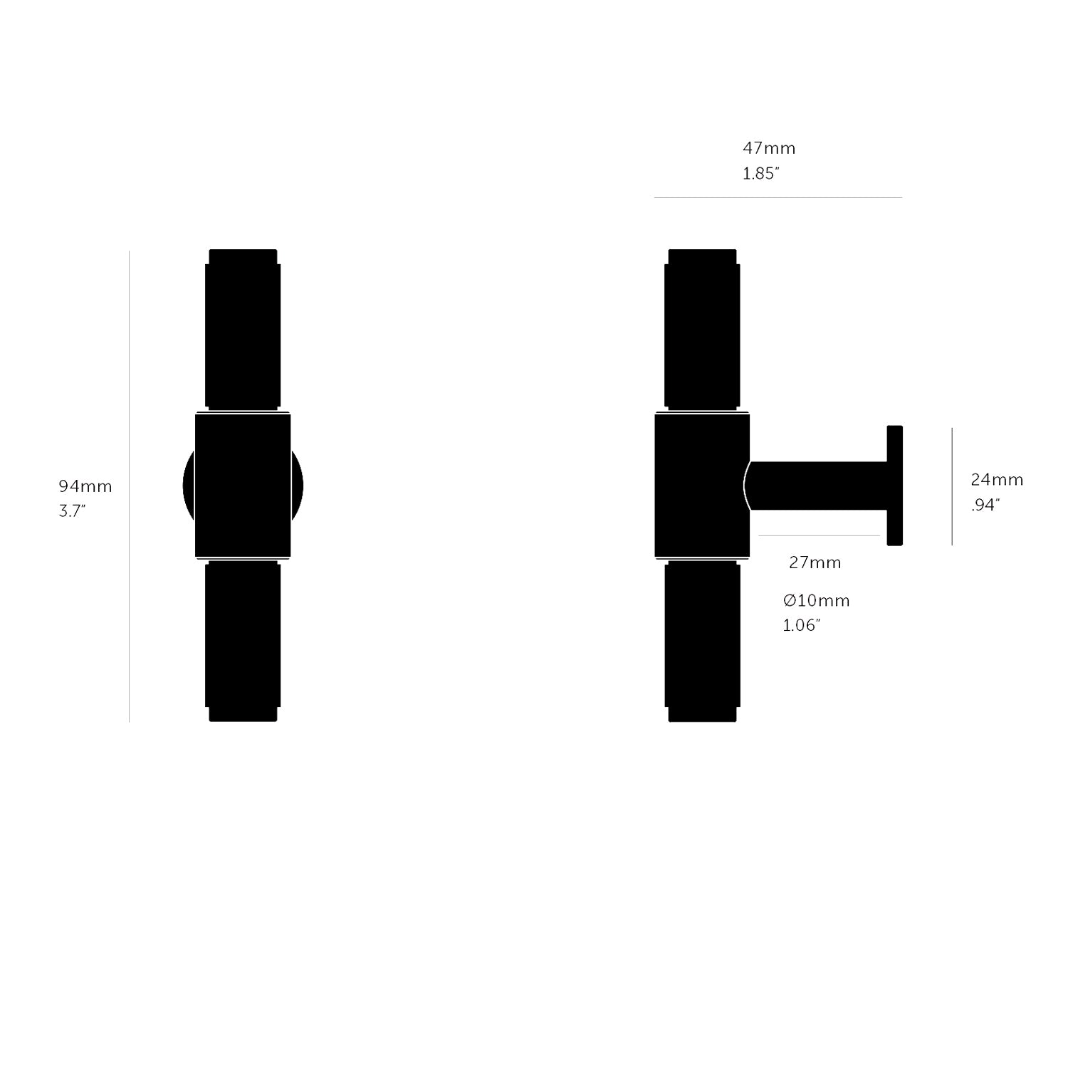Style: Modern | Category: Cabinet | Sub Category: Pull - T | Material: Brass | Size: 3.7" (94mm) | Made in USA