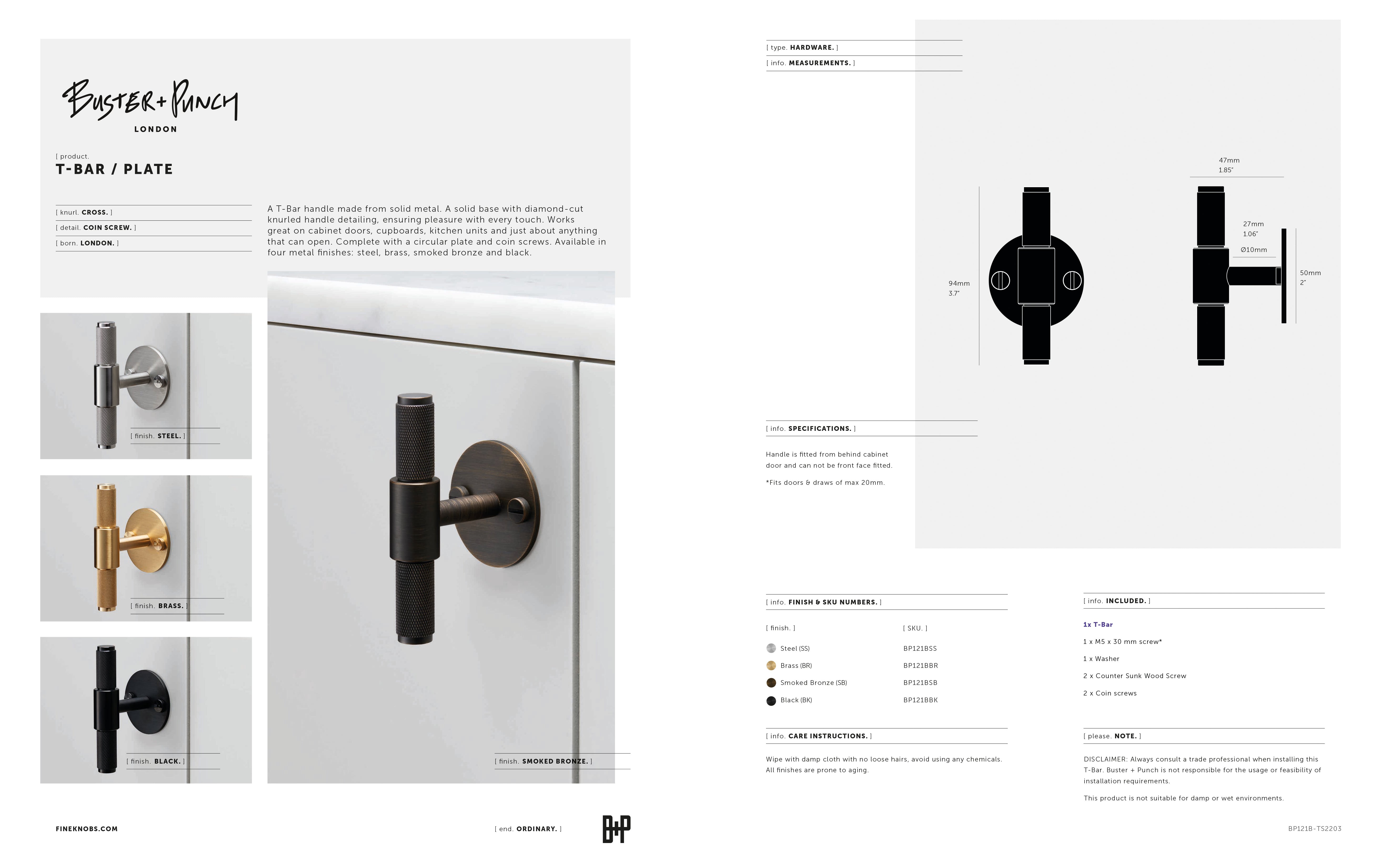 Style: Modern | Category: Cabinet | Sub Category: Pull - T | Material: Brass | Size: 3.7" (94mm) | Made in USA