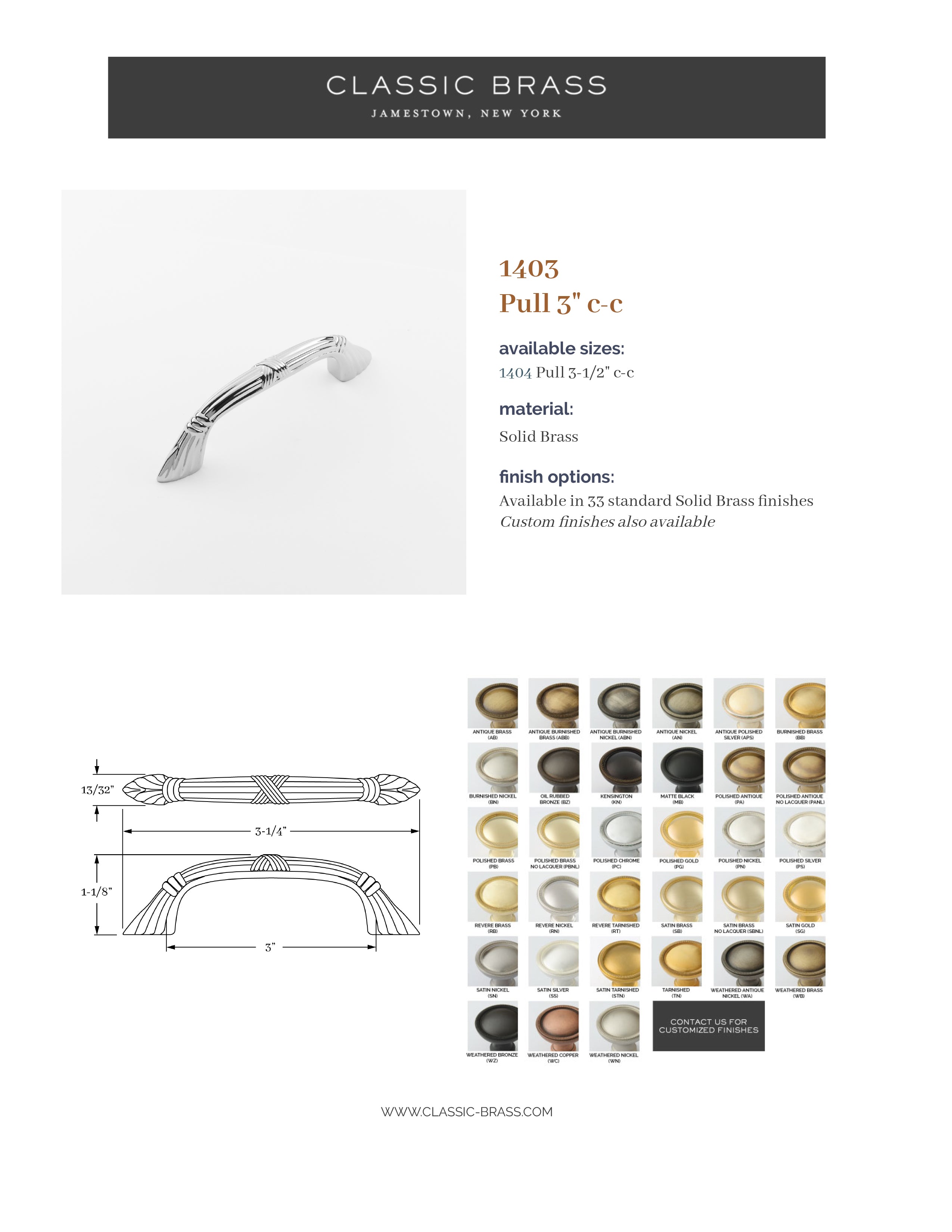 1403, Pull - 3" c-c, Classic Brass St. Georges Collection