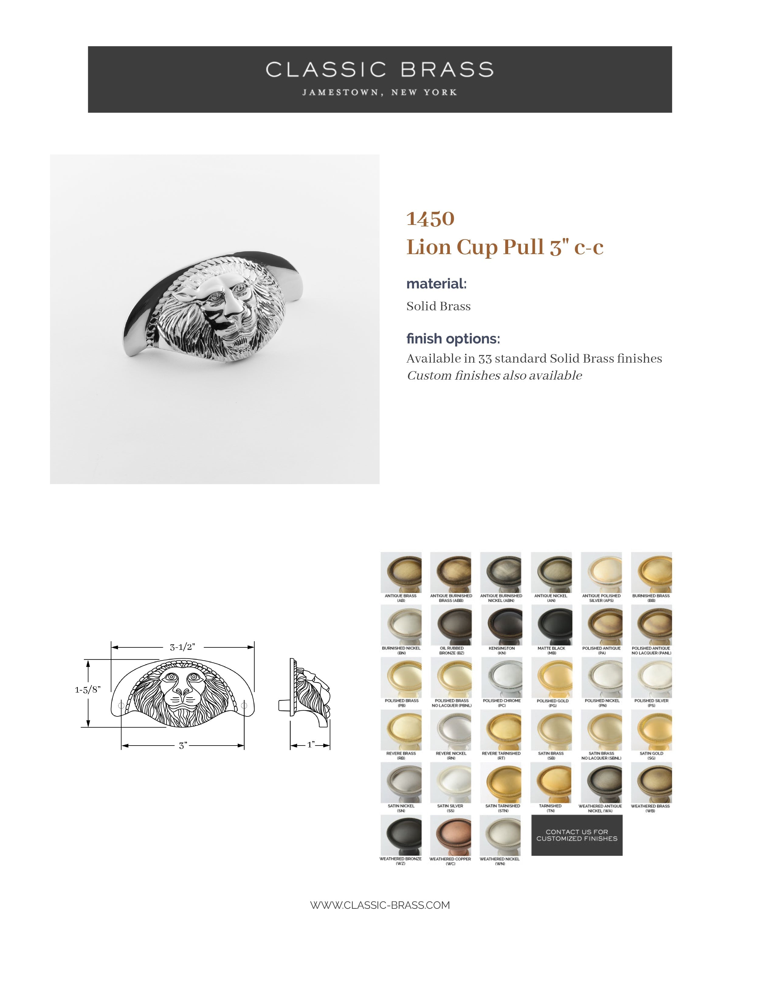 1451, Lion Knob - 1-1/4", Classic Brass St. Georges Collection