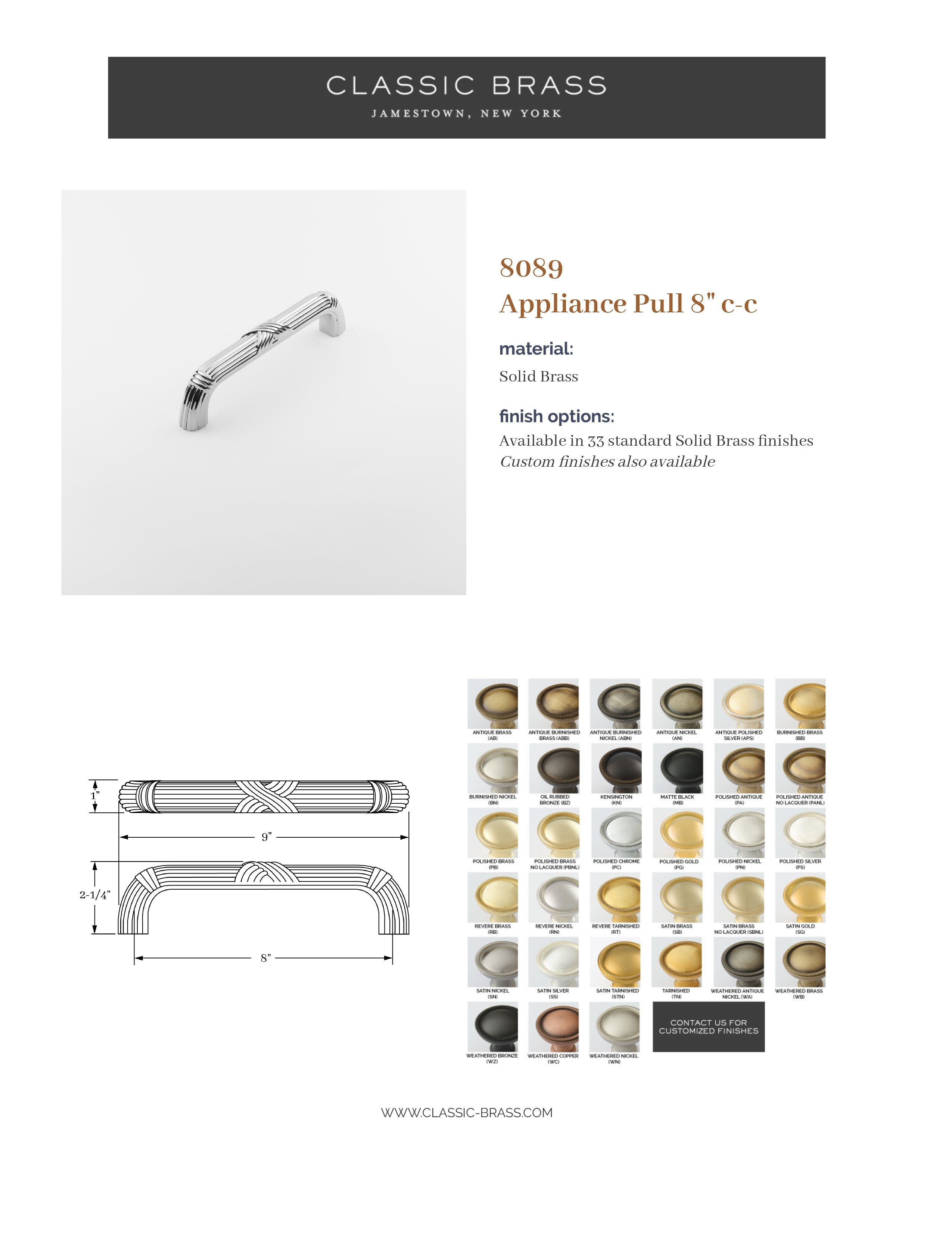8089, Pull - 8" c-c, Classic Brass St. Georges Collection