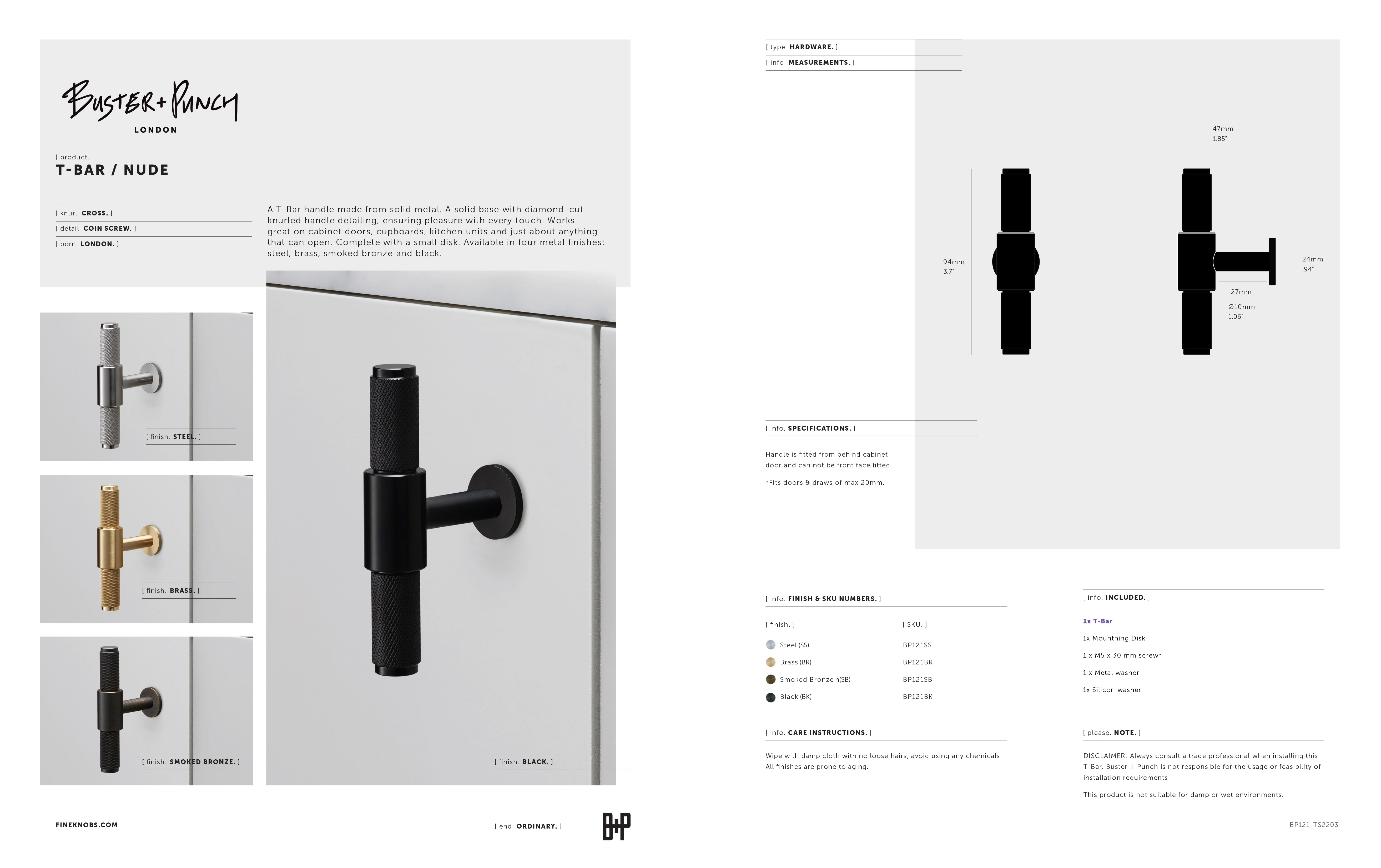 121B, Cross T Bar + Backplate - 3.7" (94mm)
