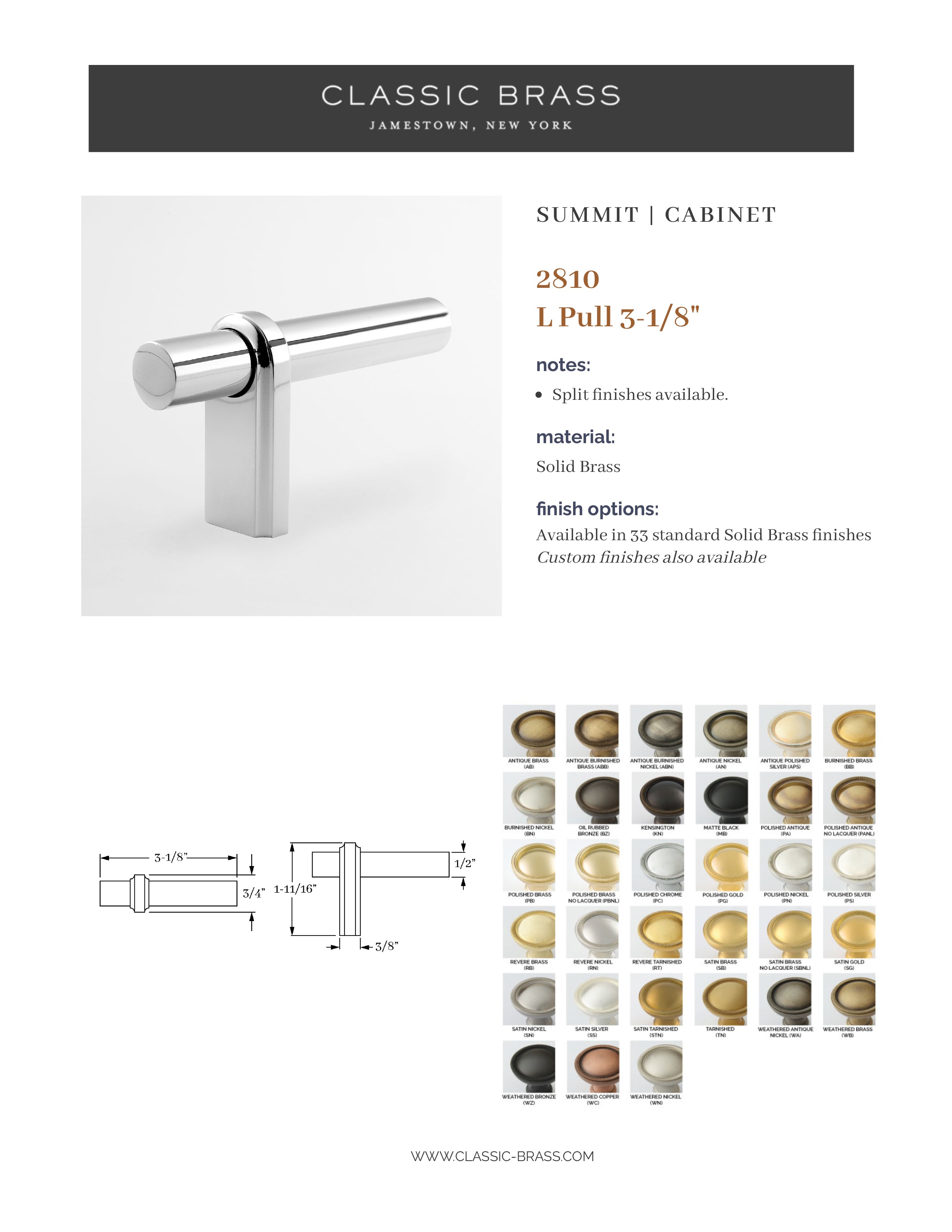 2810, L-Pull - 3-1/8", Classic Brass Summit Collection