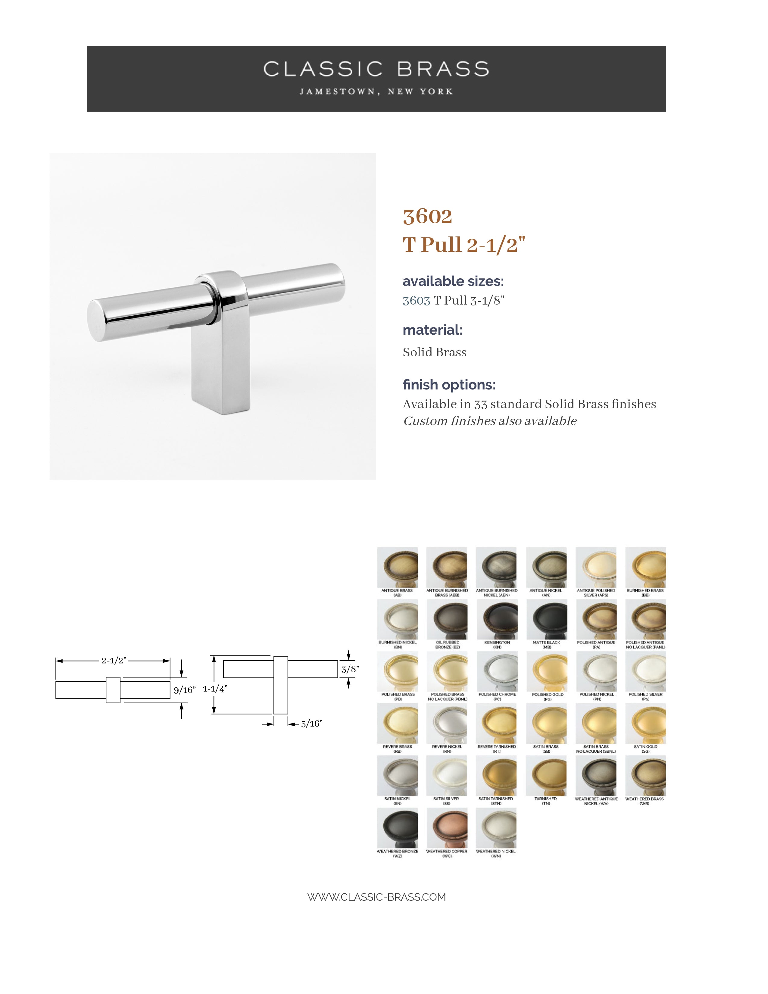 3602, T Pull - 2-1/2", Classic Brass Aspen Collection