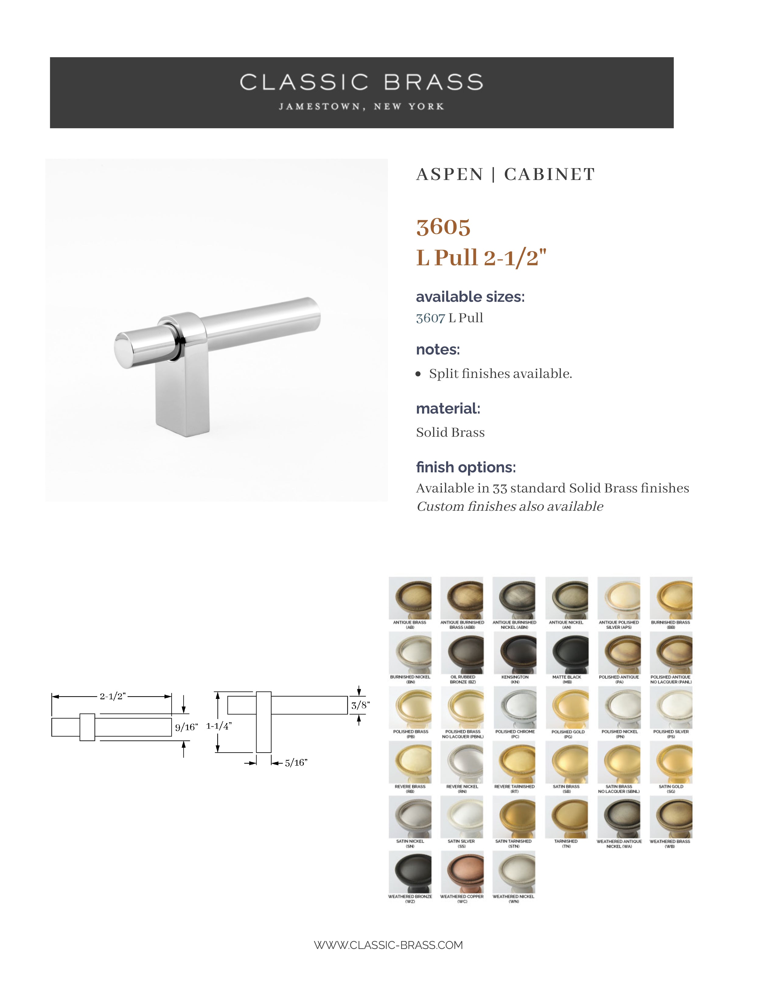 3605, L Pull - 2-1/2", Classic Brass Aspen Collection