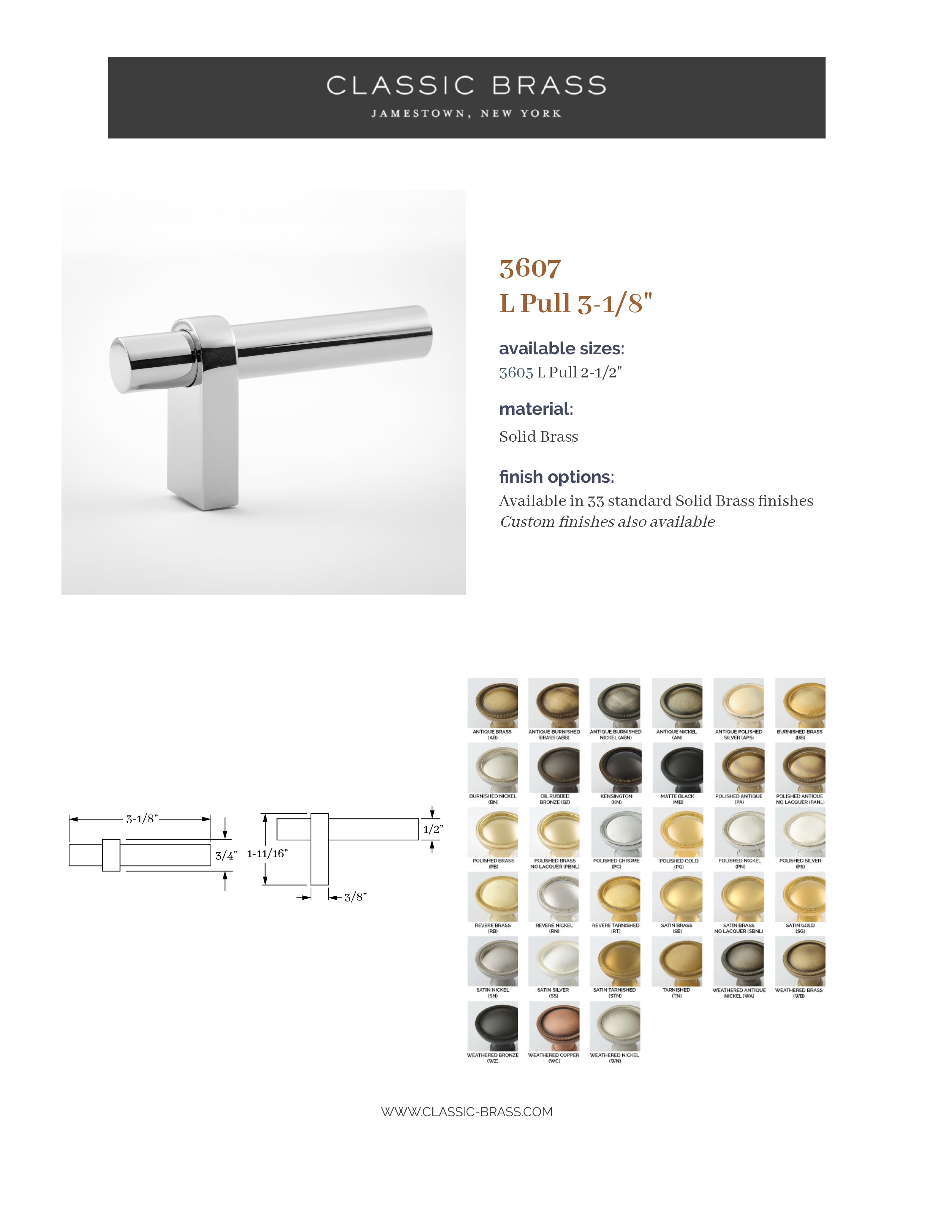 3607, L Pull - 3-1/8", Classic Brass Aspen Collection